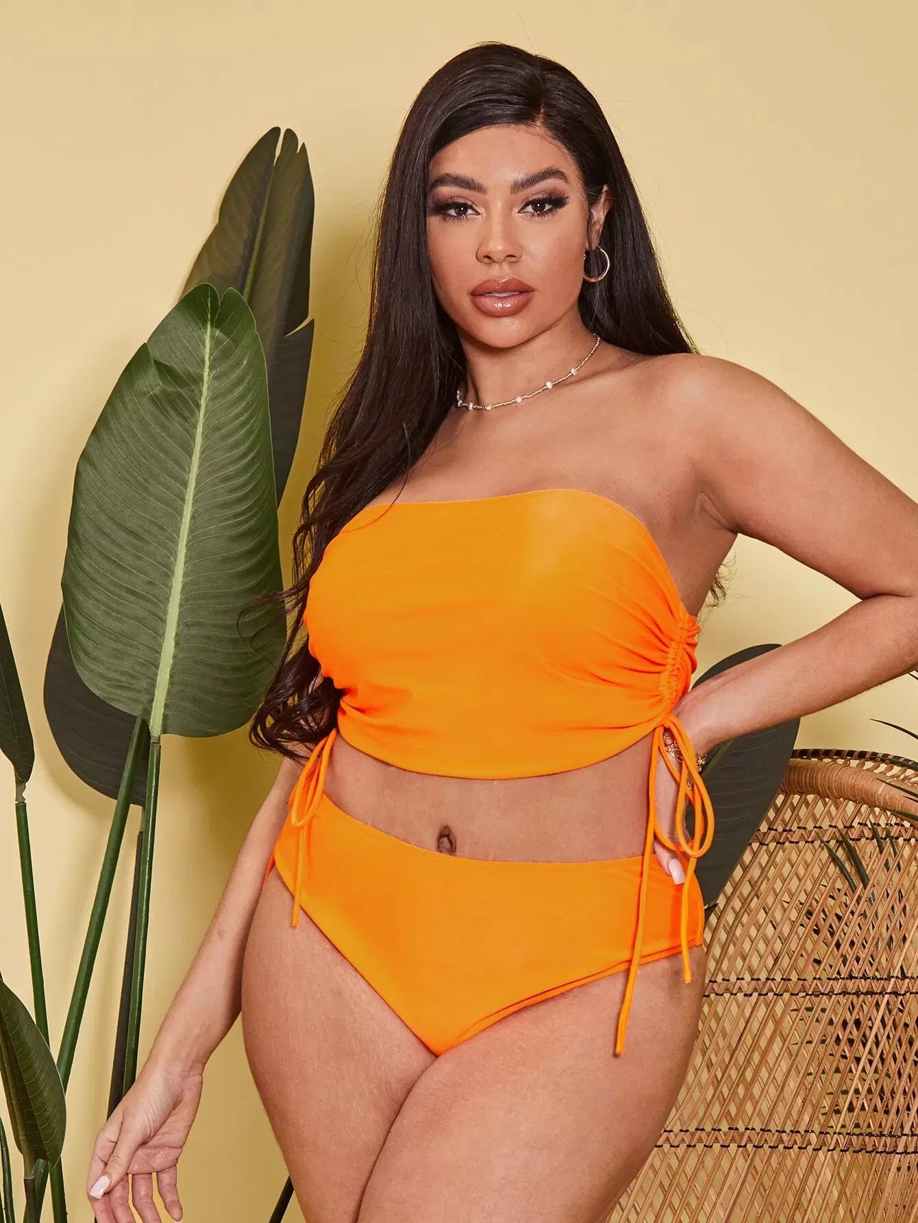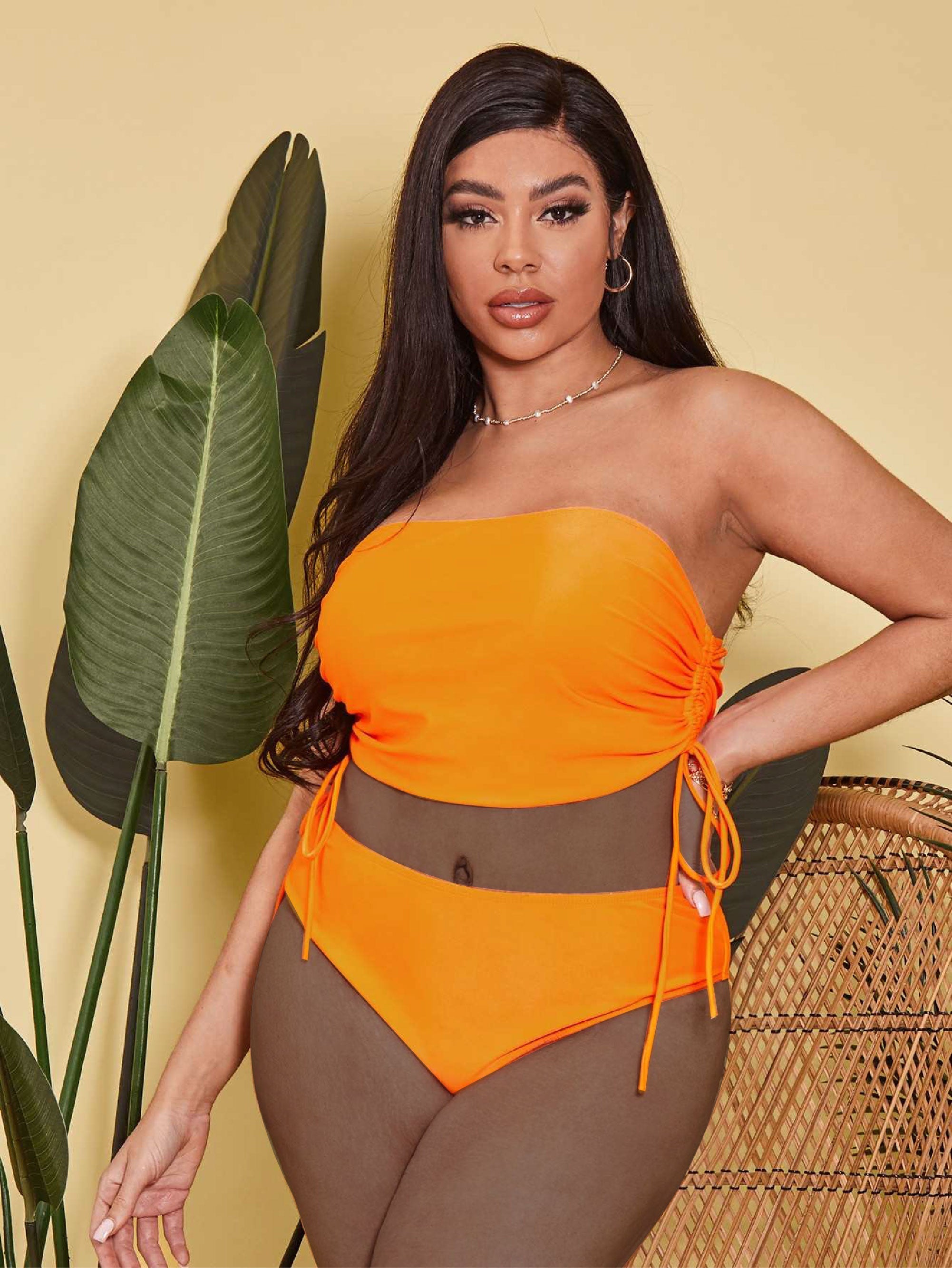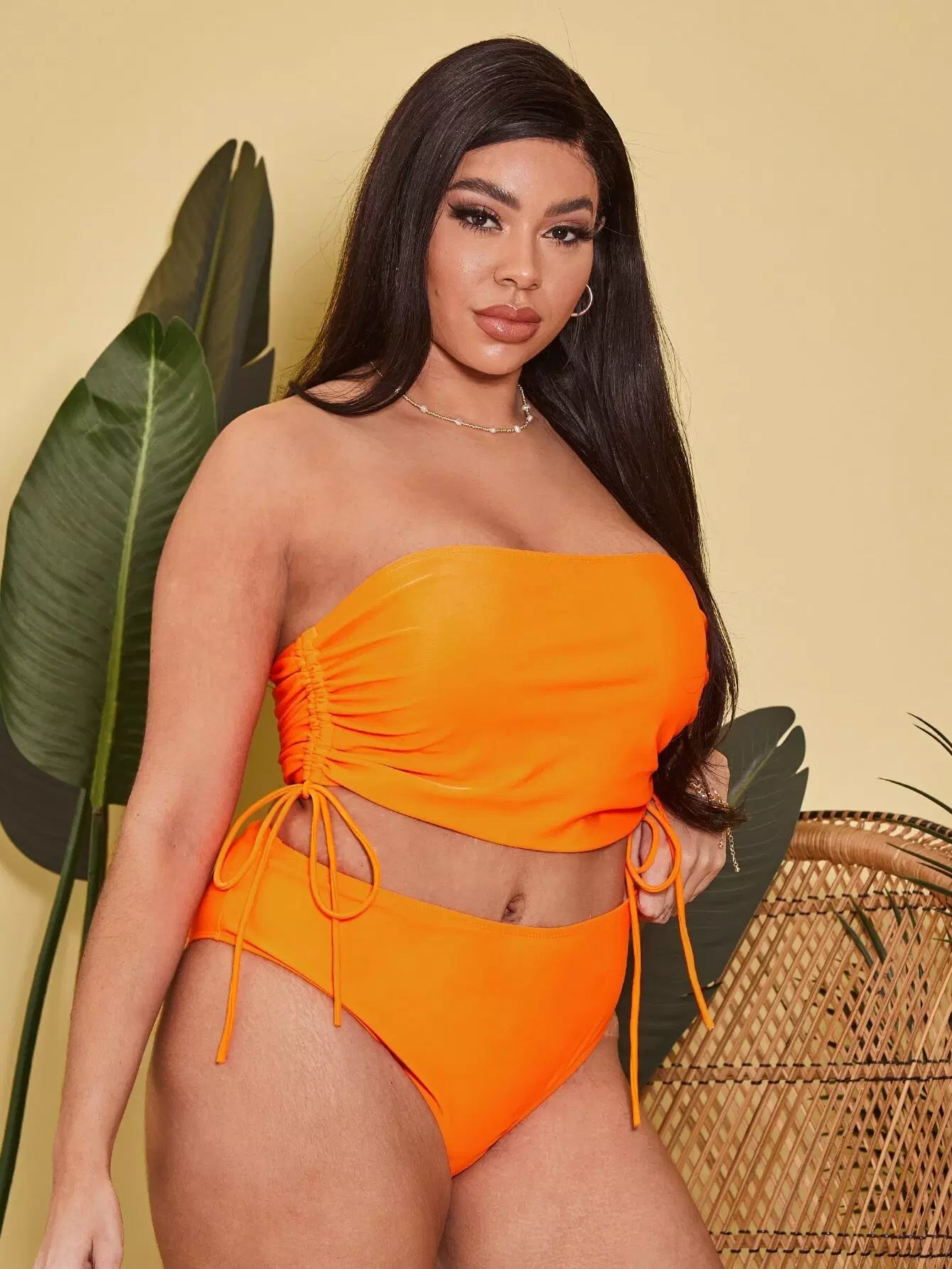 نحيف - مقاس كبير ملابس سباحة بيكيني باندو جانبية برباط