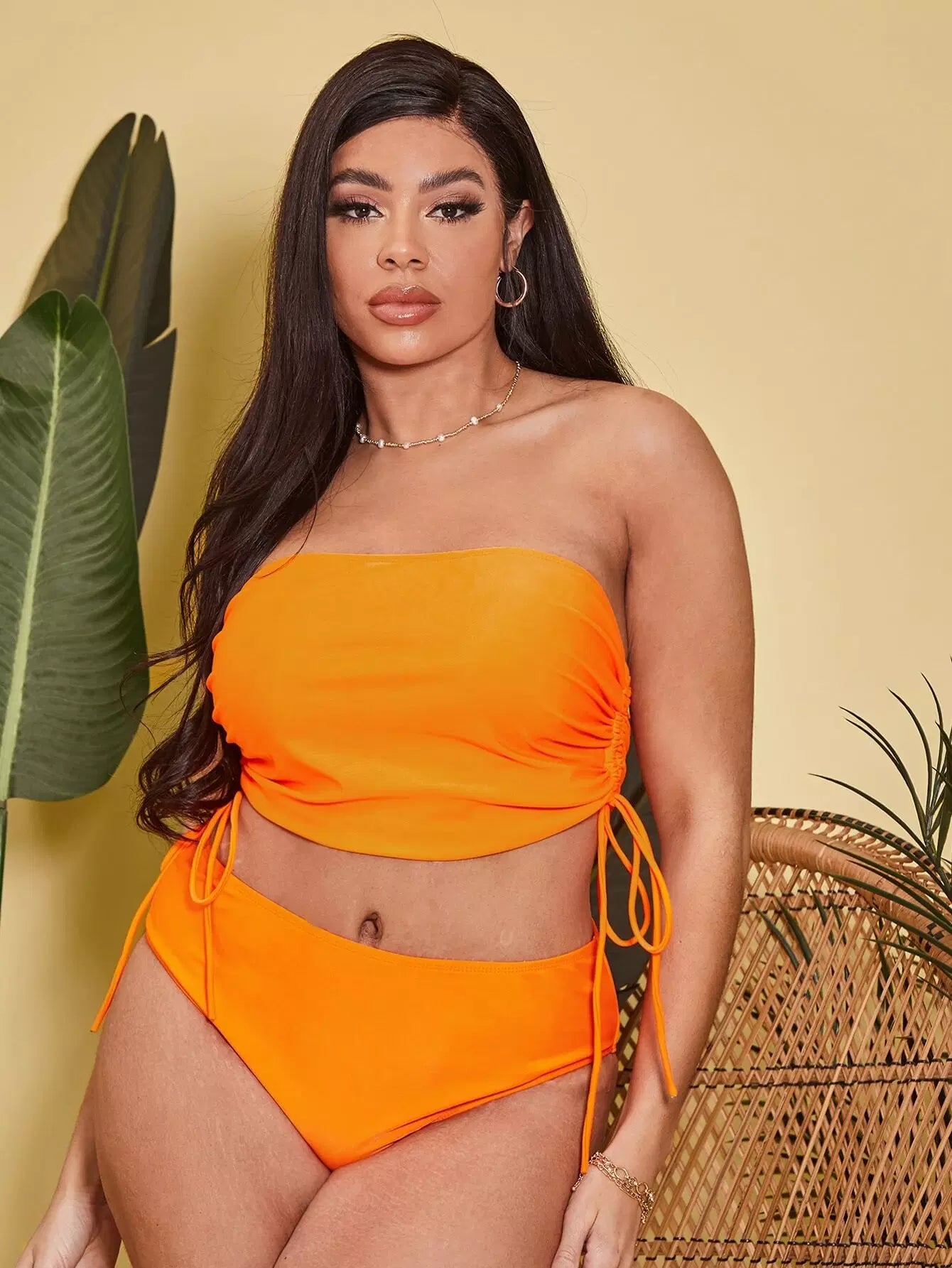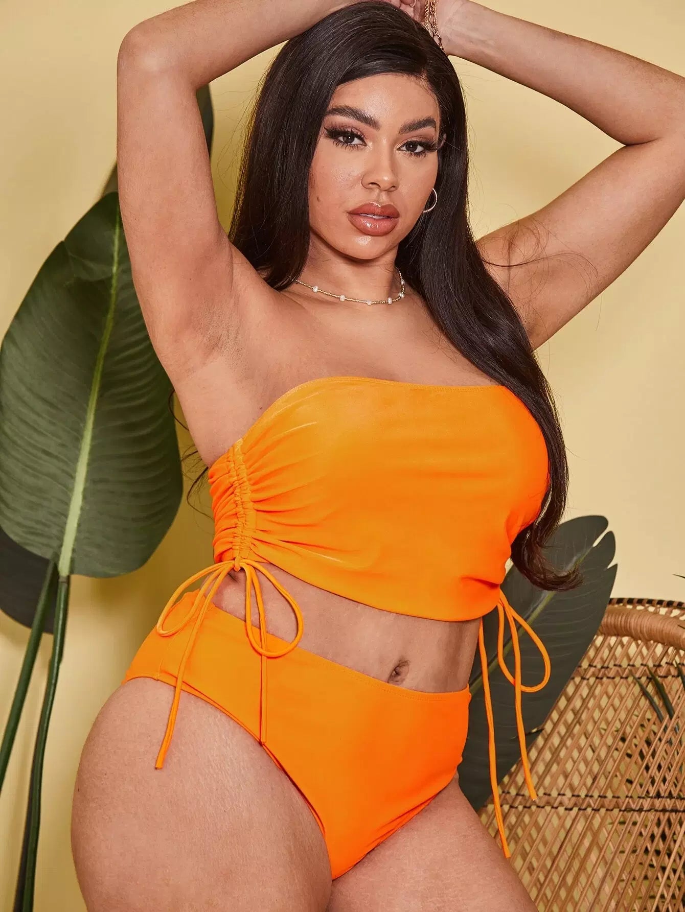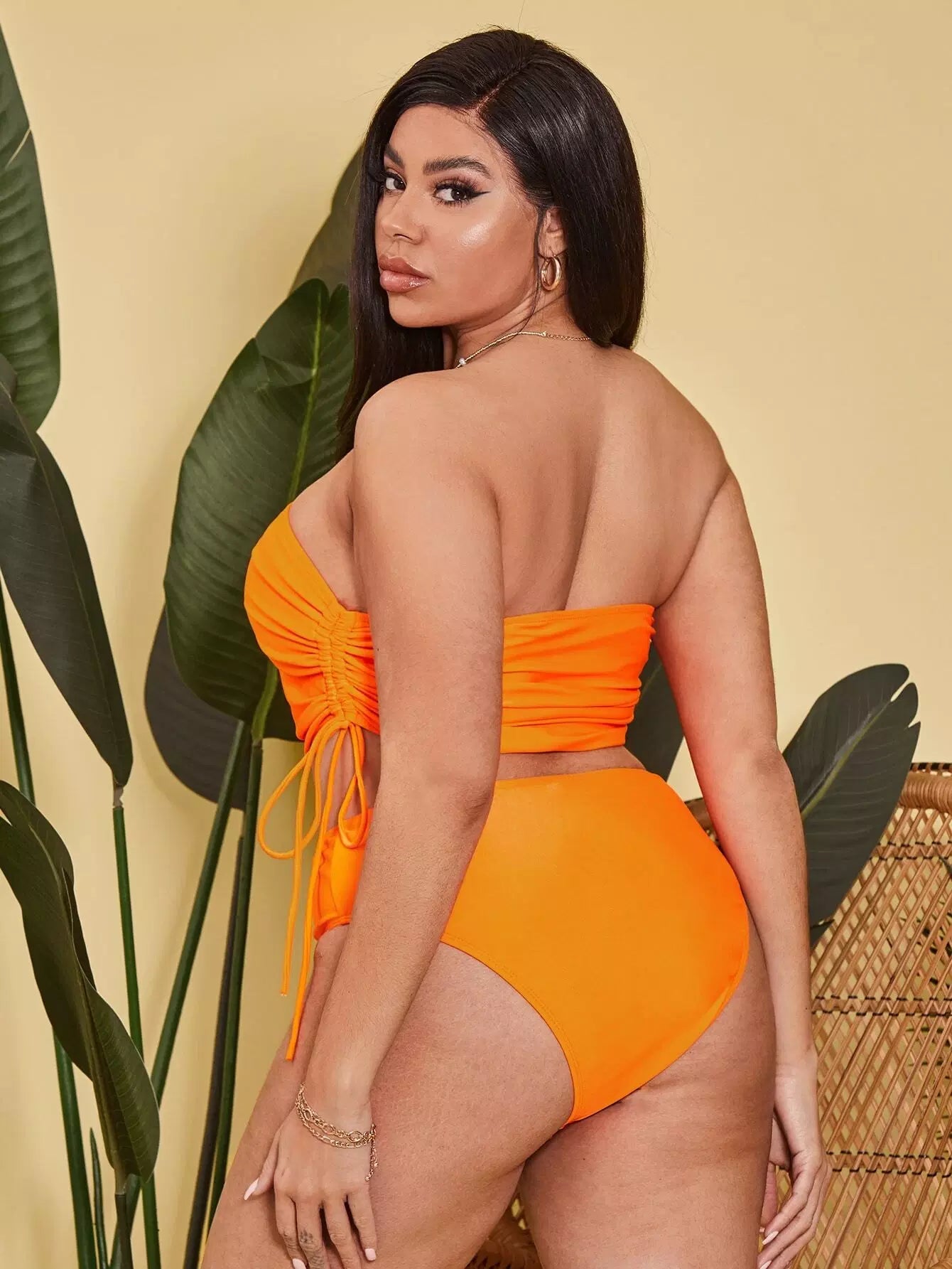 نحيف - مقاس كبير ملابس سباحة بيكيني باندو جانبية برباط