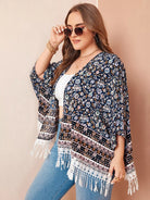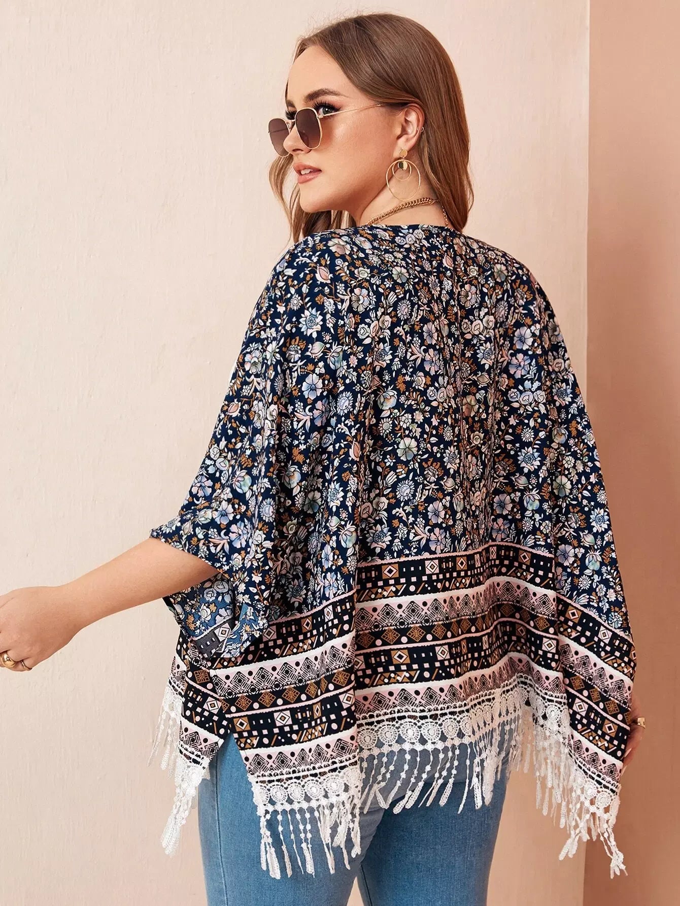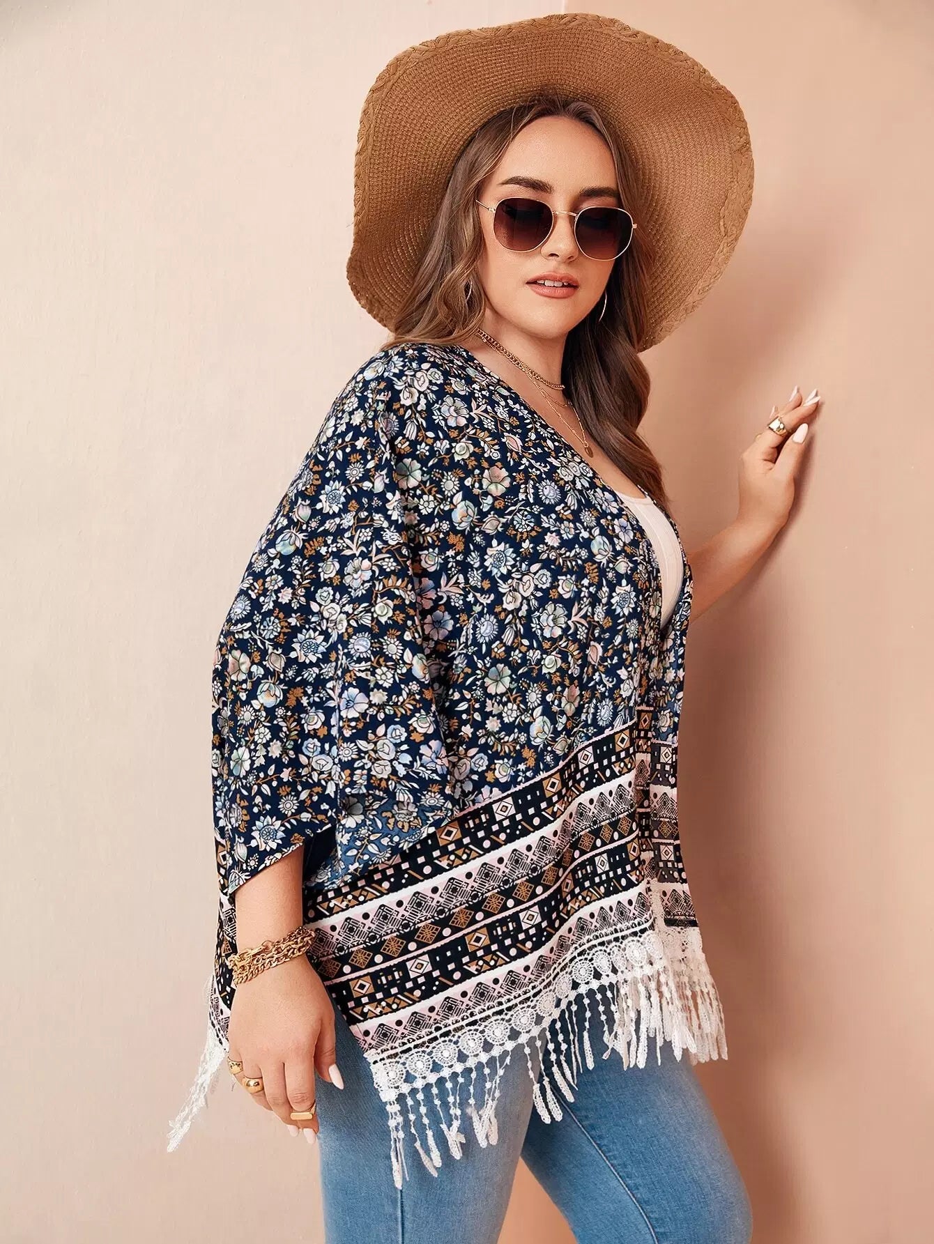 كيمونو مفتوح من الأمام بحاشية زهرية مفتوحة من الأمام