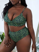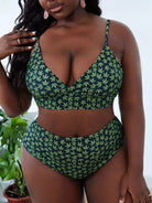 ملابس سباحة بيكيني عالية الخصر مطبوع عليها أوراق الشجر بلس