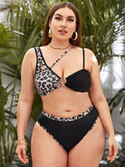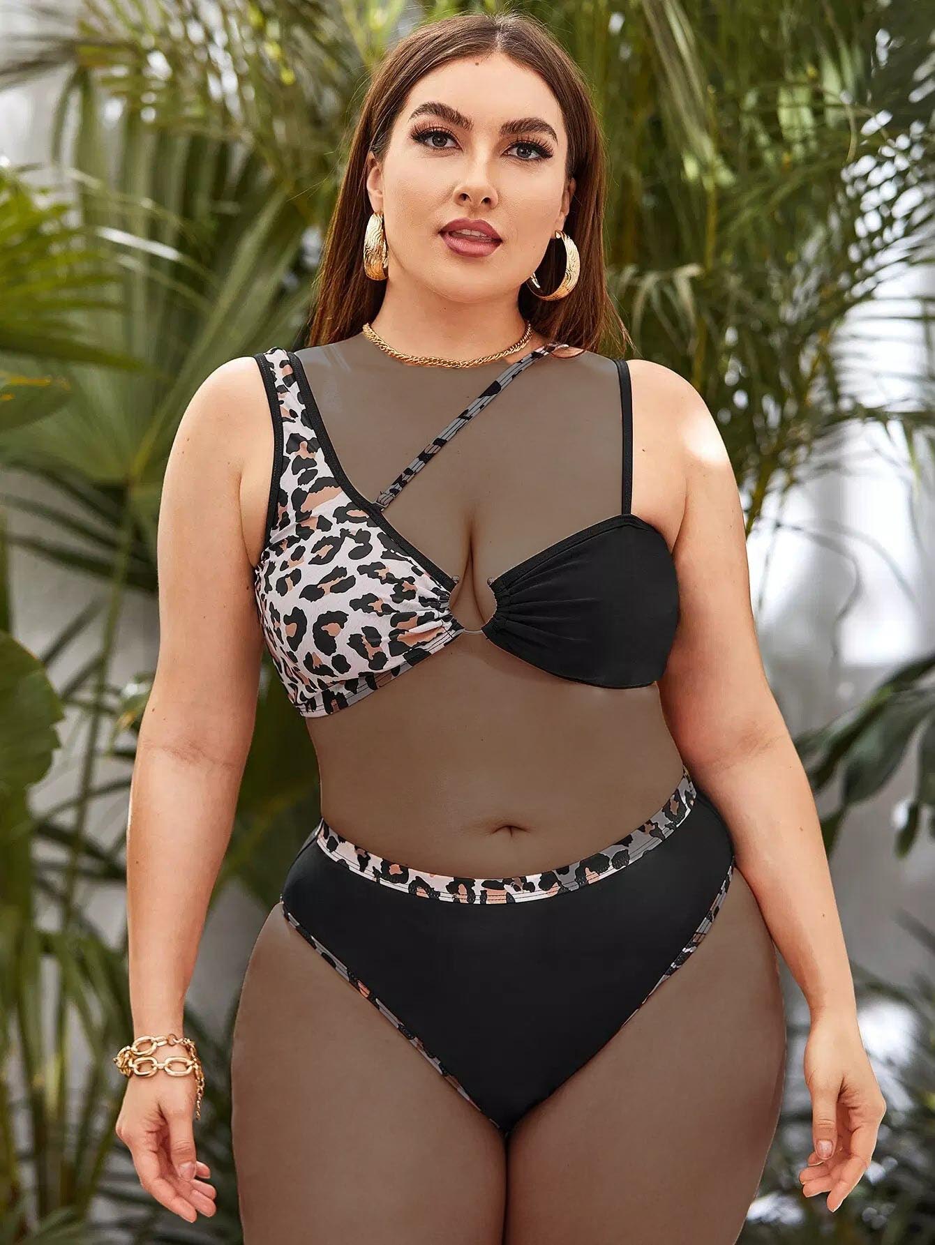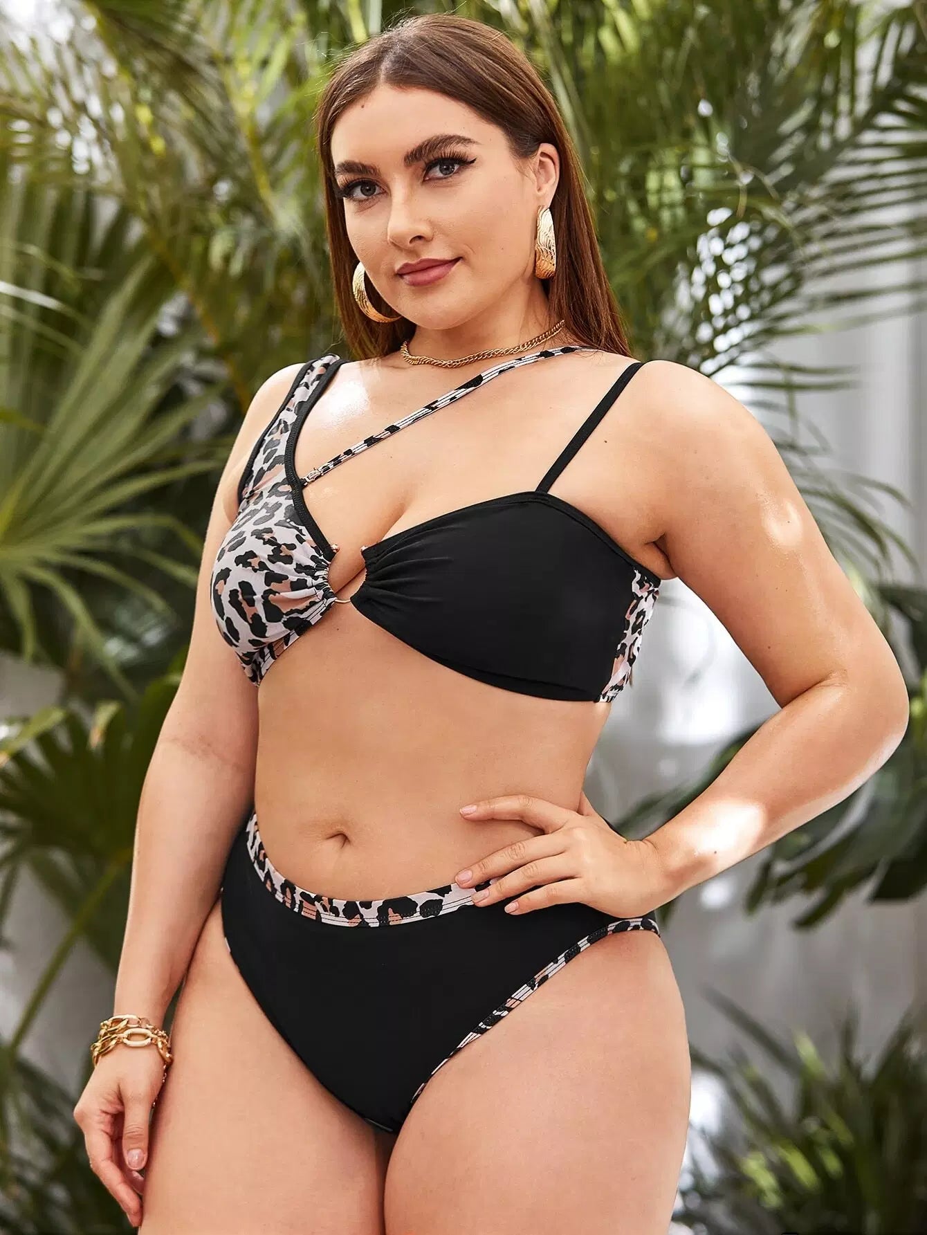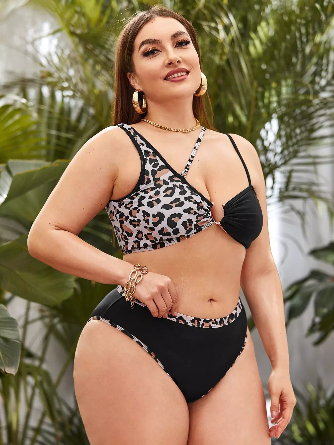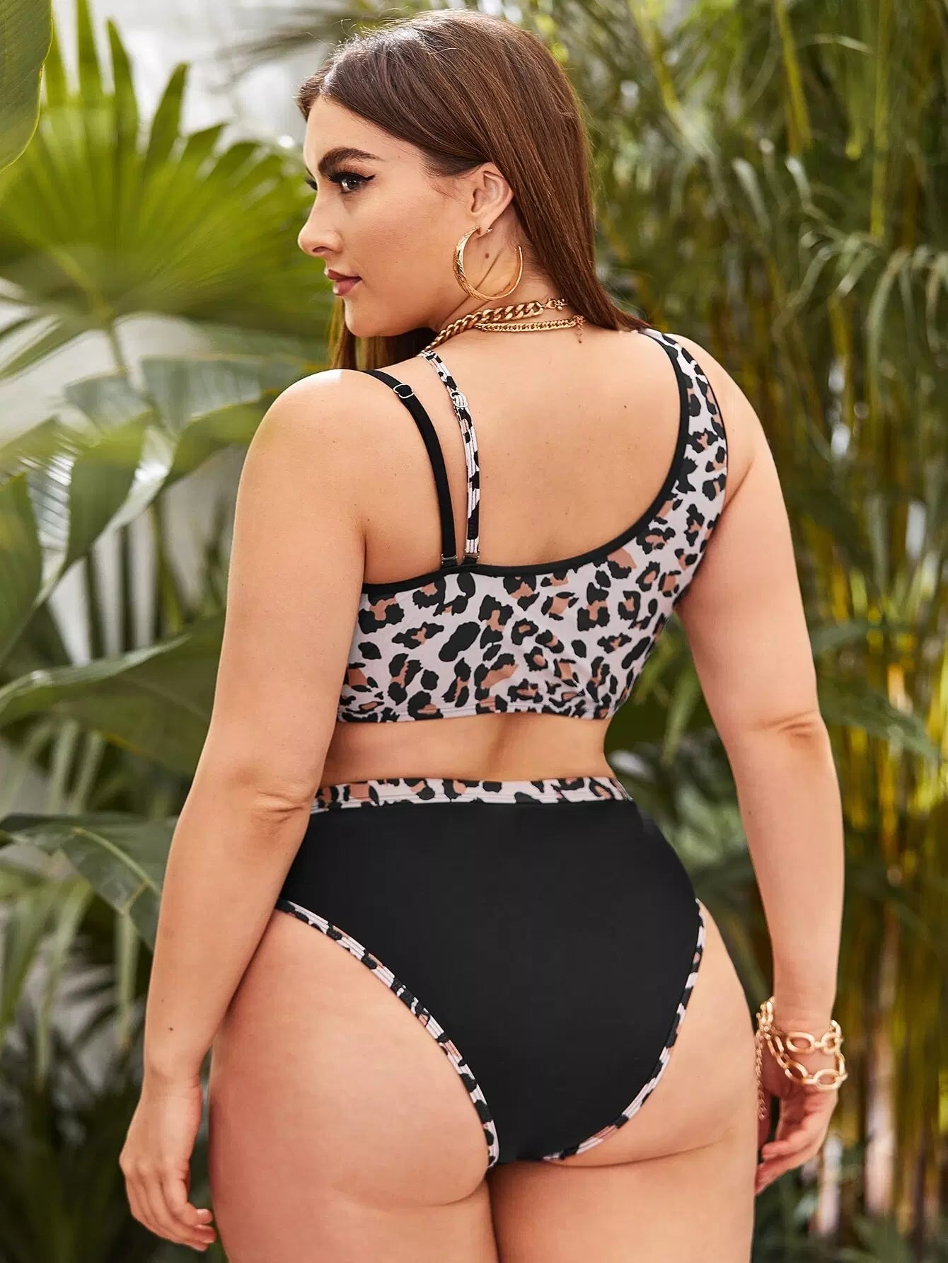 بدلة سباحة بيكيني بيكيني بلس ليوبارد معدني مربوط بنقشة جلد الفهد