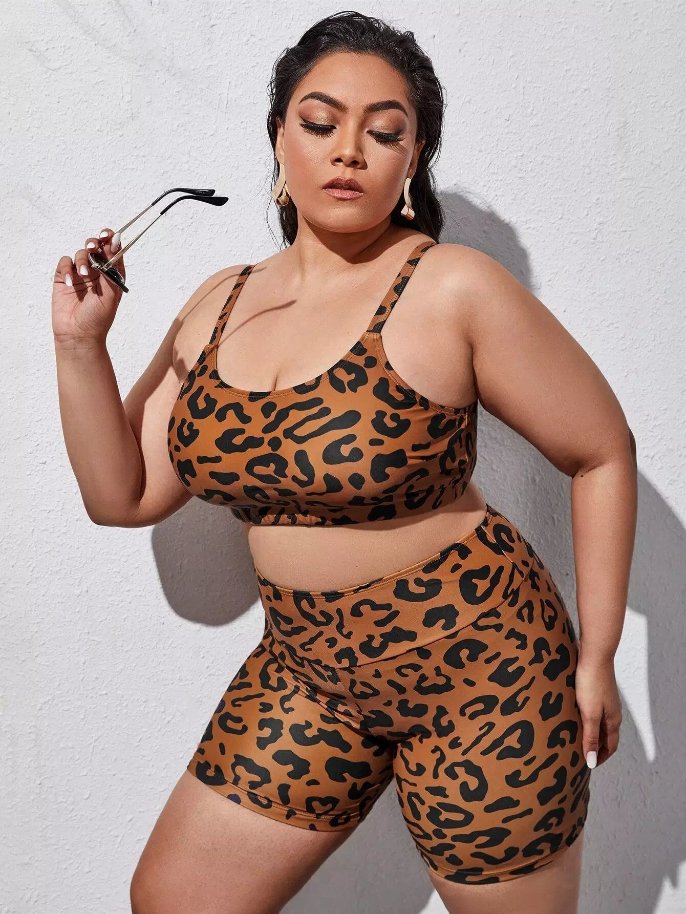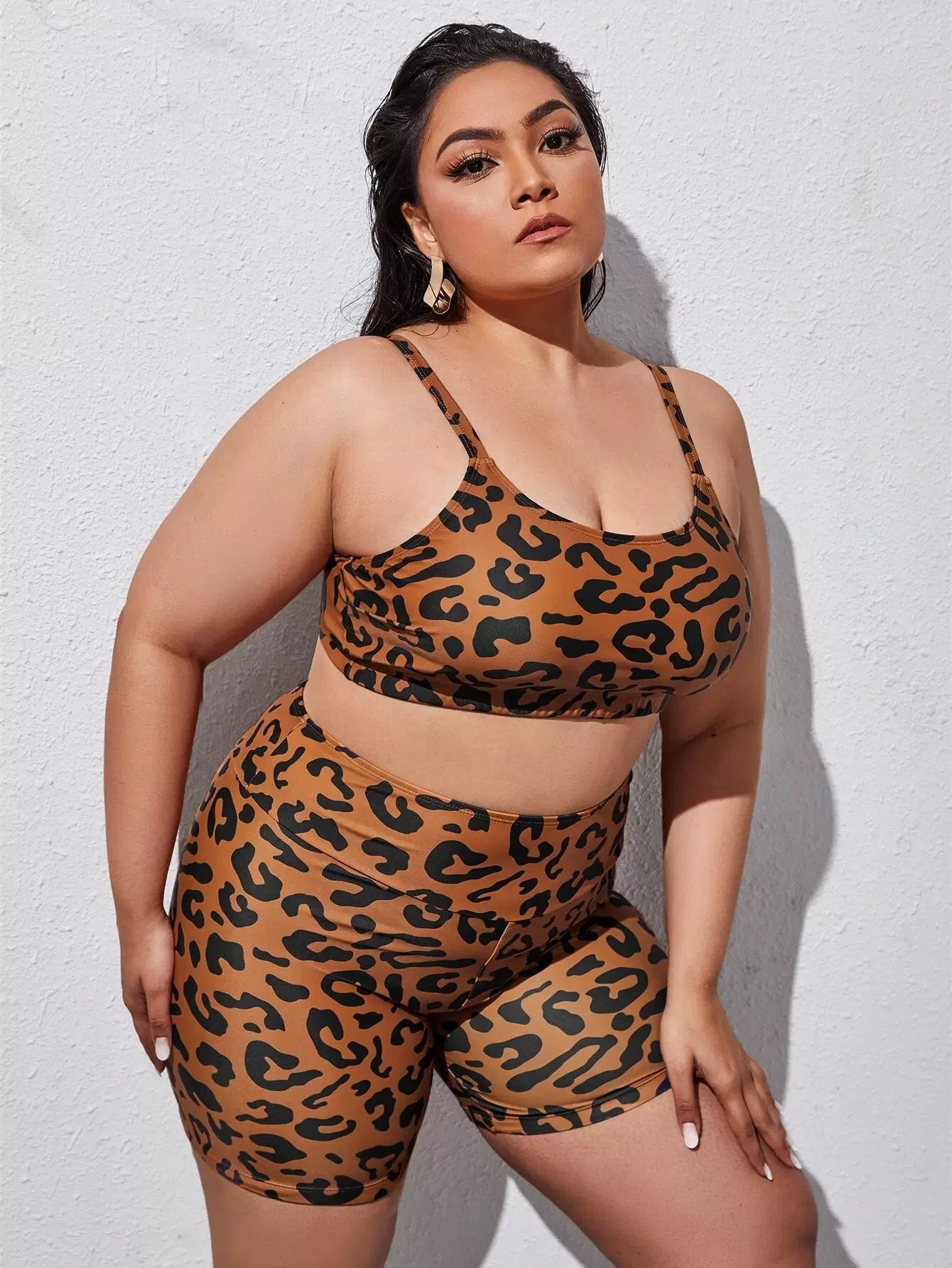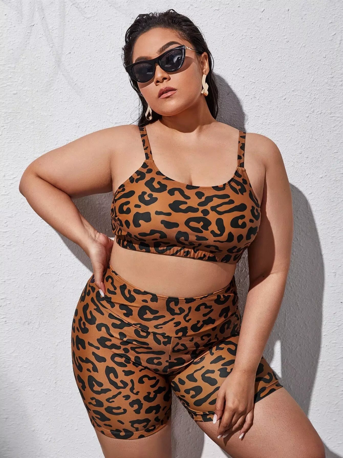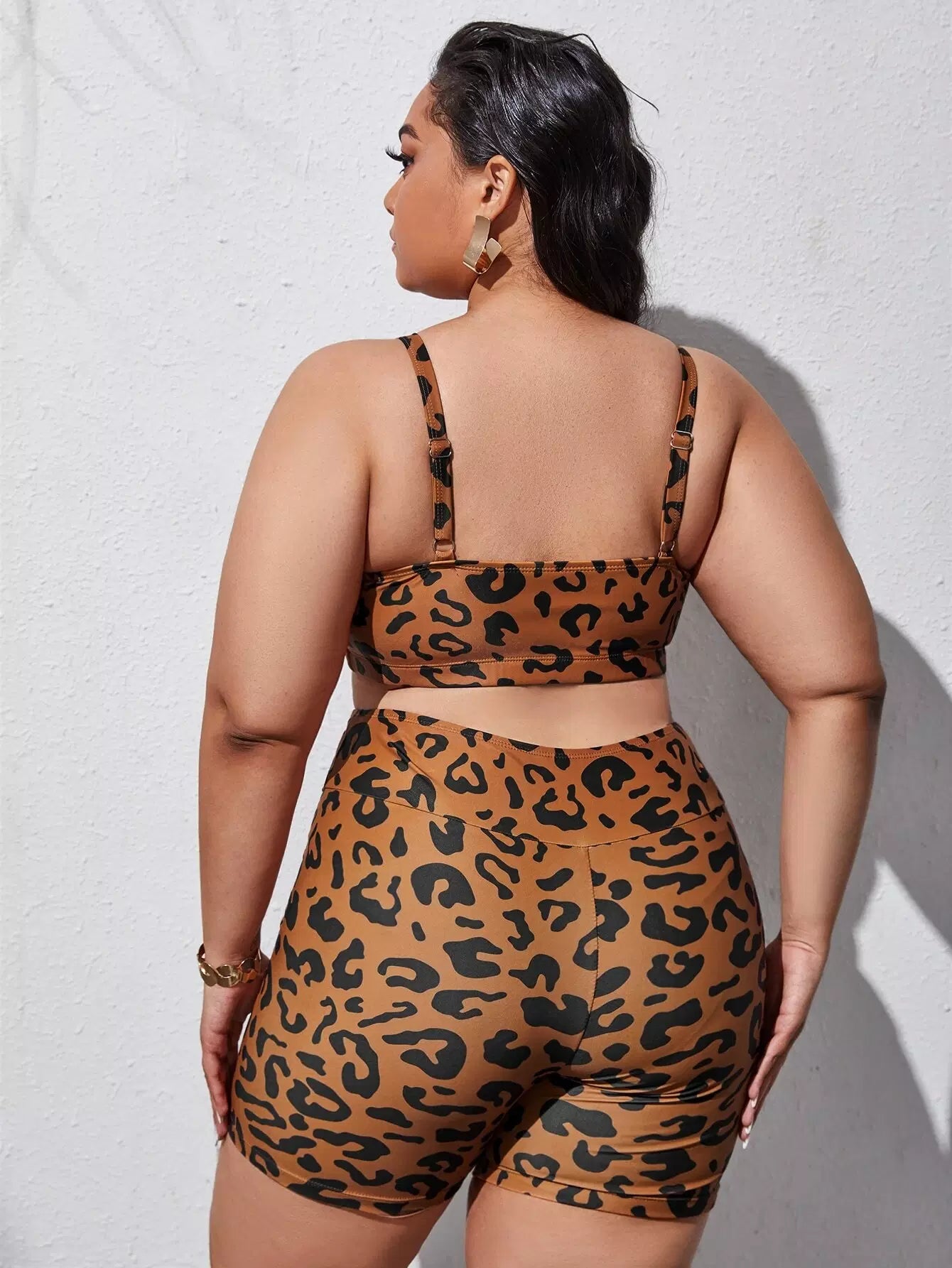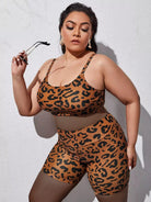 شورت سباحة بيكيني قصير بنقشة جلد الفهد زائد