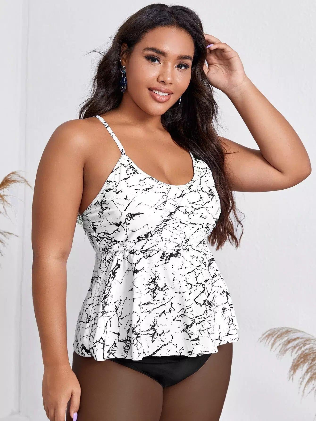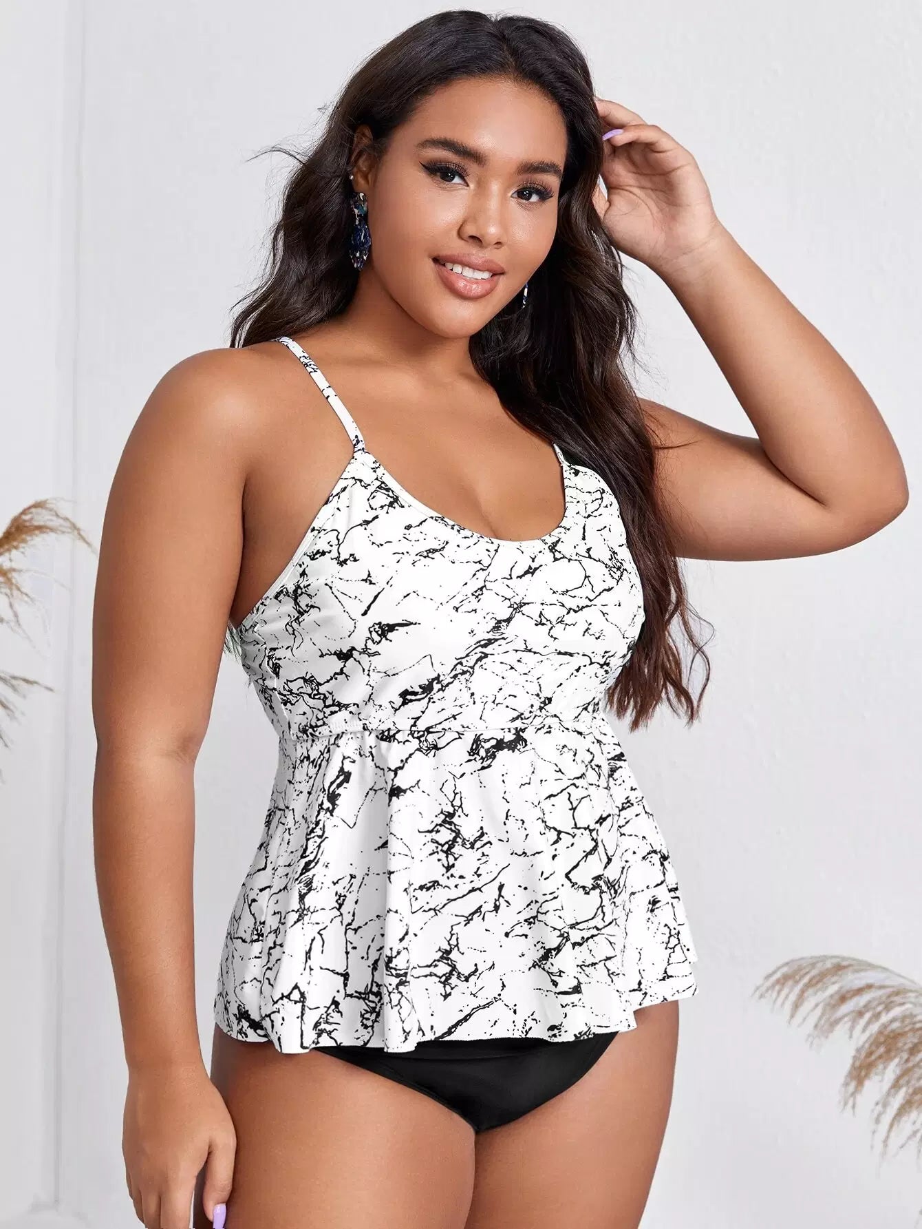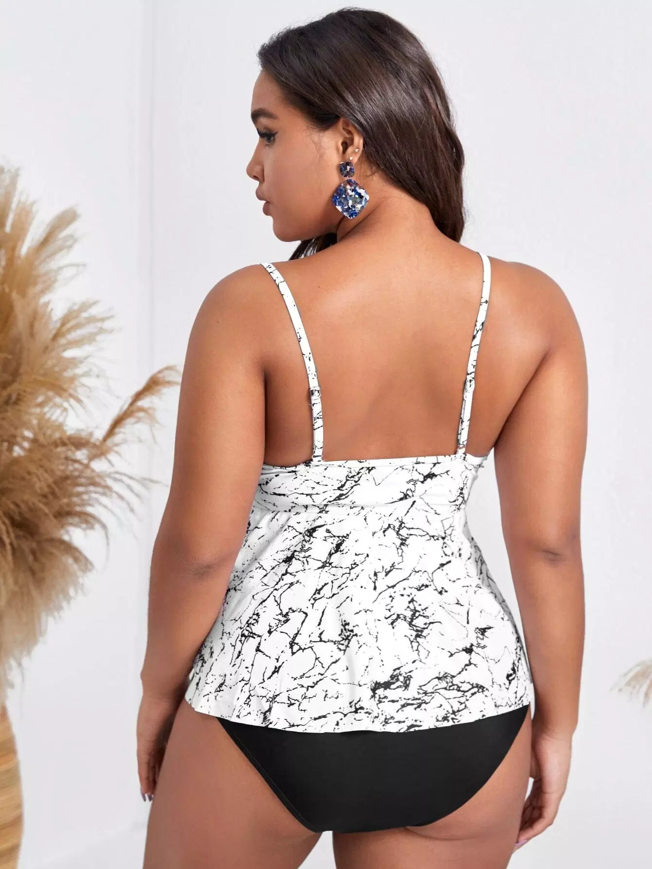 بدلة سباحة بيكيني كشكش بطبعة رخام زائد