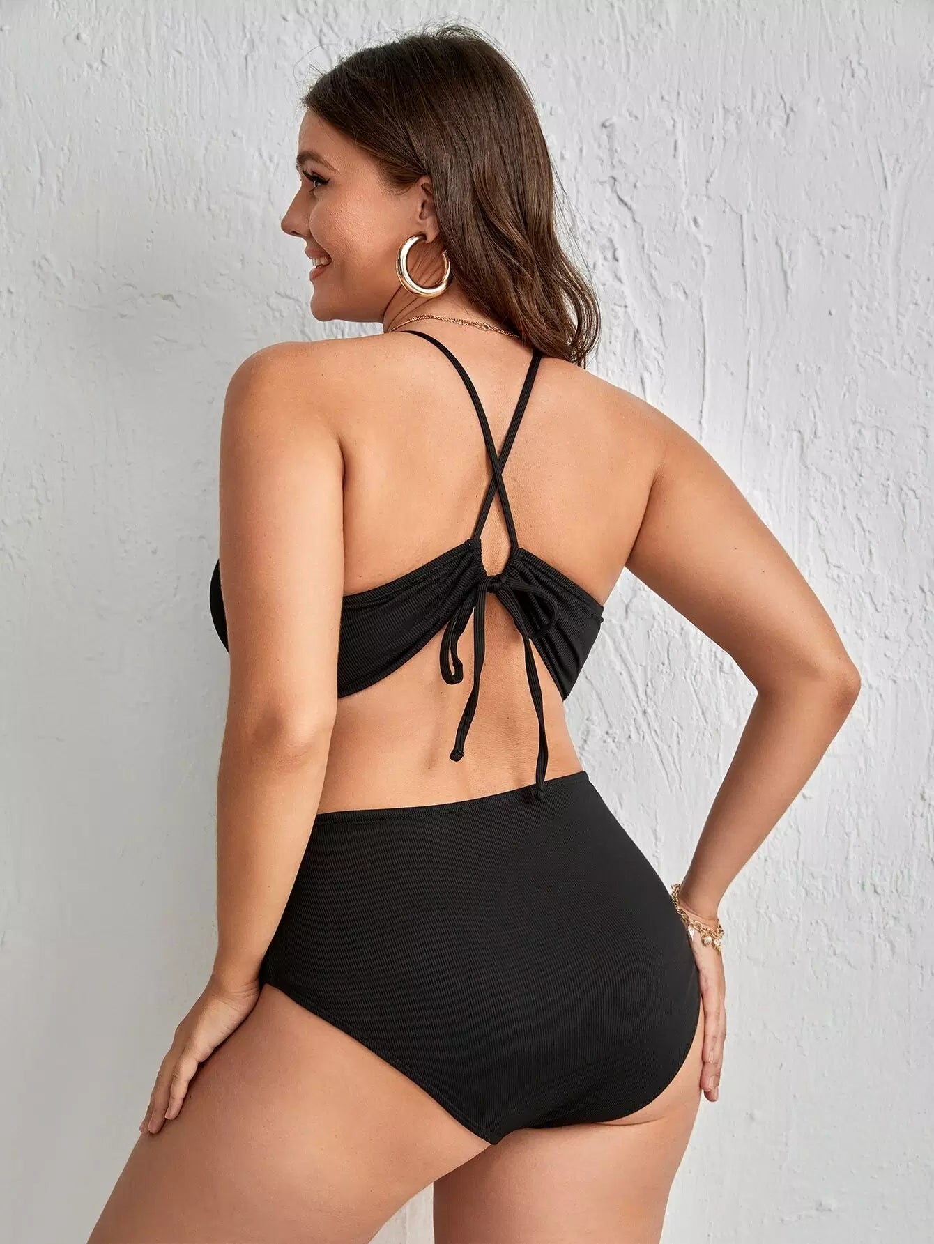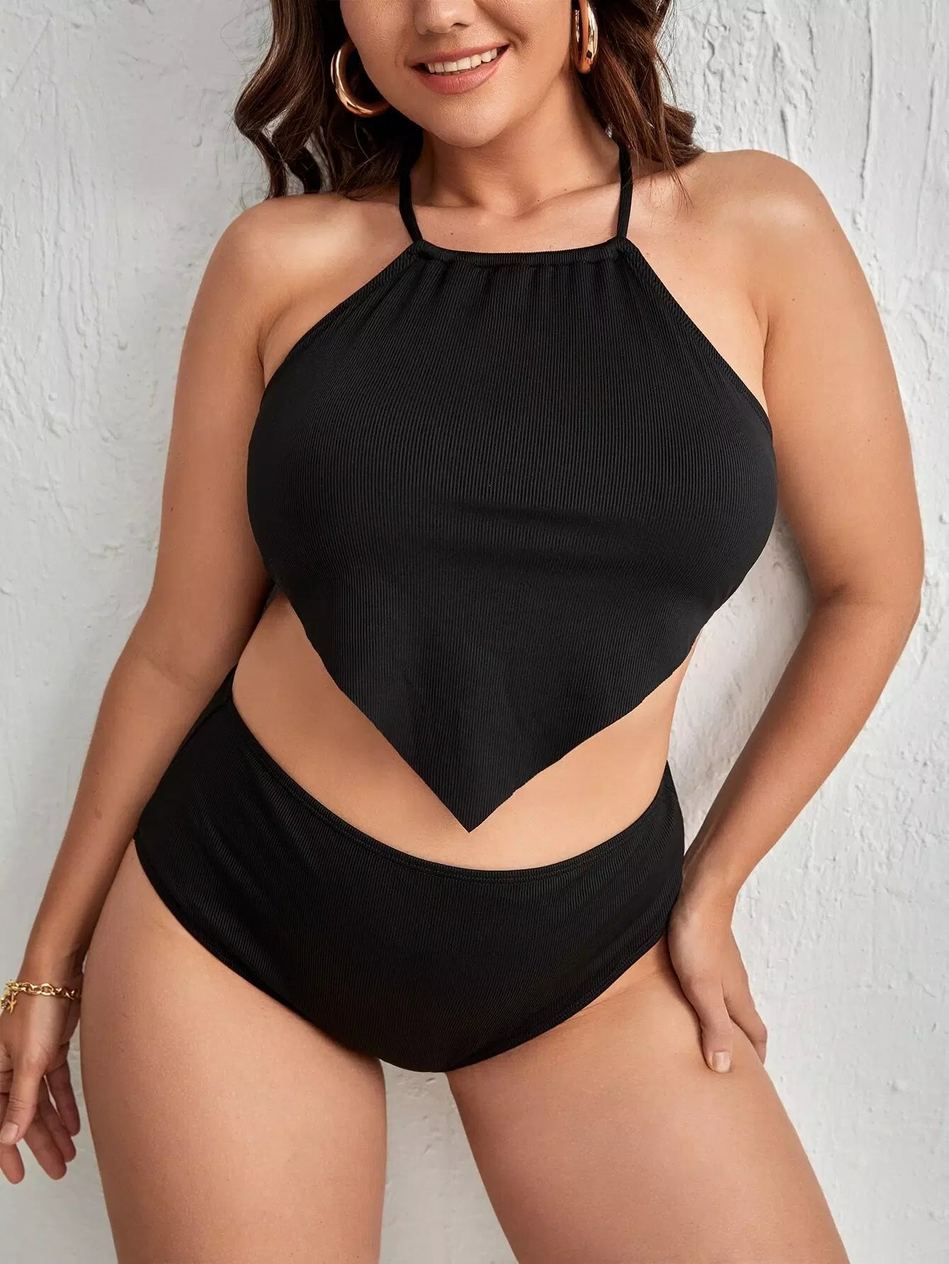 نحيف - مقاس كبير بدلة سباحة بكيني ذات حافة هانكي عالية الخصر
