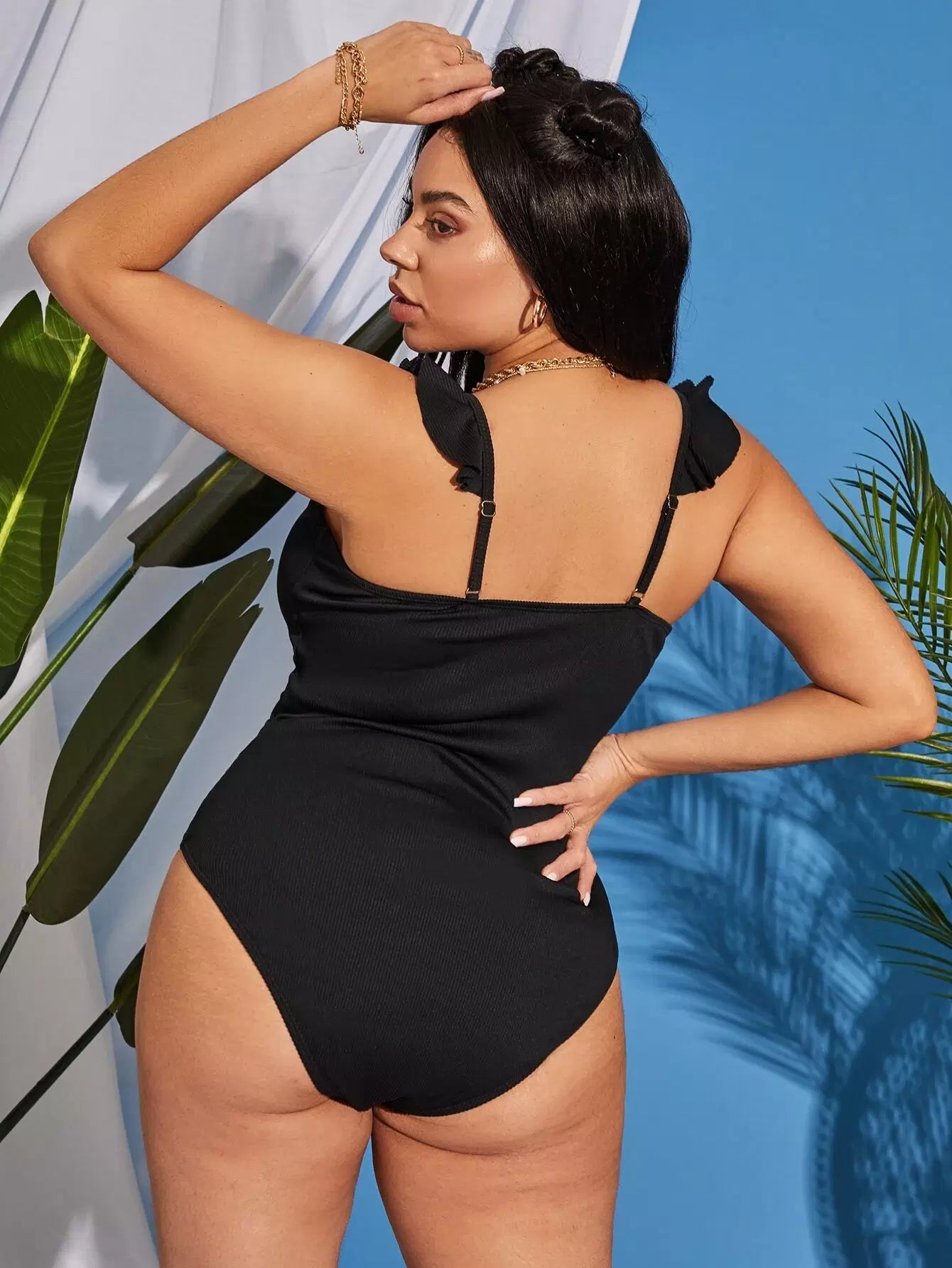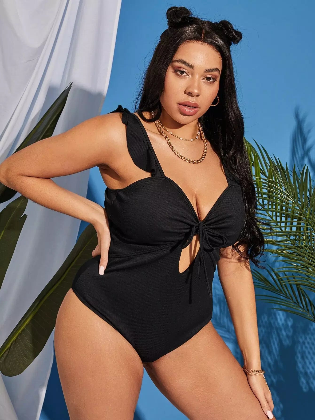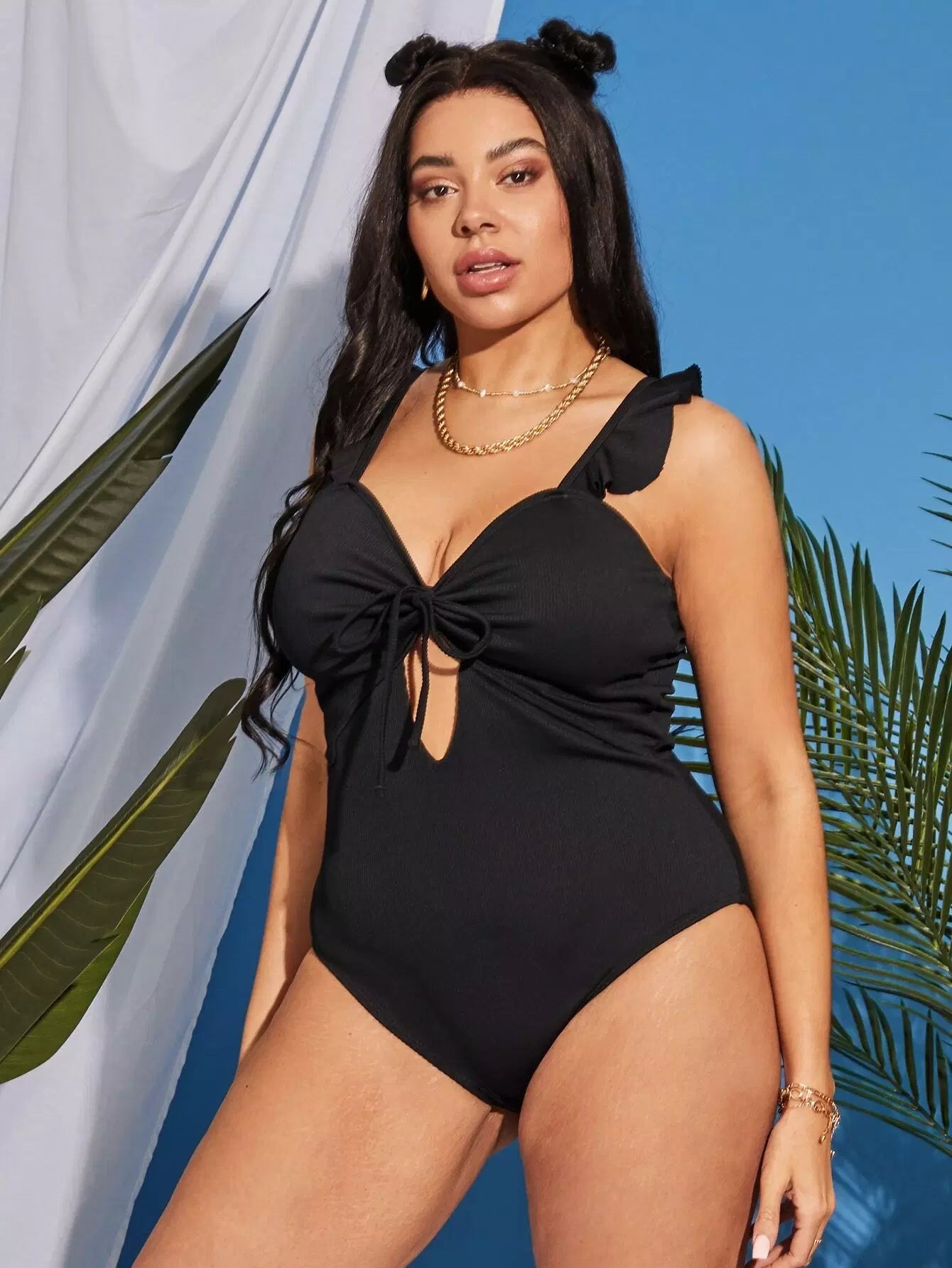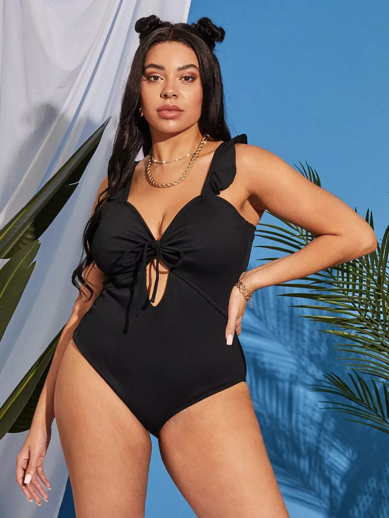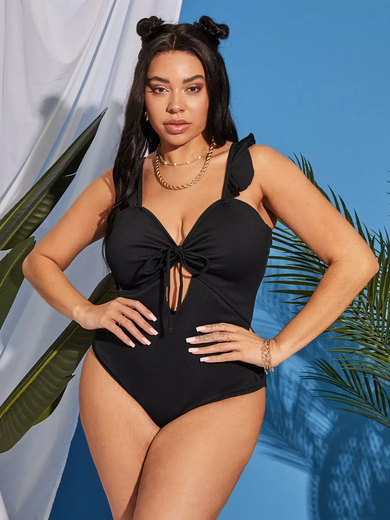 بدلة سباحة بقطعة واحدة من قطعة واحدة مكشكشة برباط أمامي كشكش زائد