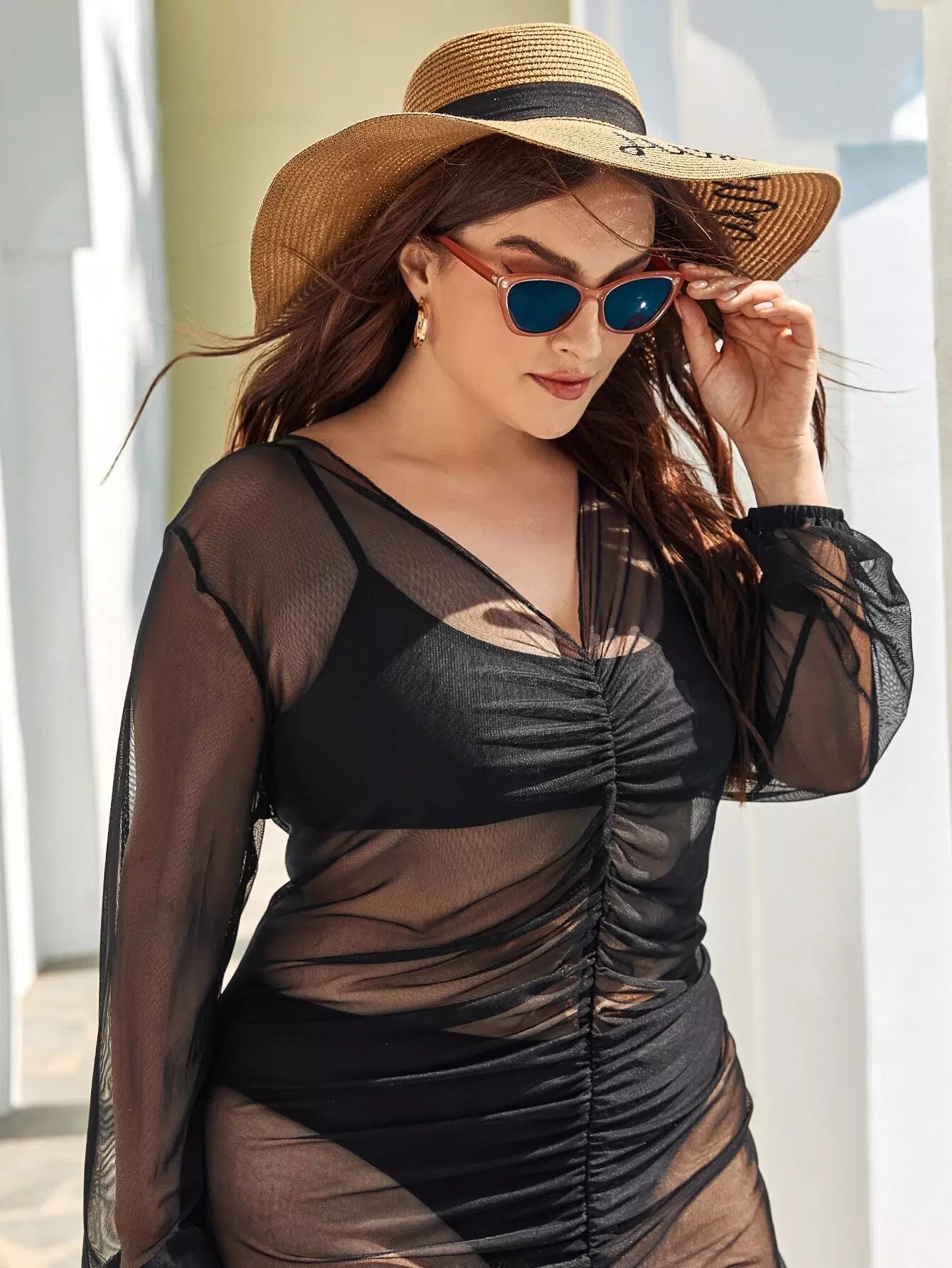 نحيف - مقاس كبير غطاء شبكي منقسم مكشكش بدون مجموعة بيكيني