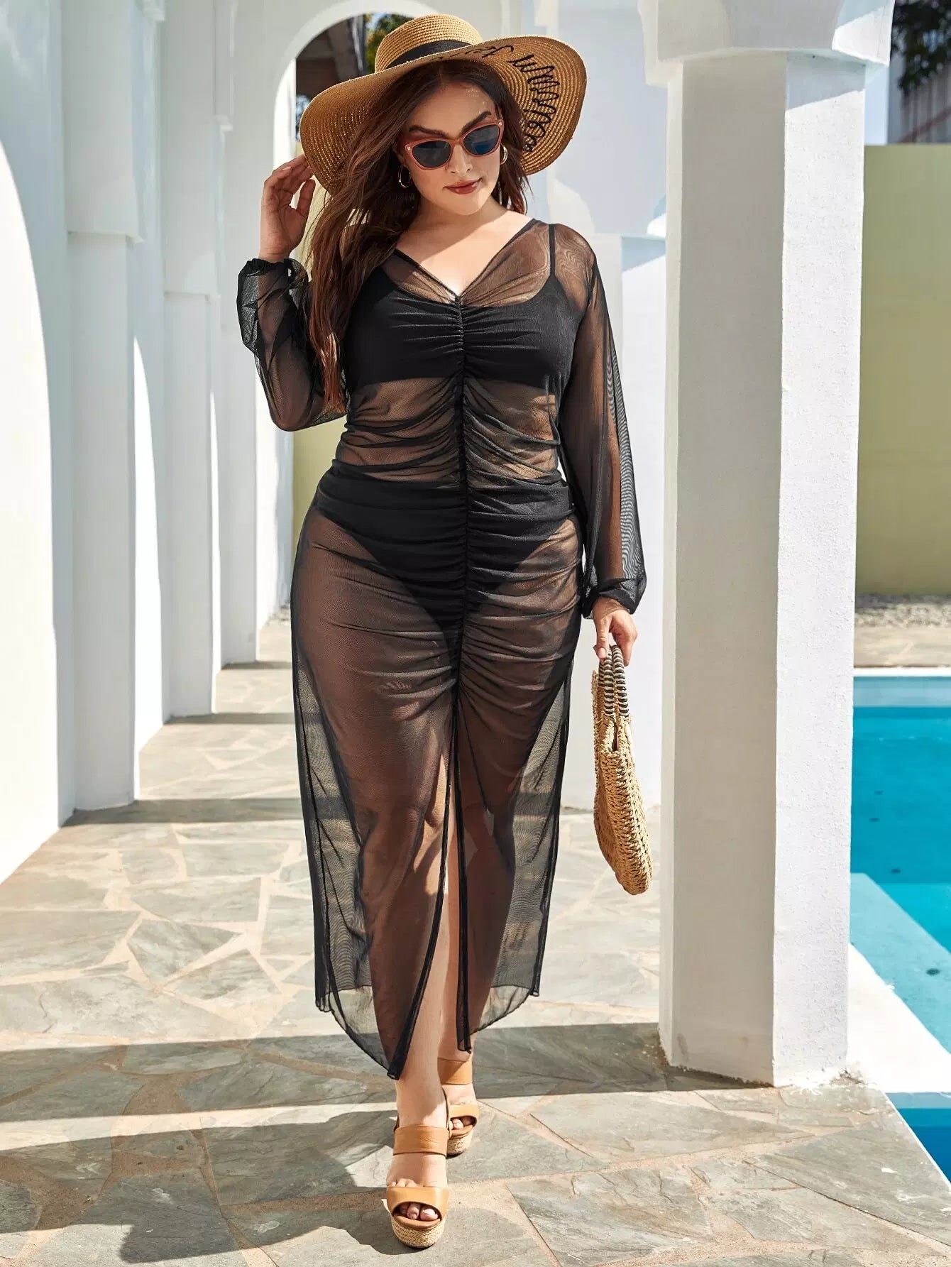 طقم بيكيني بدون قميص بيكيني بغطاء شبكي مقسم ومفتوح من الأمام والخلف