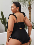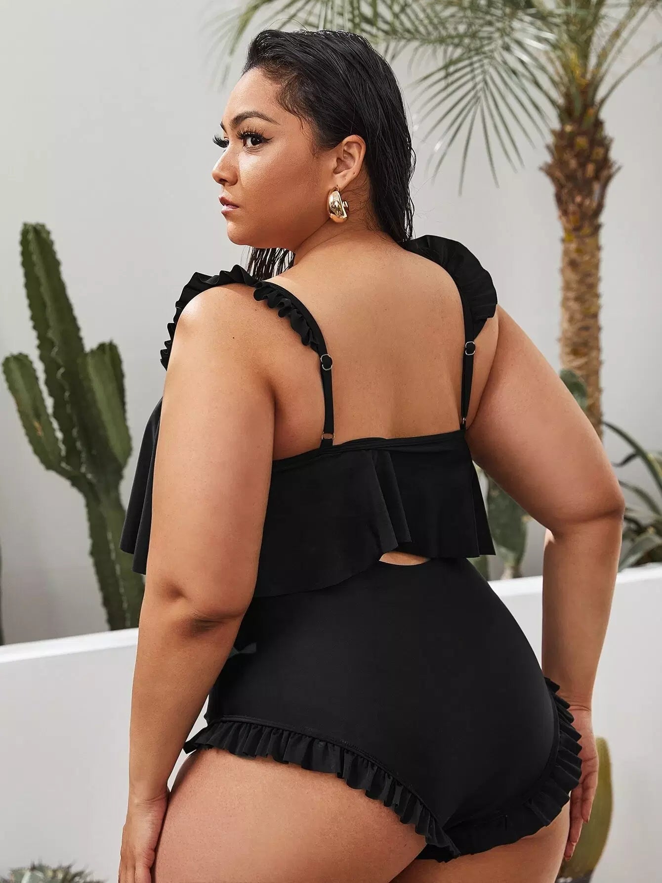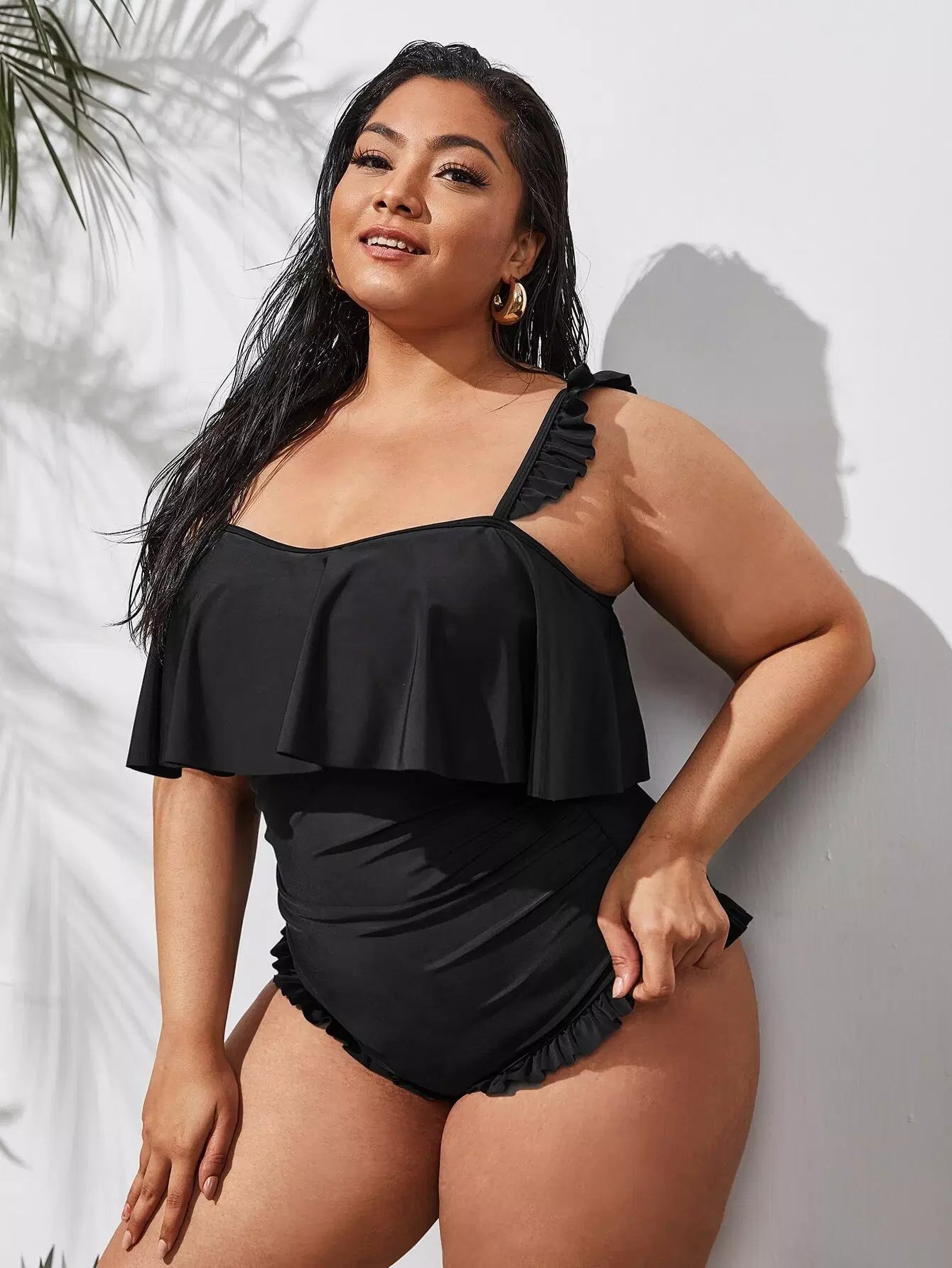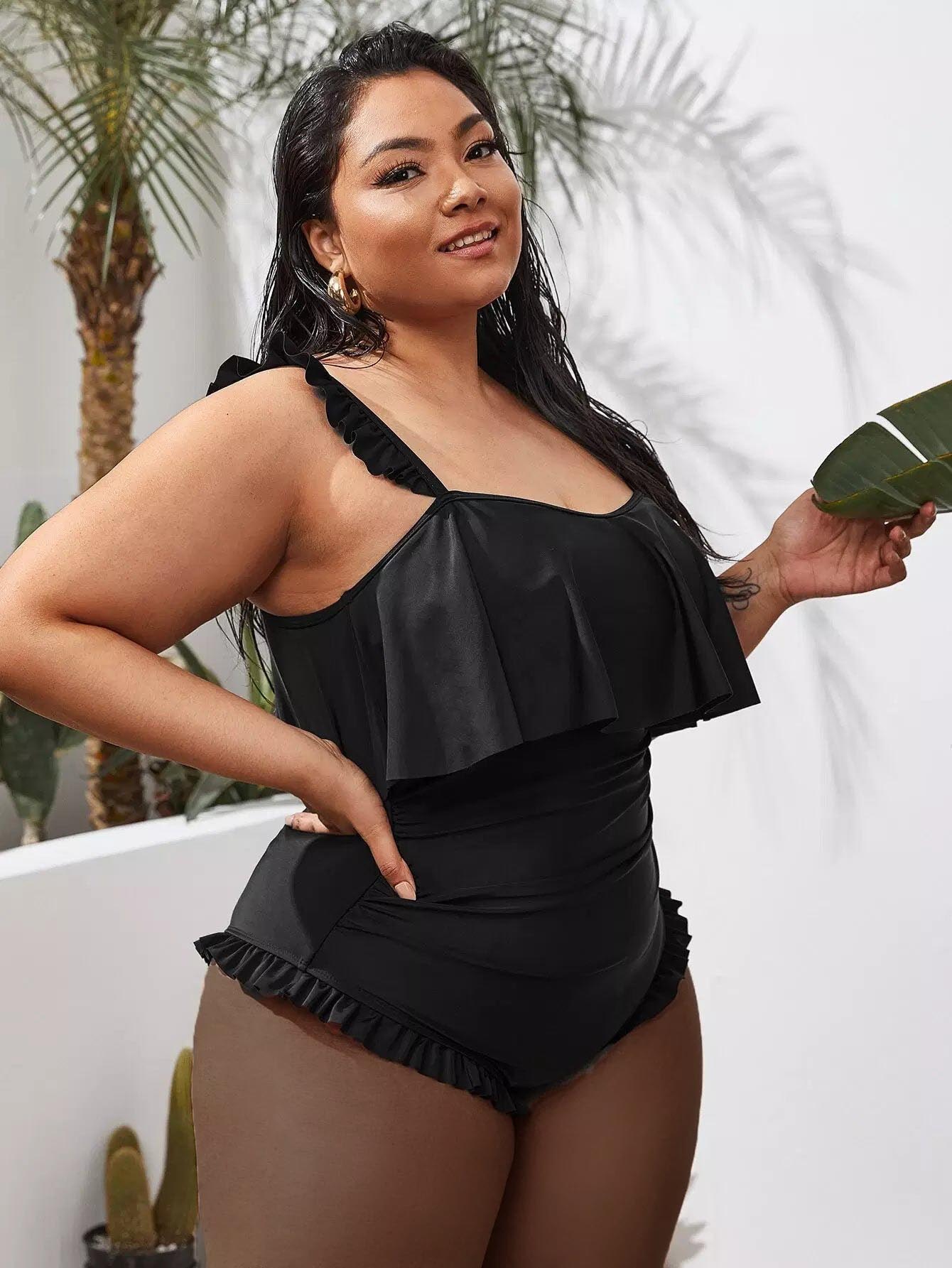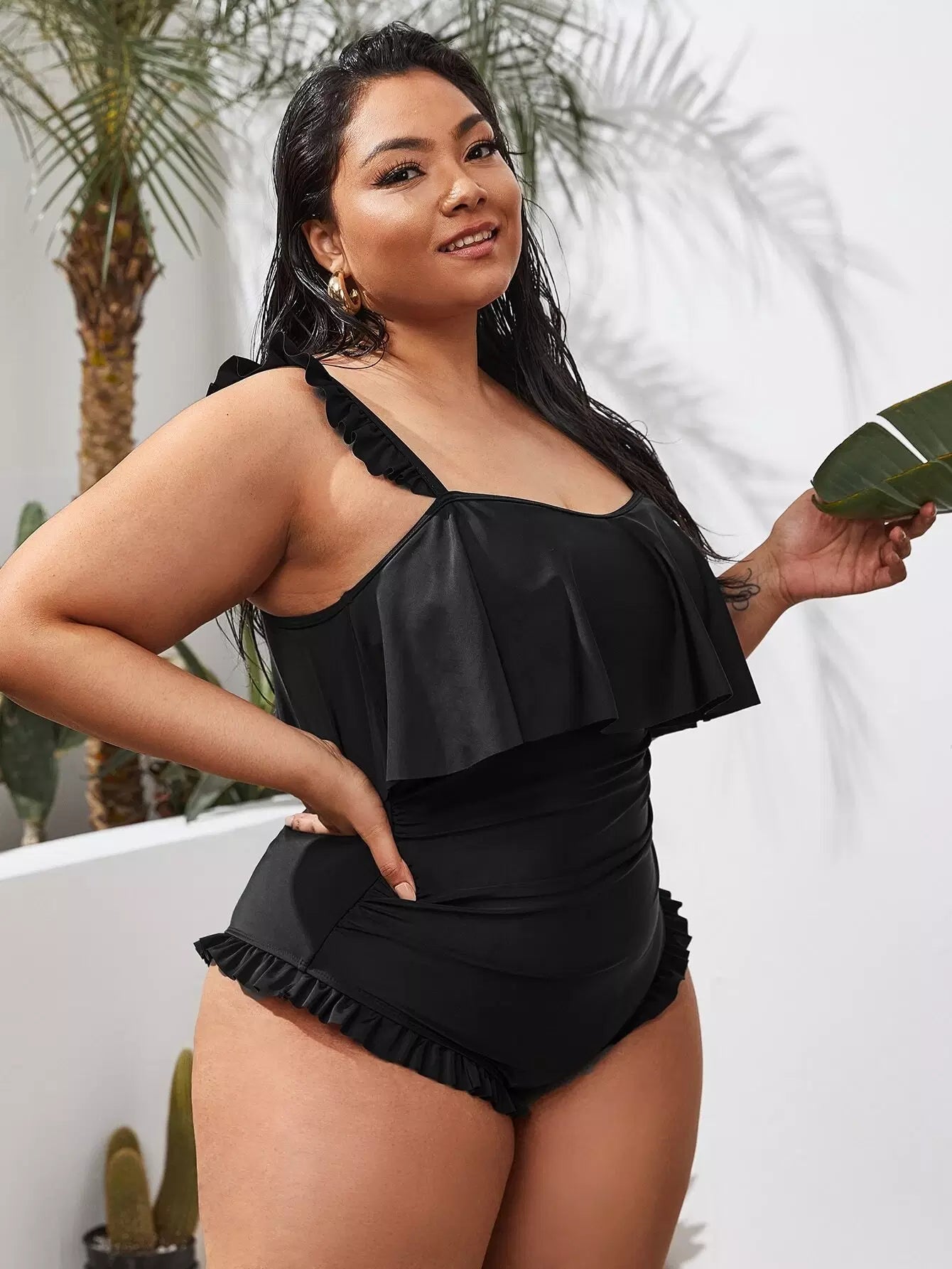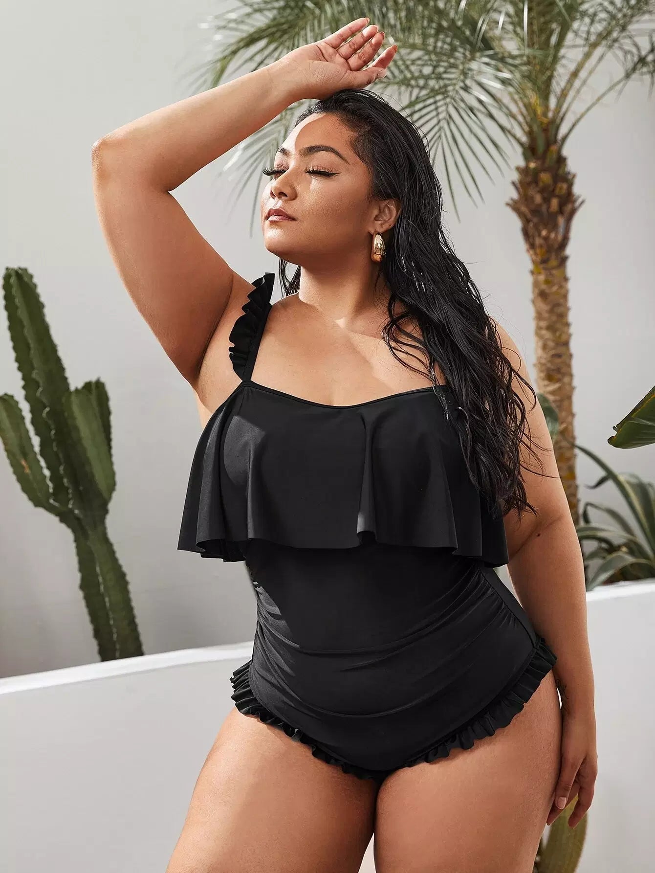 بدلة سباحة قطعة واحدة مكشكشة بحافة مكشكشة زائد