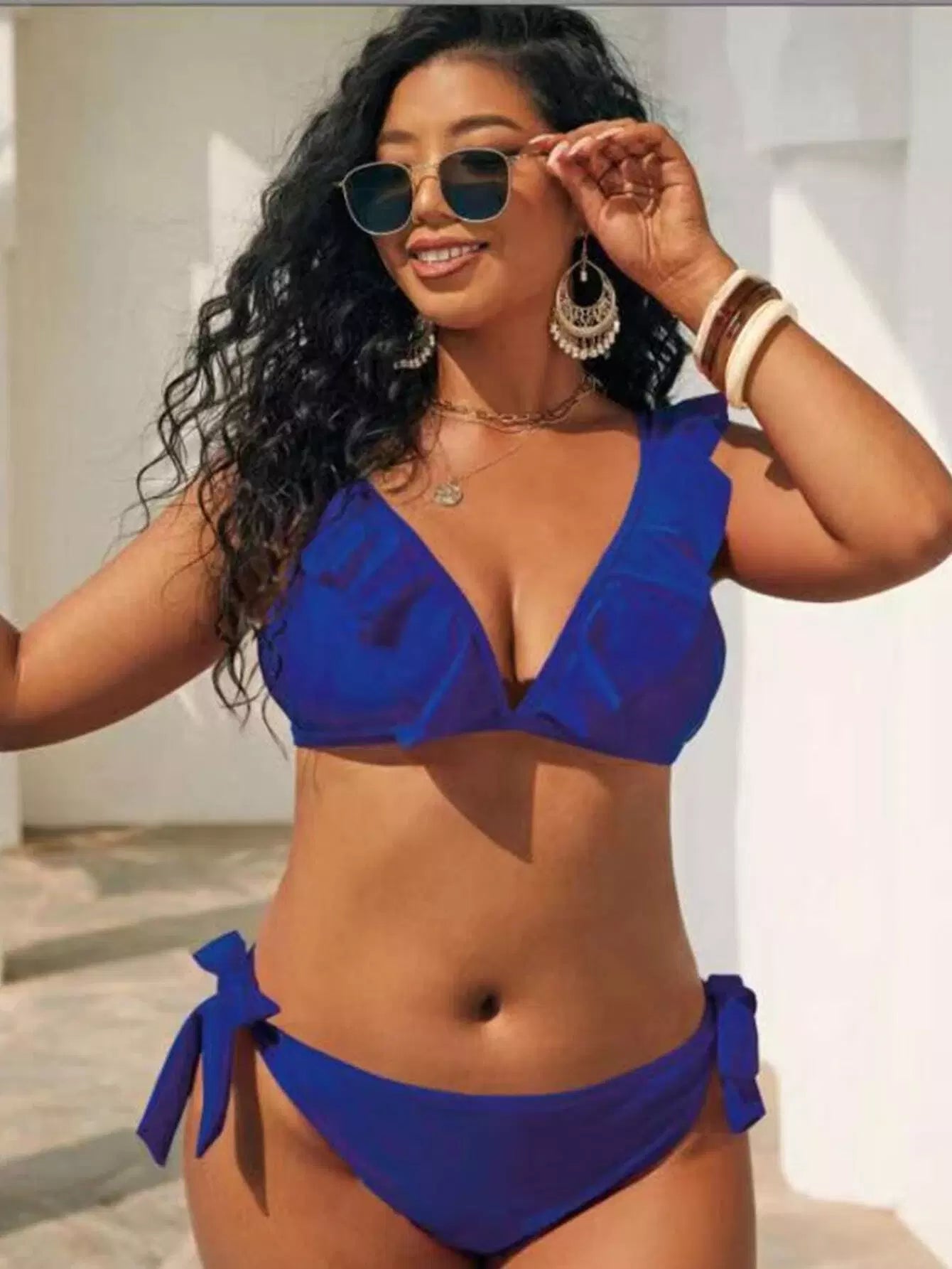 بدلة سباحة بيكيني مكشكشة بربطة جانبية مكشكشة زائد