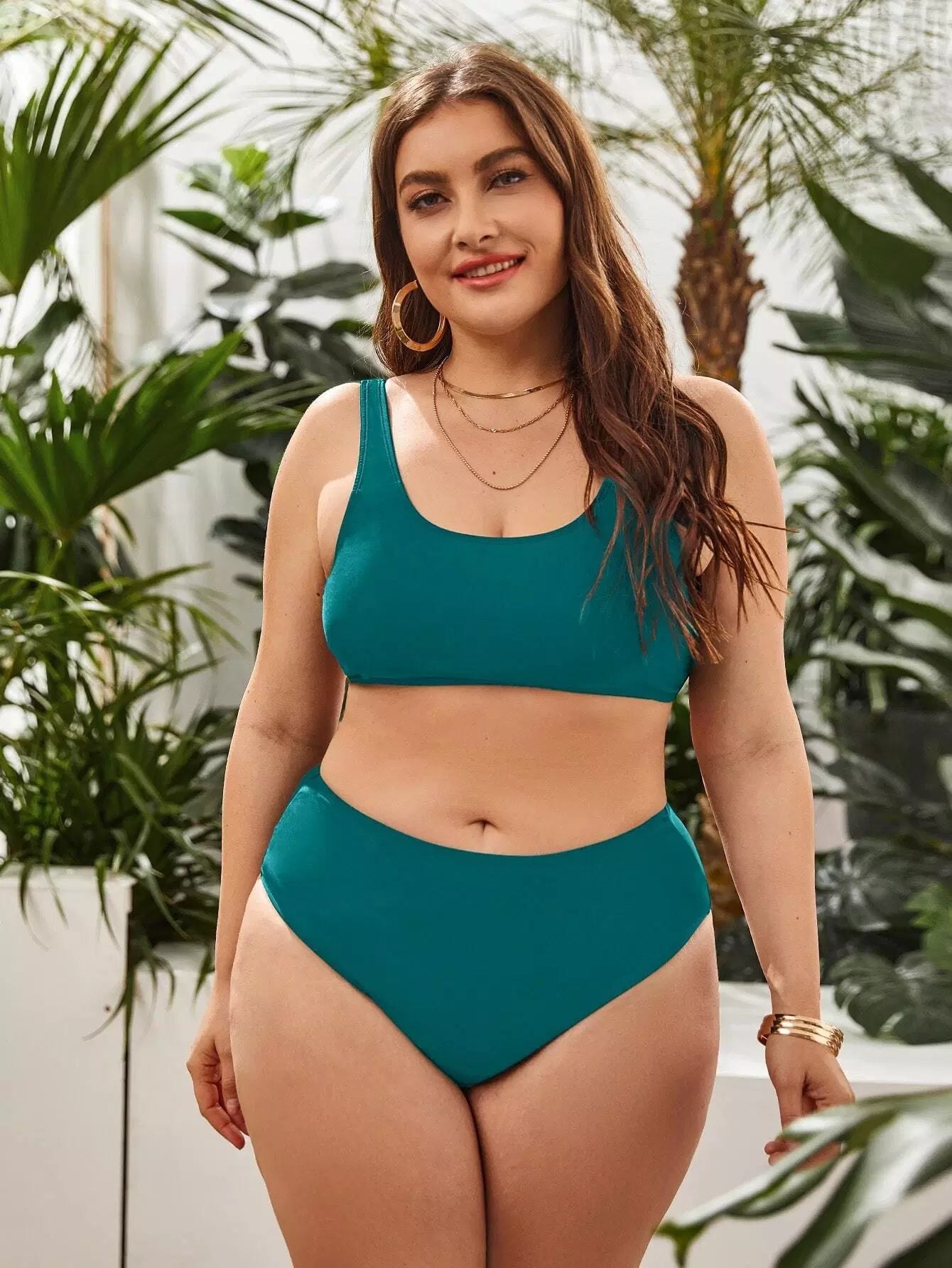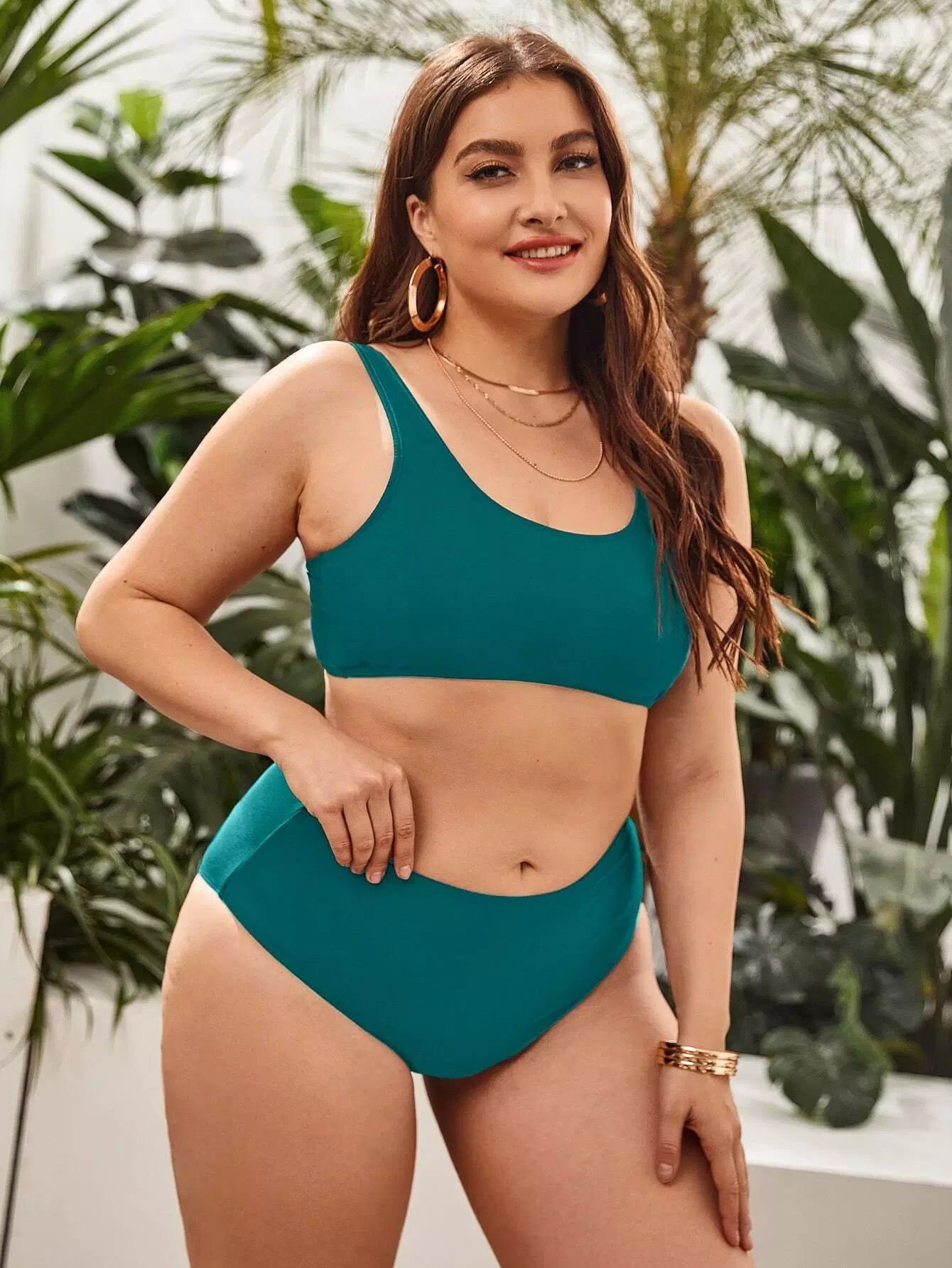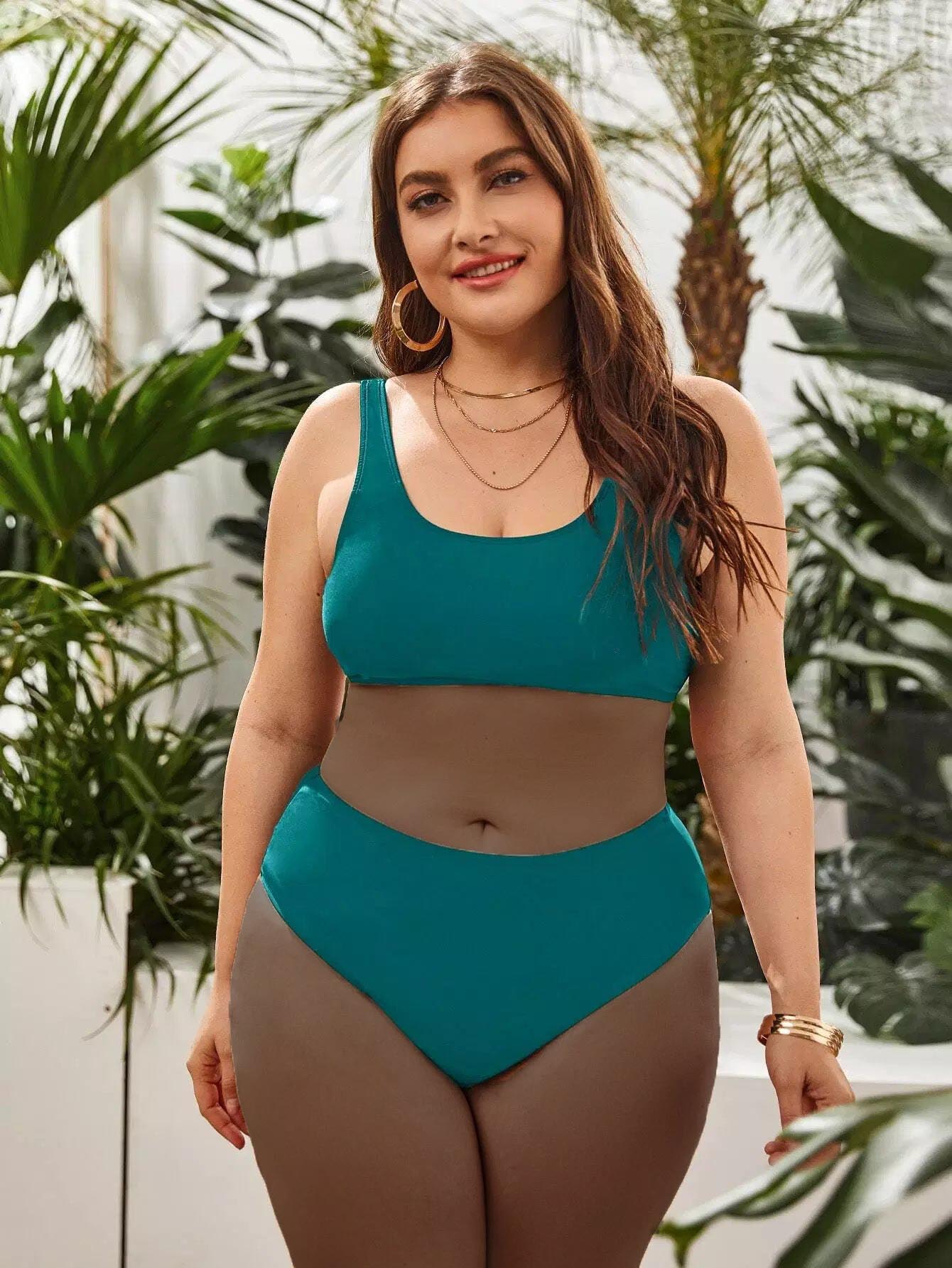 بدلة سباحة بيكيني برقبة دائرية برقبة زائد