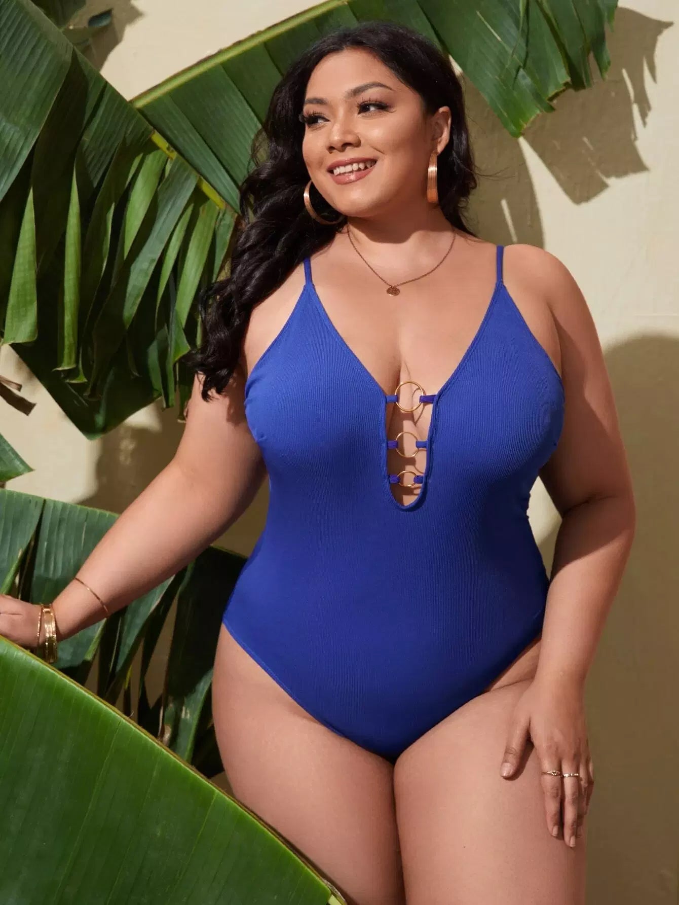 بذلة سباحة بقطعة واحدة من الأمام بحلقة سادة متصلة من الأمام