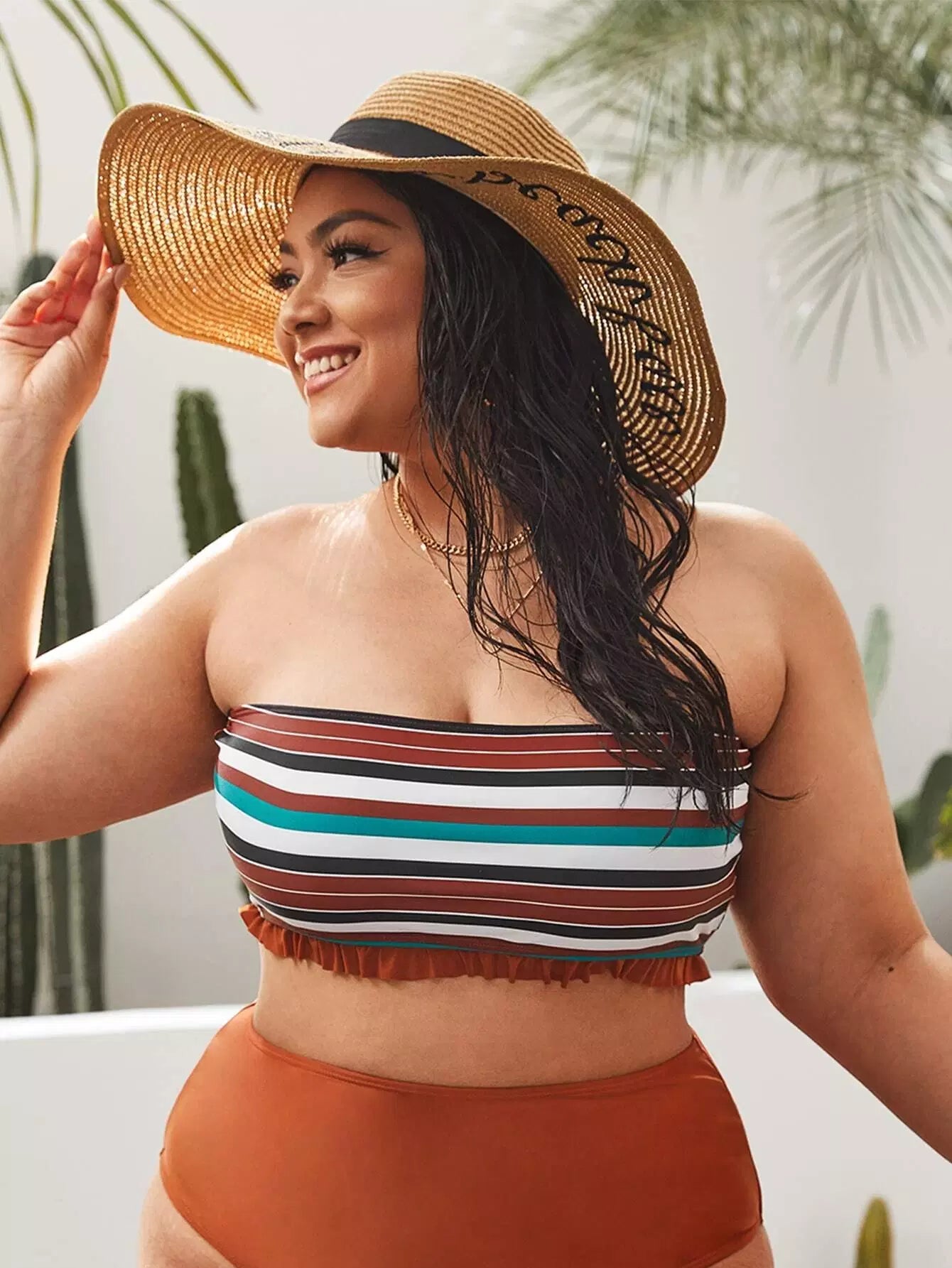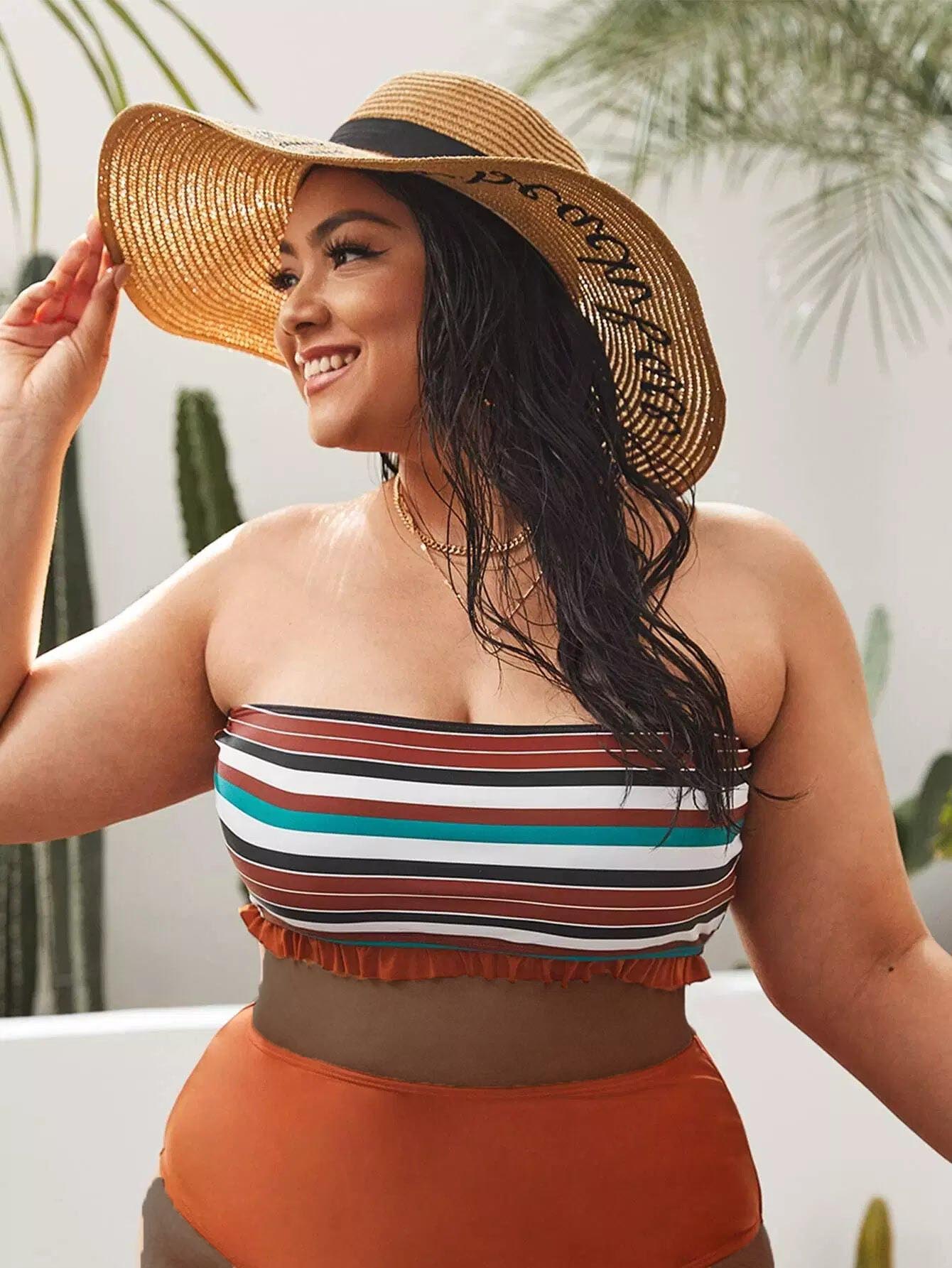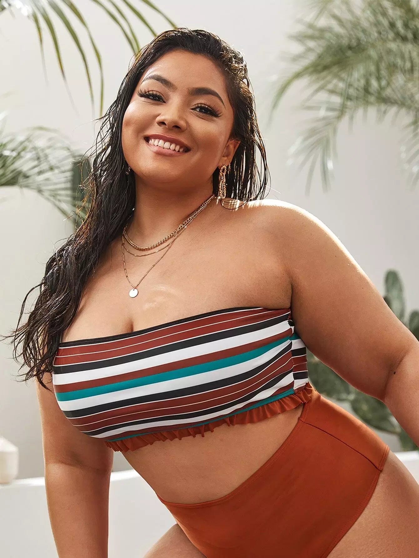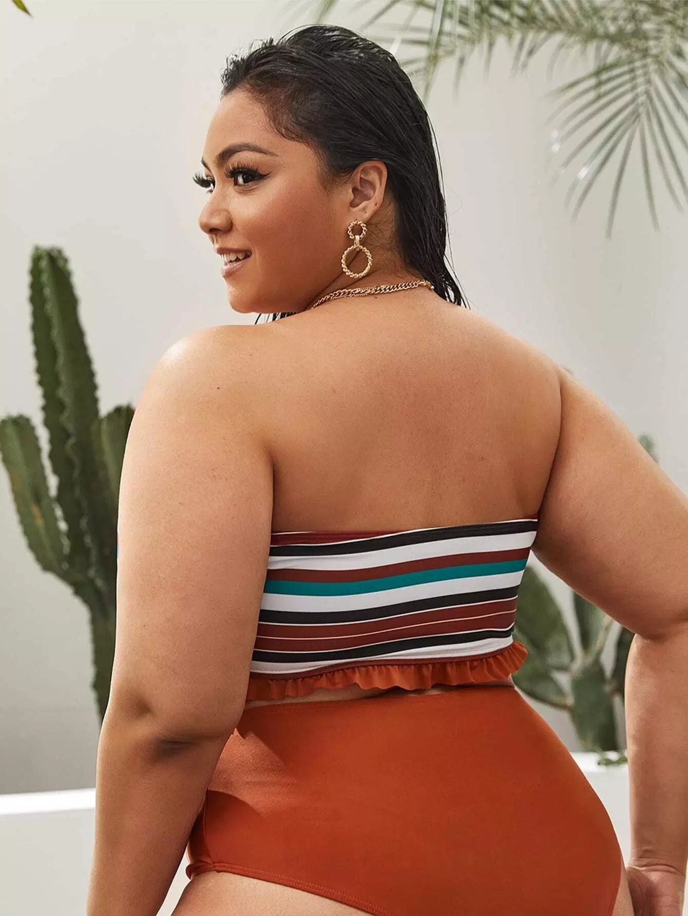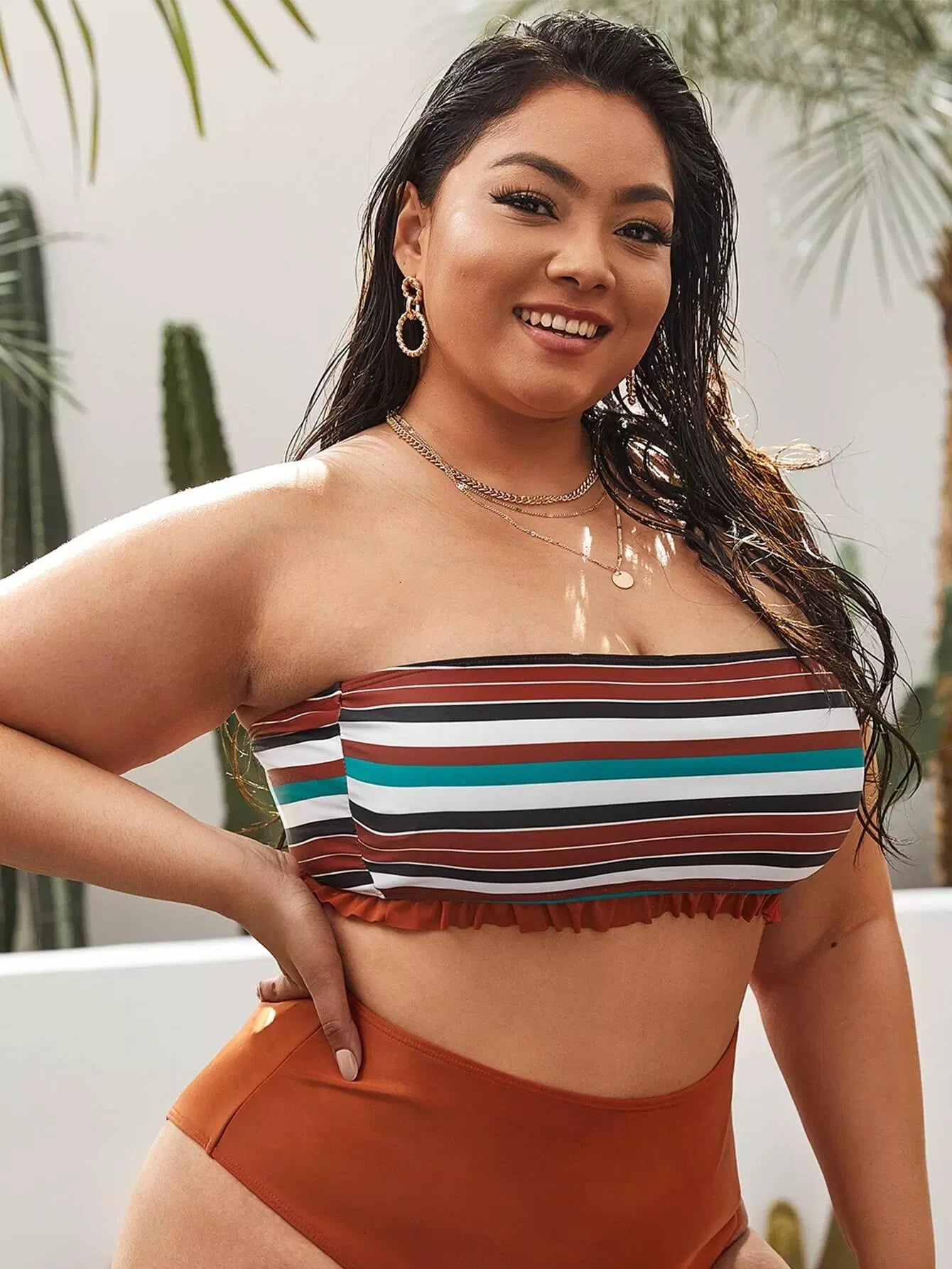 نحيف - مقاس كبير أعلى بيكيني العصابة تقليم هدب مخطط