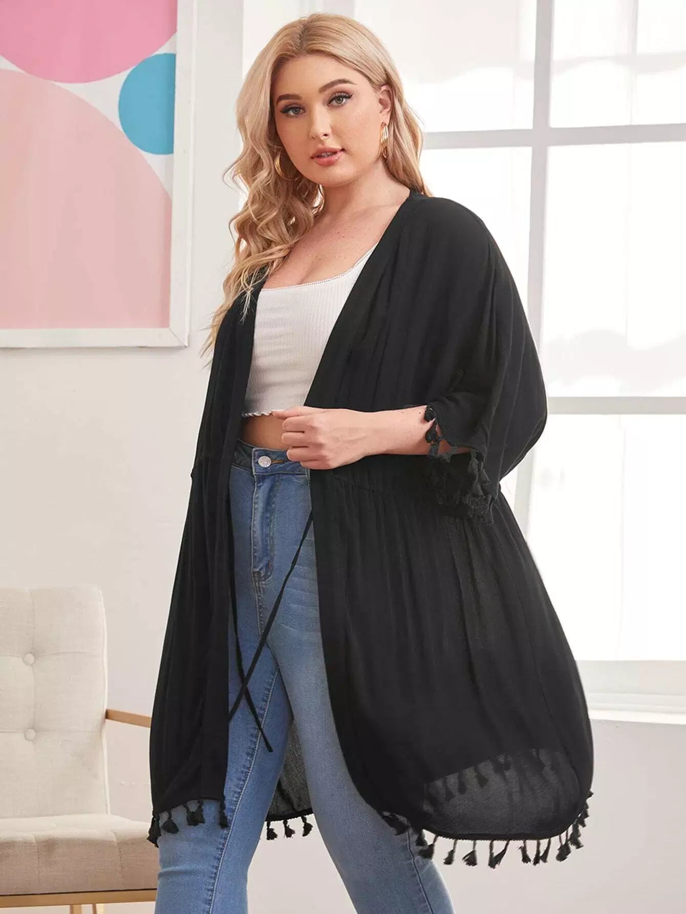 كيمونو زائد مزين بشرابة سادة
