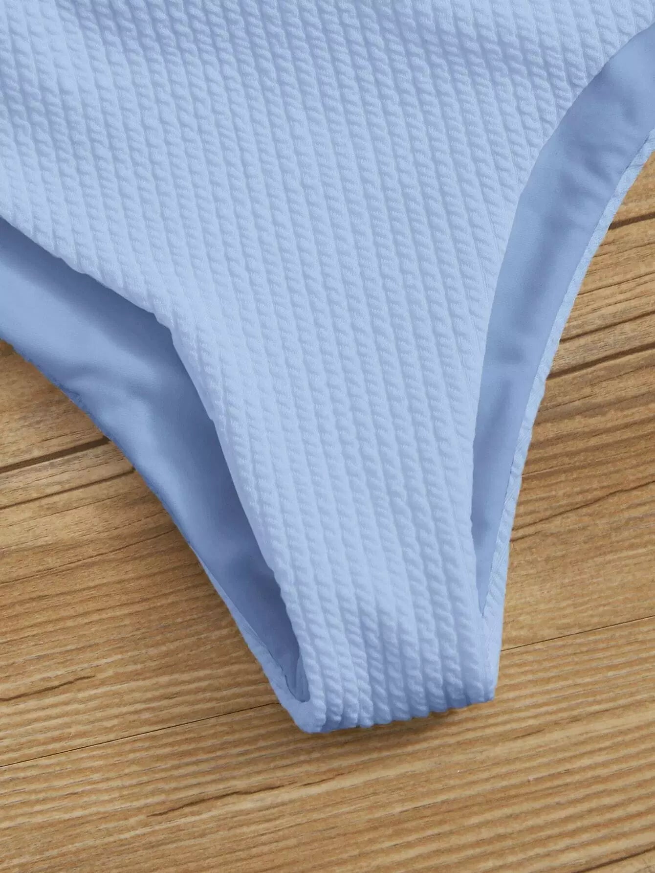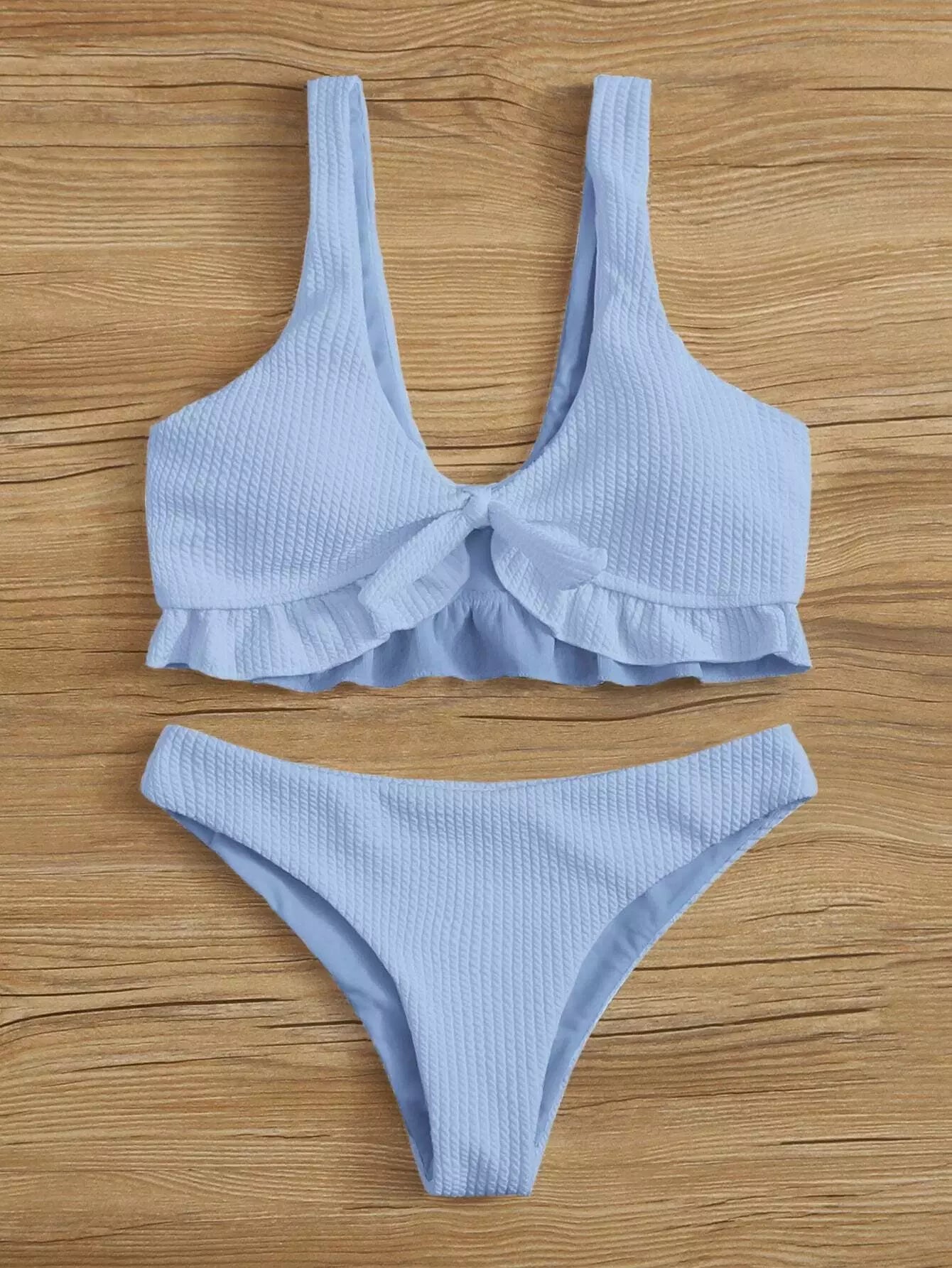 بدلة سباحة بيكيني بعقدة أمامية مزخرفة بنقشة زائد
