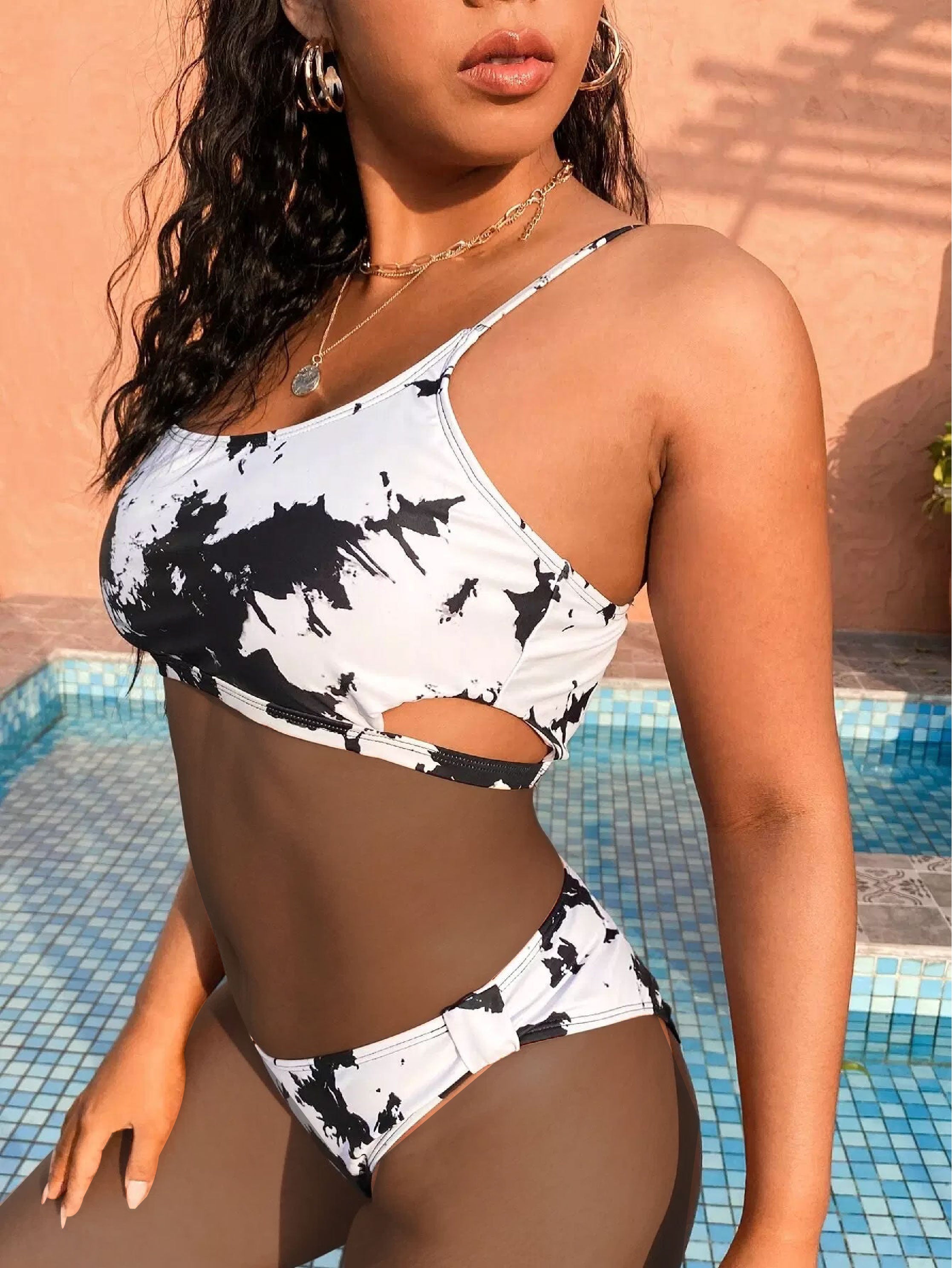 بدلة سباحة بيكيني مصبوغ بربطة عنق زائد