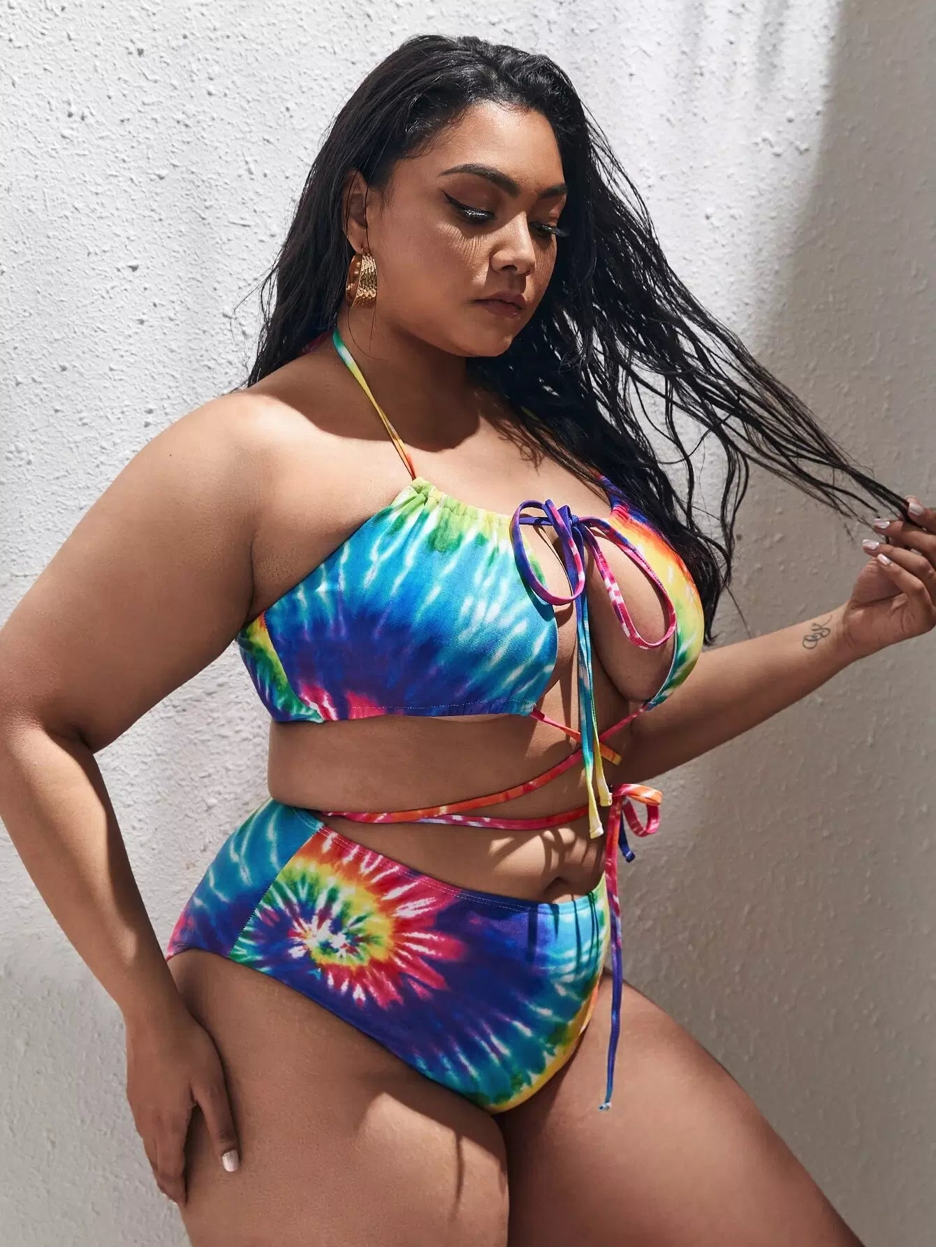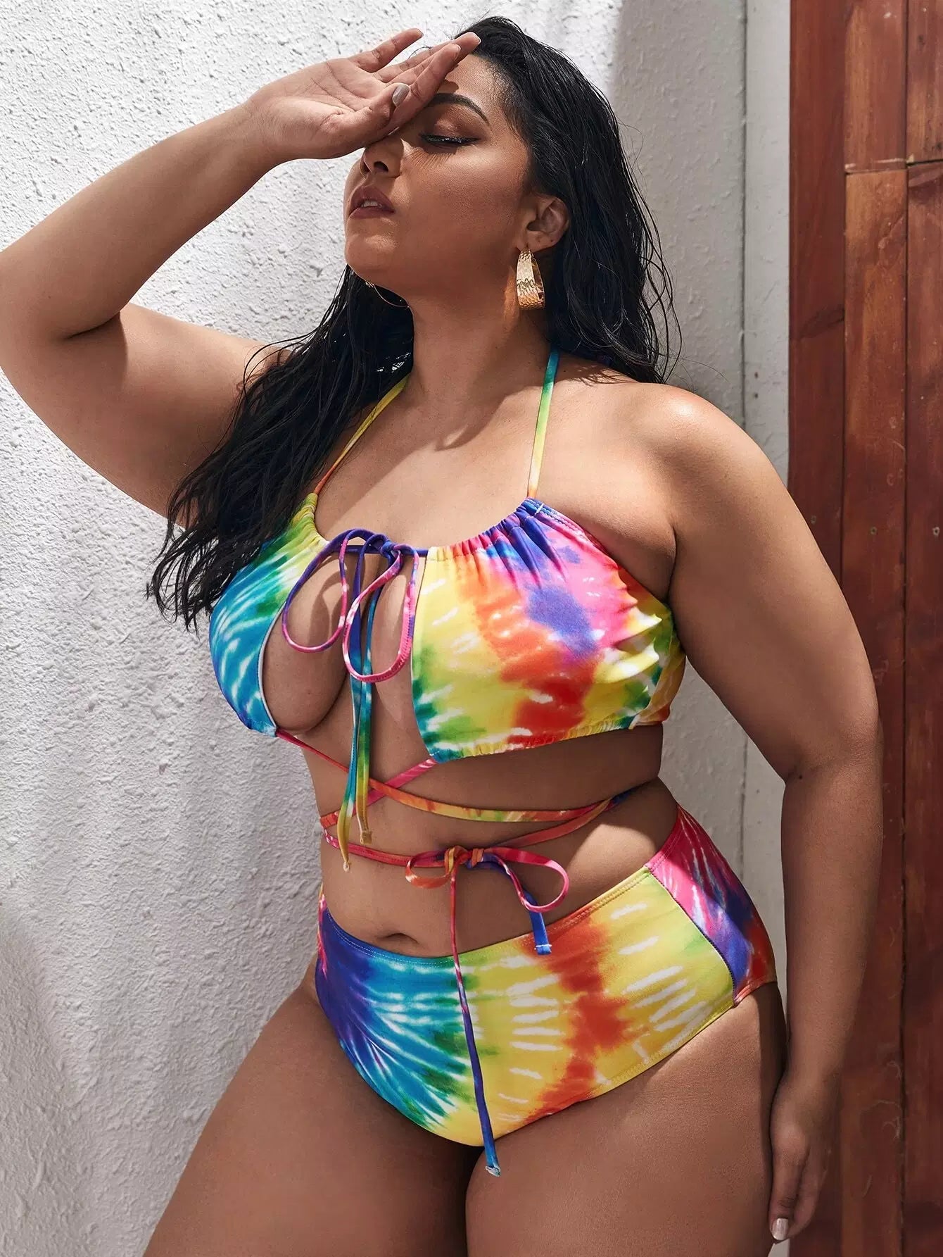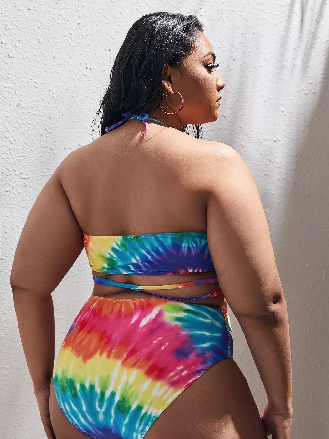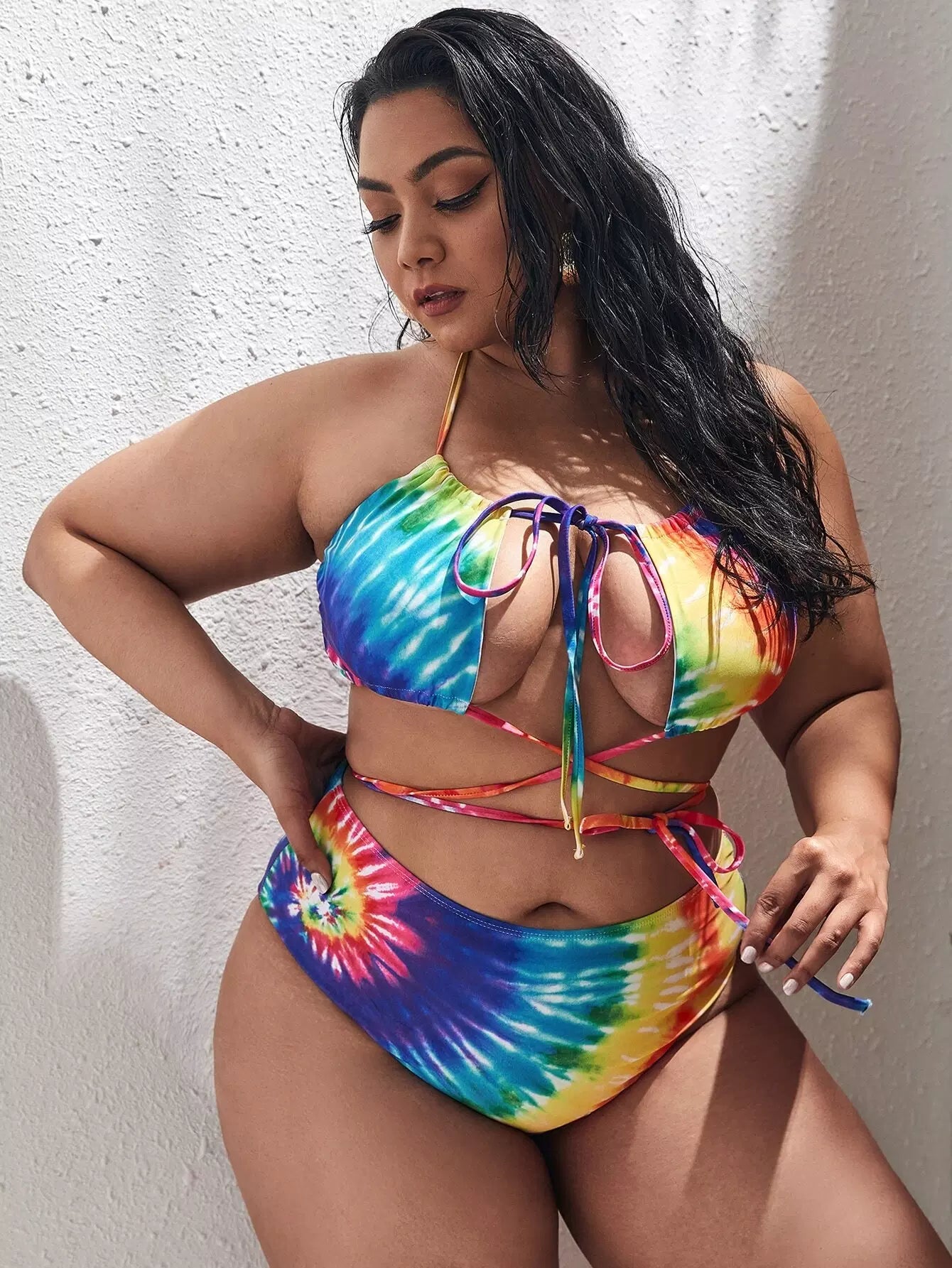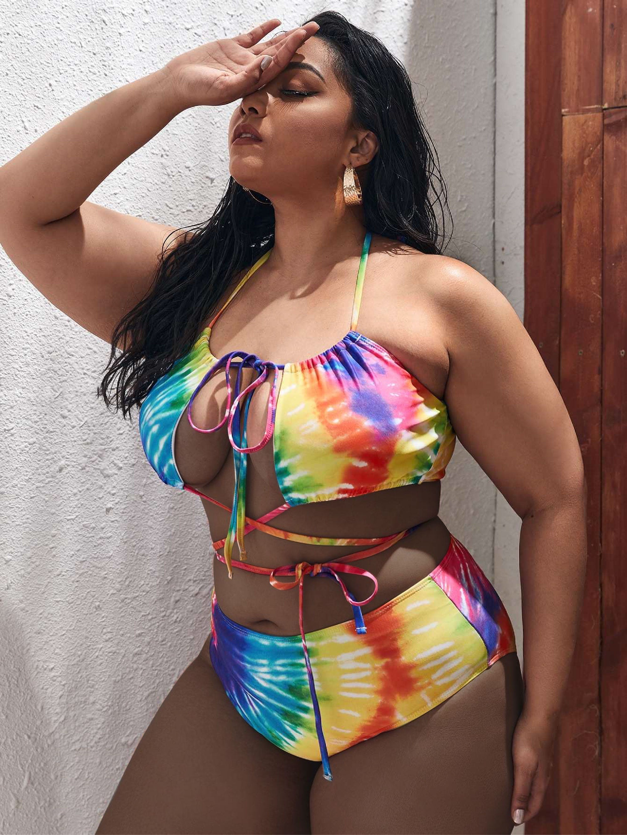 نحيف - مقاس كبير ملابس سباحة بكيني متقاطعة مصبوغة ومقطعة