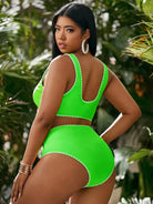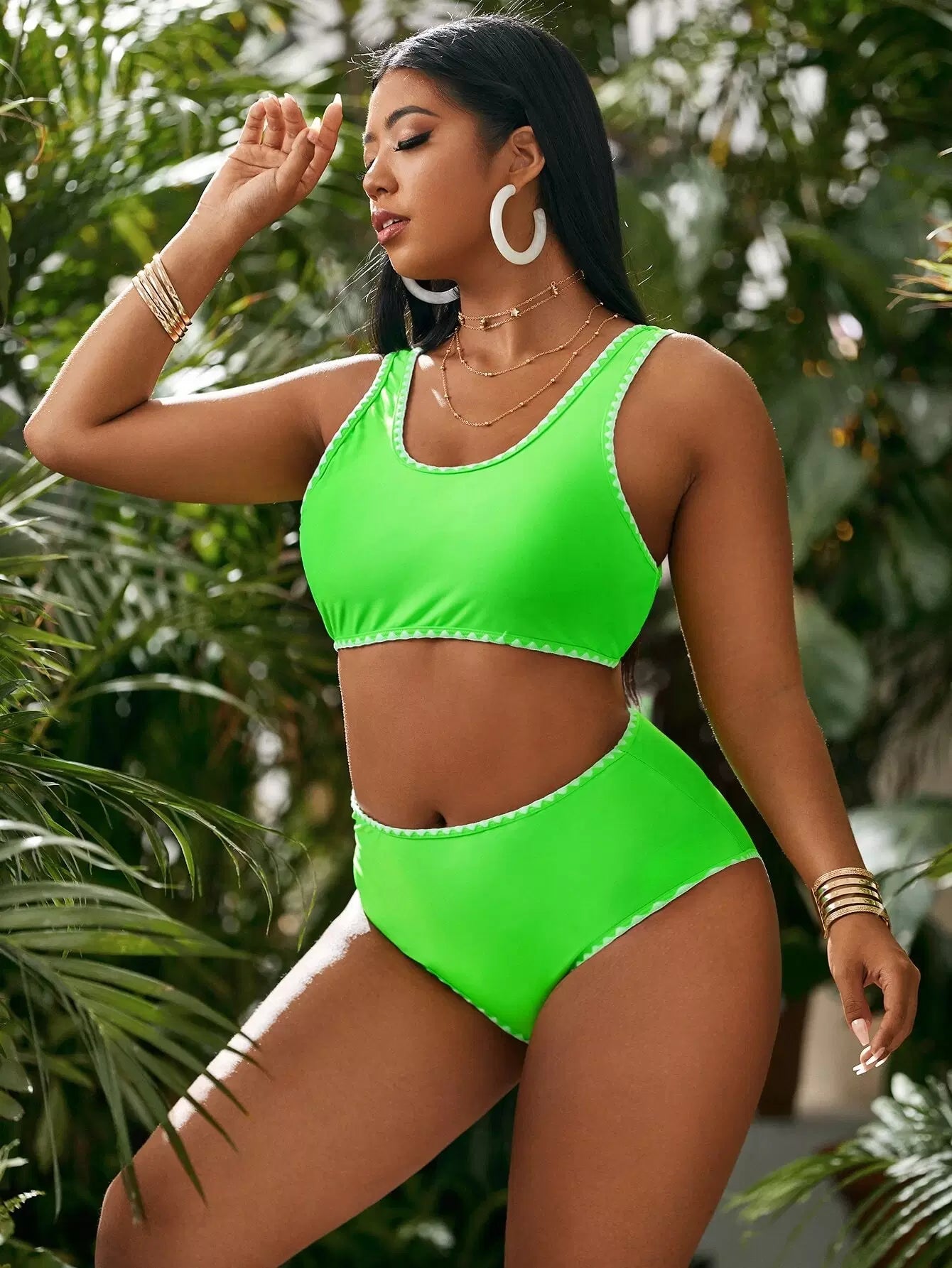 بدلة سباحة بيكيني عالي الخصر بغرزة بلس ويب ستريتش
