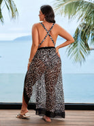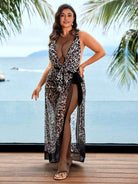 ملابس سباحة نسائية مقاس كبير من Swim Lushoire مكونة من قطعتين بطبعة جلد الفهد وفتحة رقبة على شكل حرف V عميقة ورباط على الخصر مع تنورة لقضاء عطلة صيفية على الشاطئ