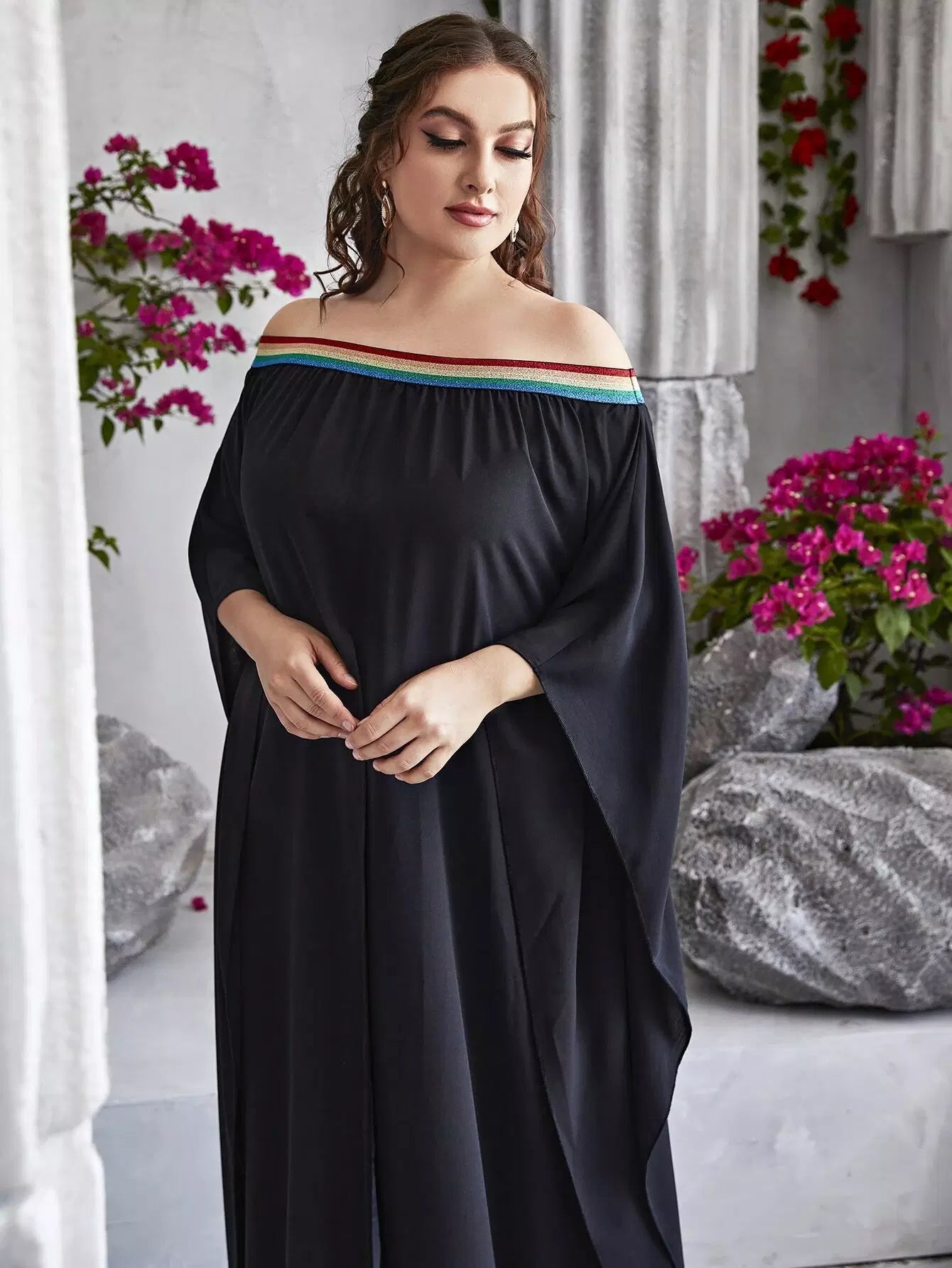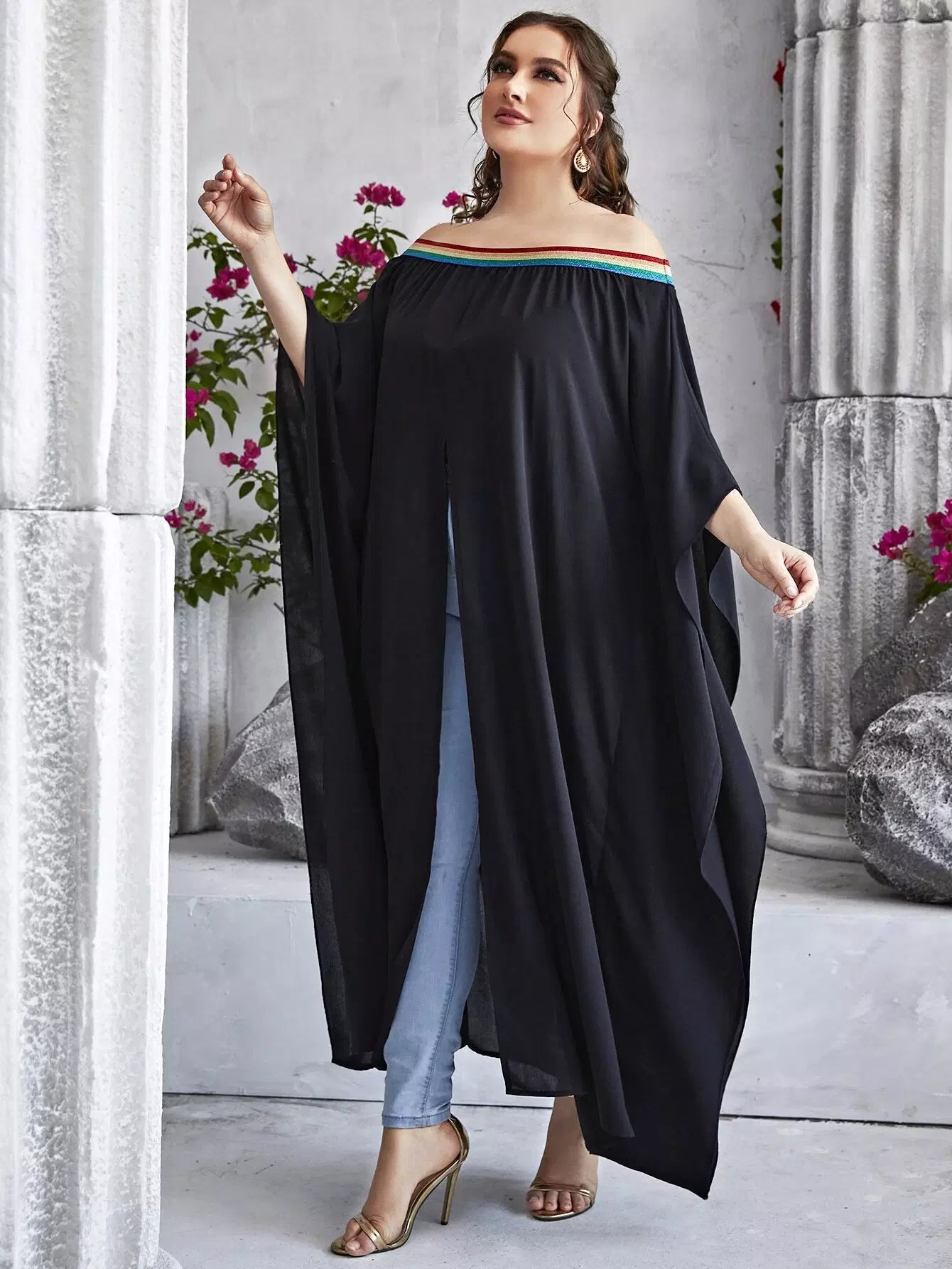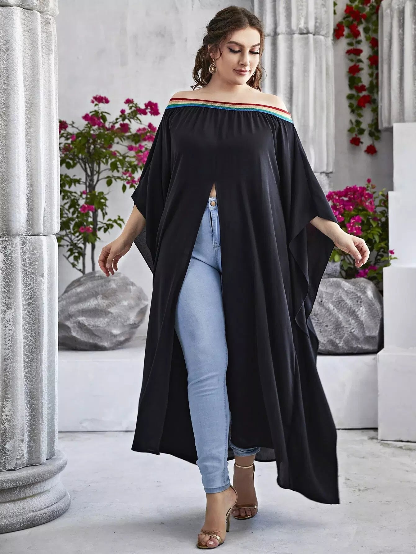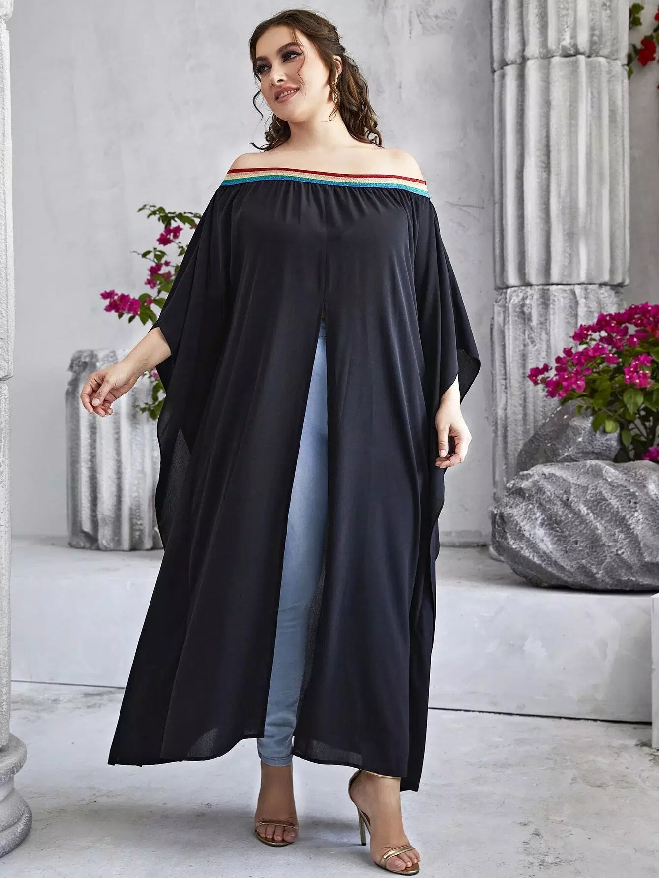 بلس بلون مغاير بفتحة أمامية بشق بلون مغاير من الأمام بدون أكتاف