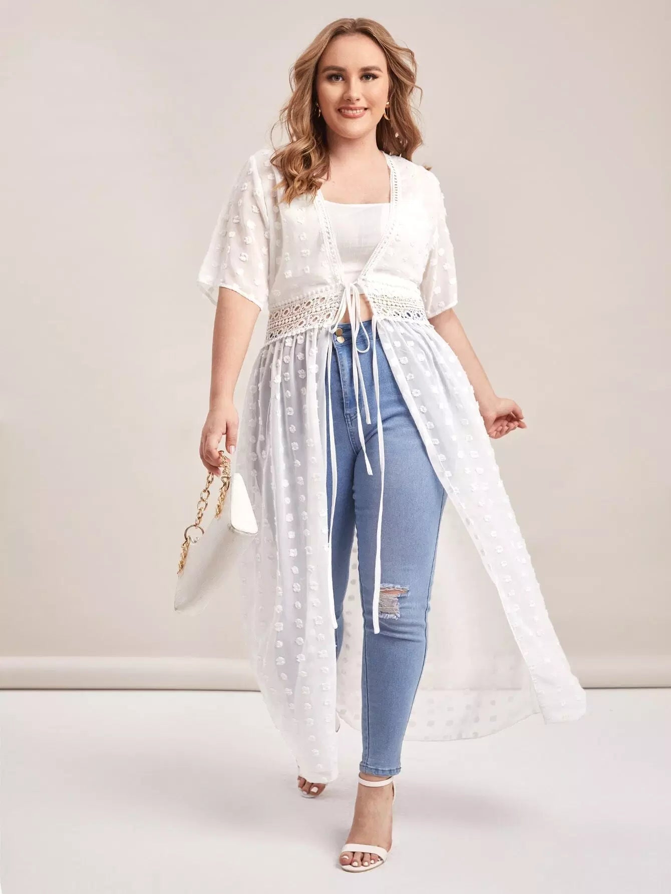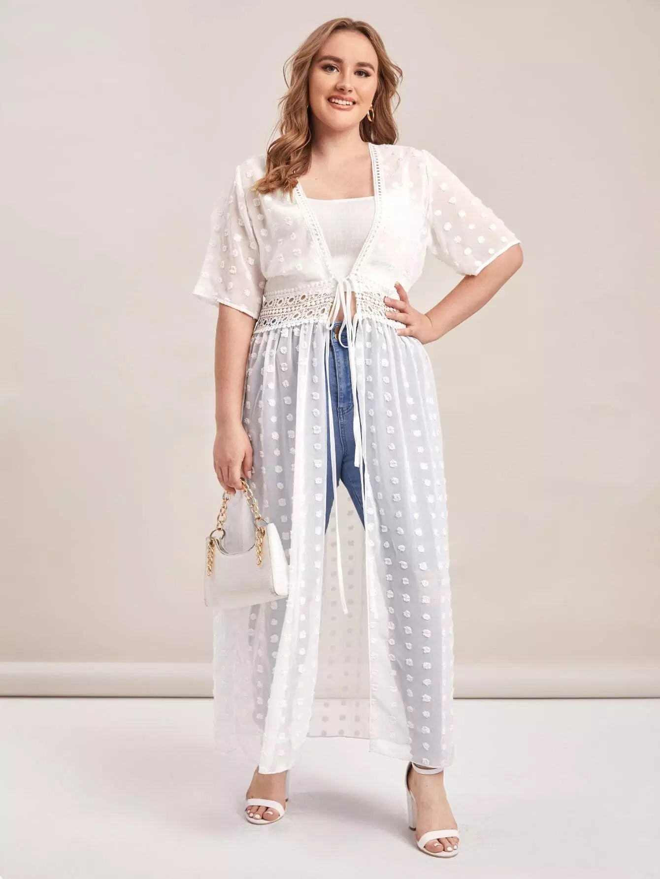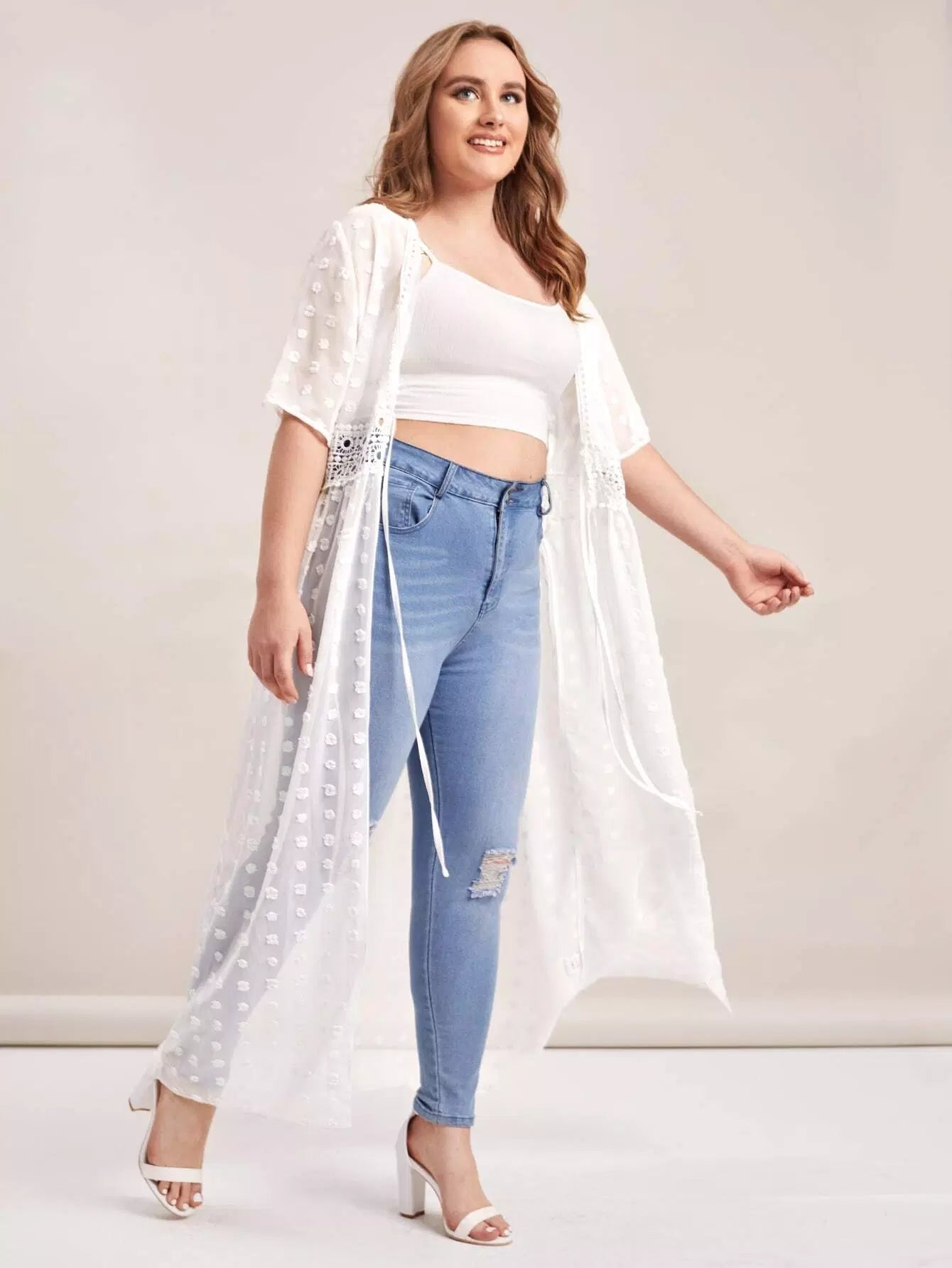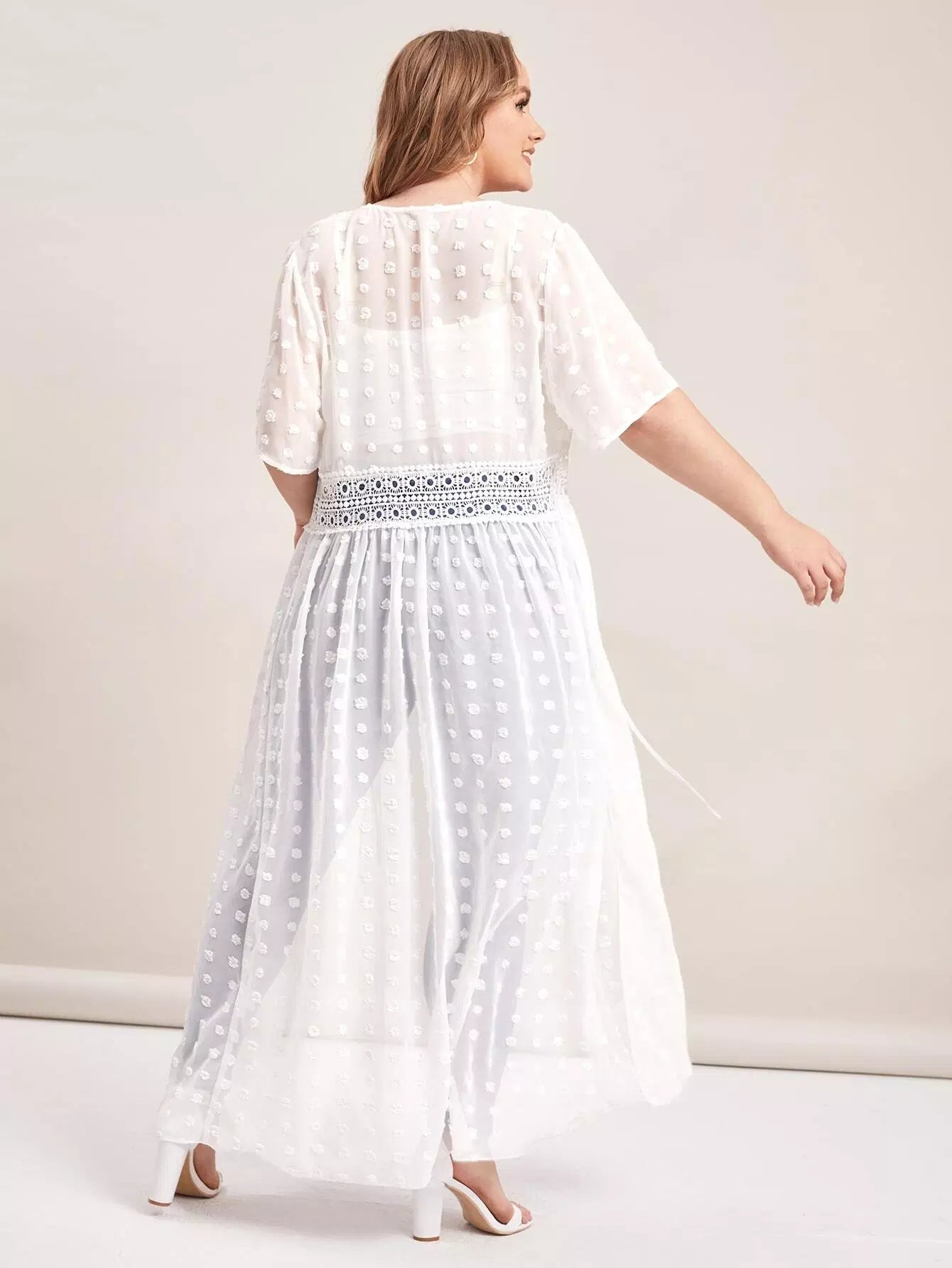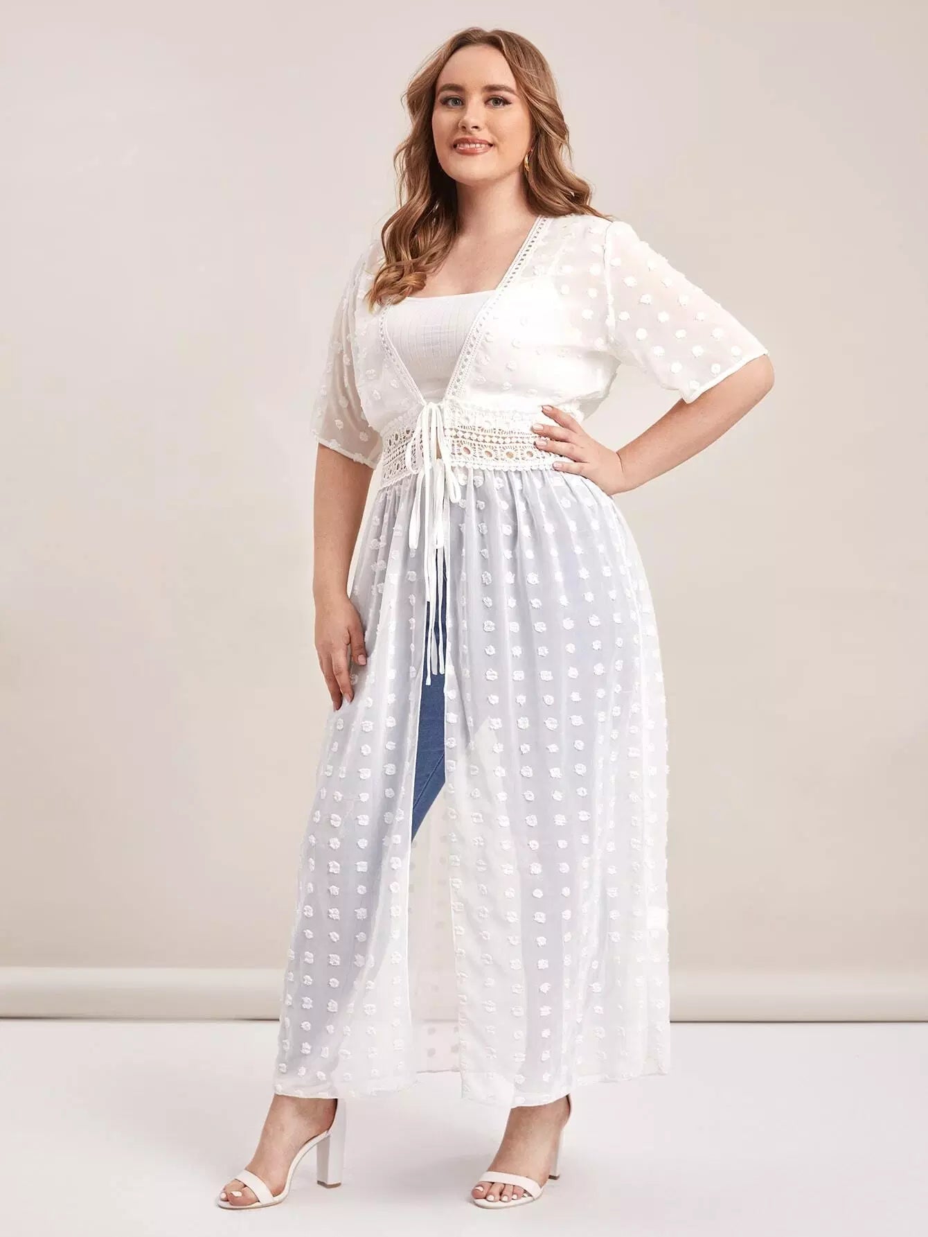 كيمونو سويس دوت دوت دانتيل برباط من الدانتيل المخرّم