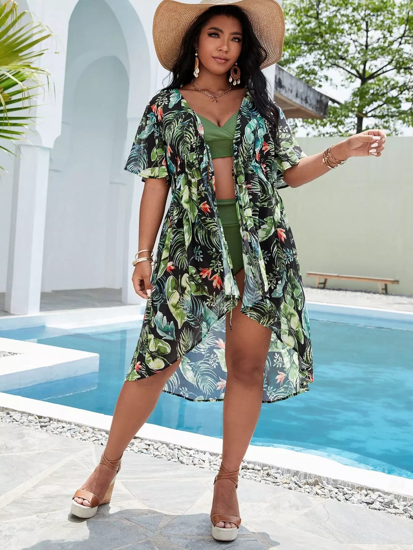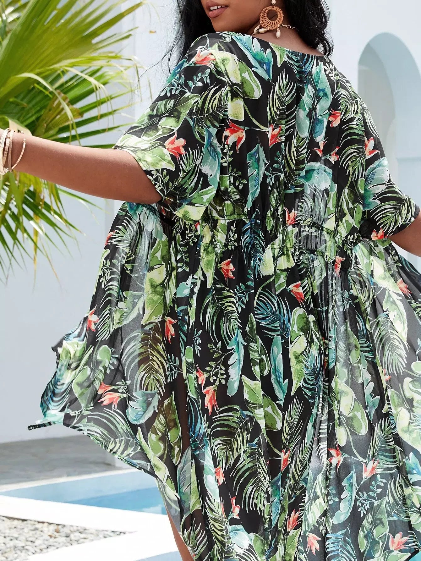 كيمونو مفتوح من الأمام بطبعة استوائية بلس