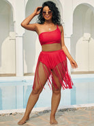 ملابس سباحة بيكيني بكتف واحد بحافة مهدبة زائد 3 عبوات
