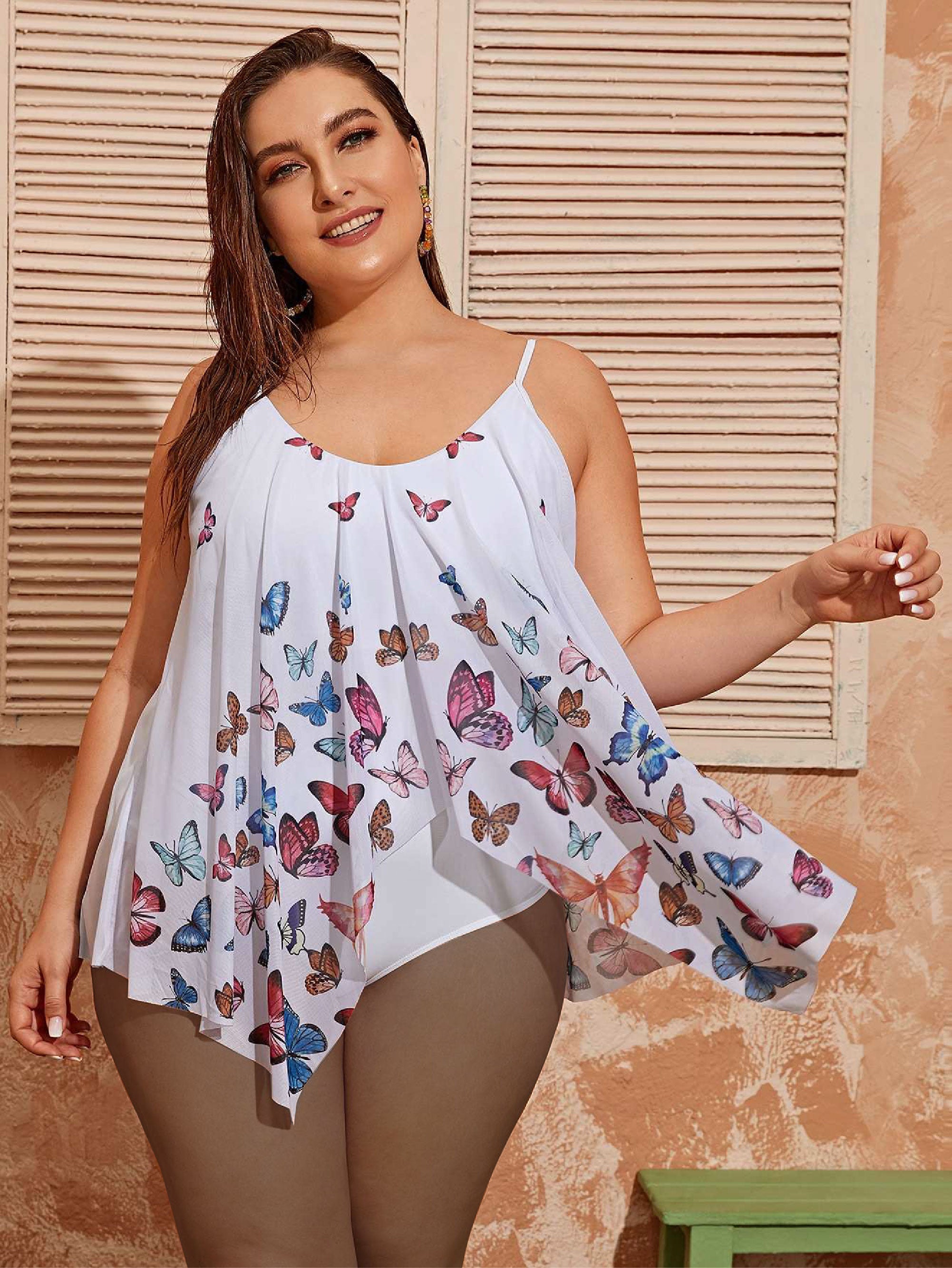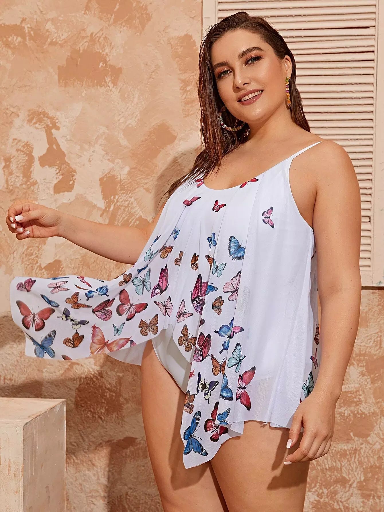 بدلة سباحة بقطعة واحدة بطبعة فراشة زائد