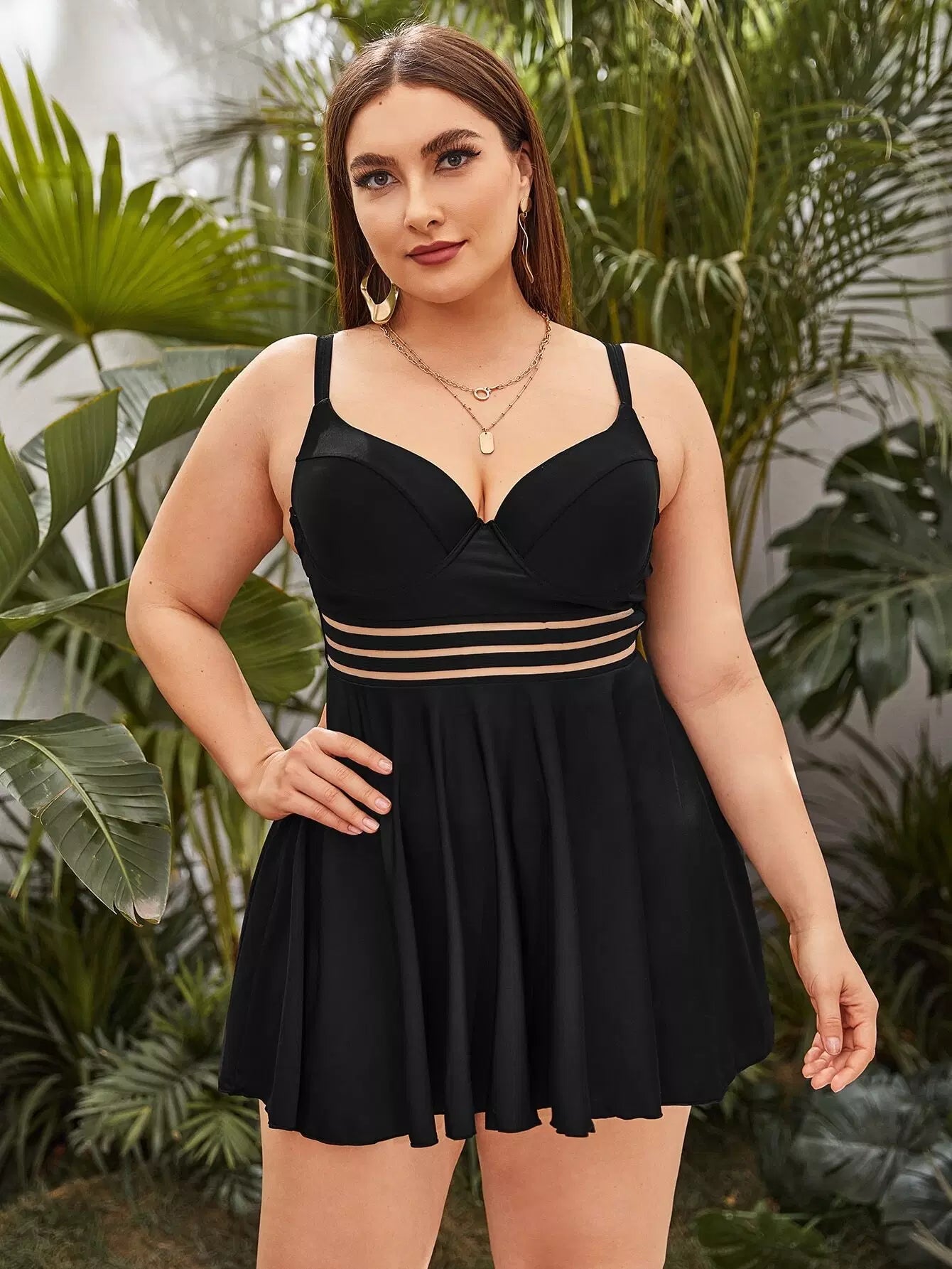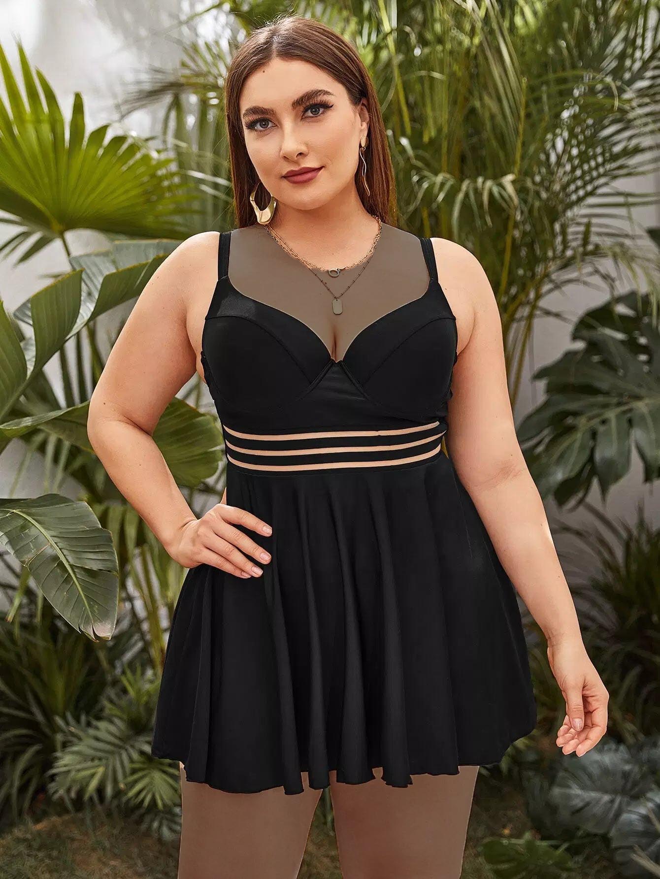 بدلة سباحة بيكيني بكشكش شبكي بإدخال شبكة زائد