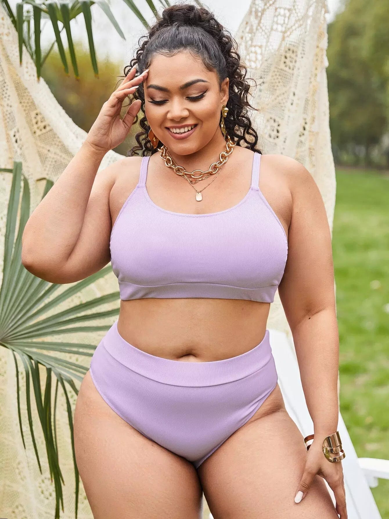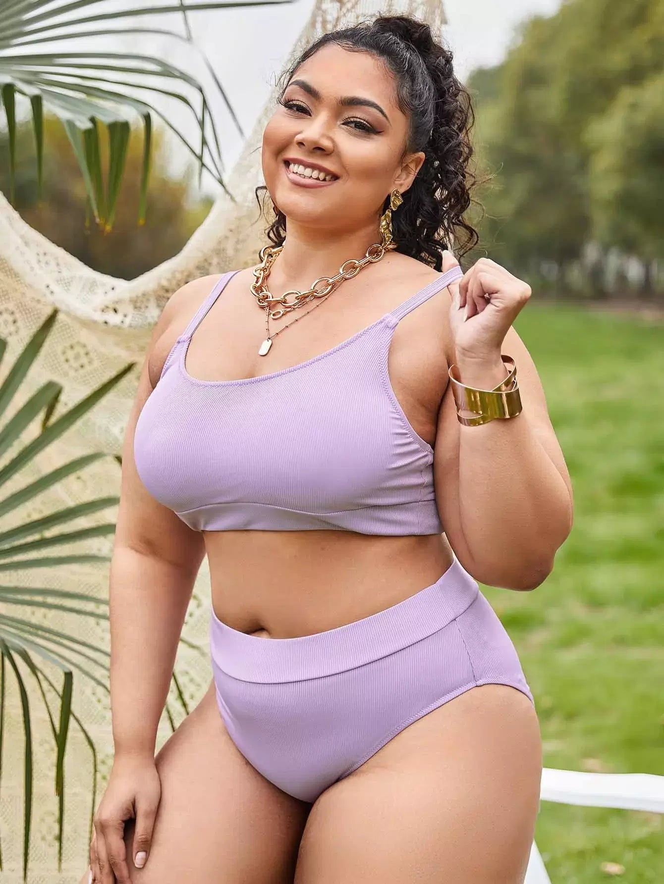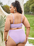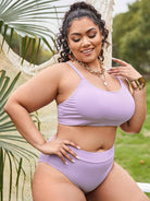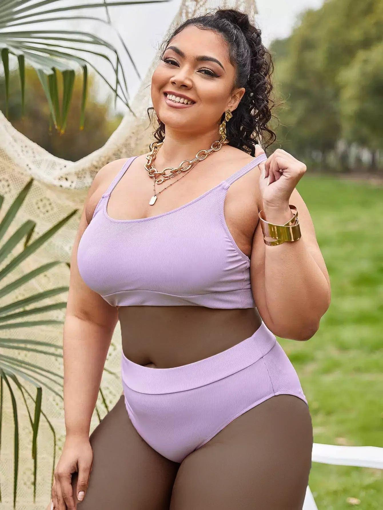 بدلة سباحة بيكيني سادة عالية الخصر سادة بلاس ضلع سادة