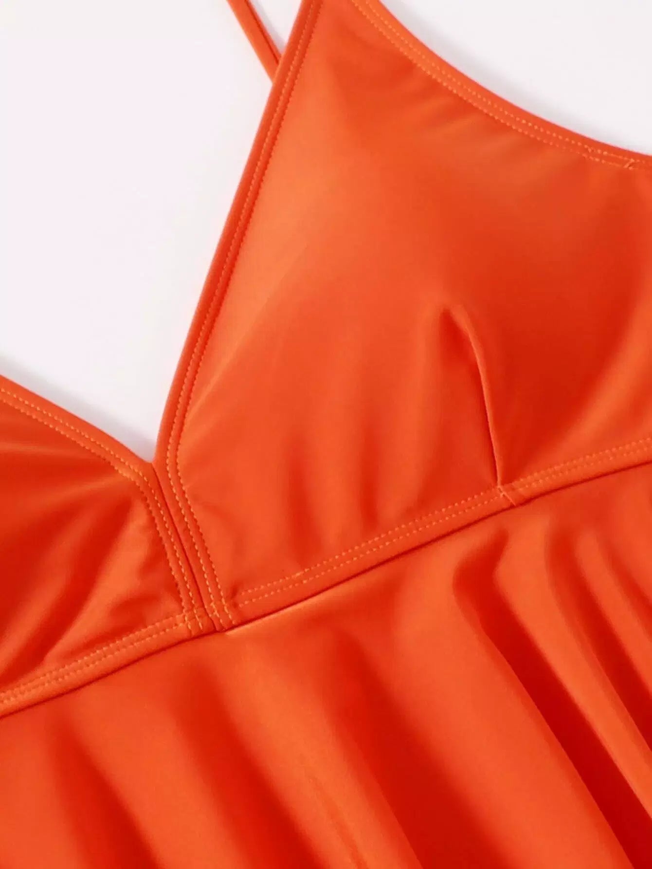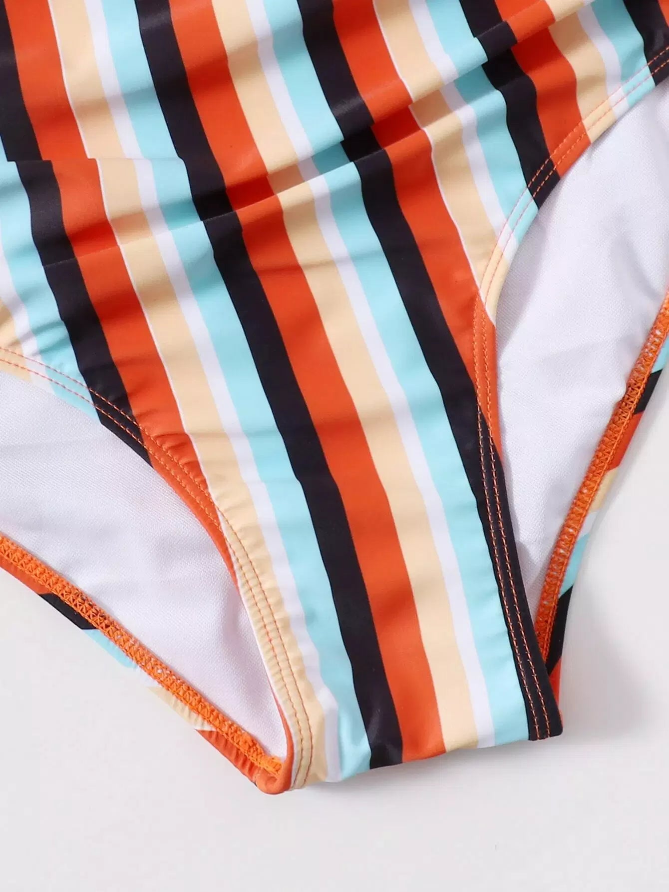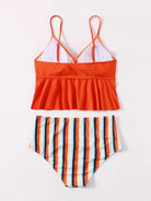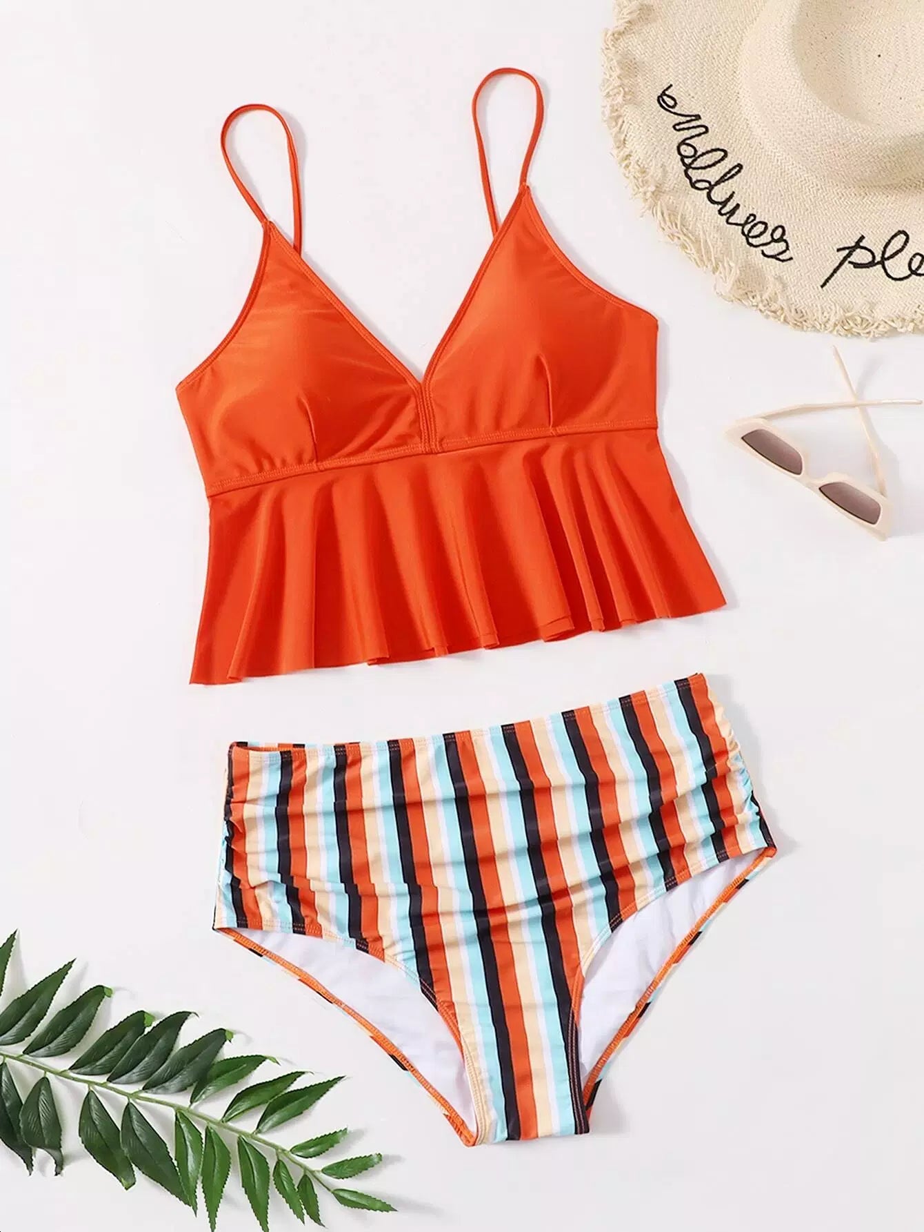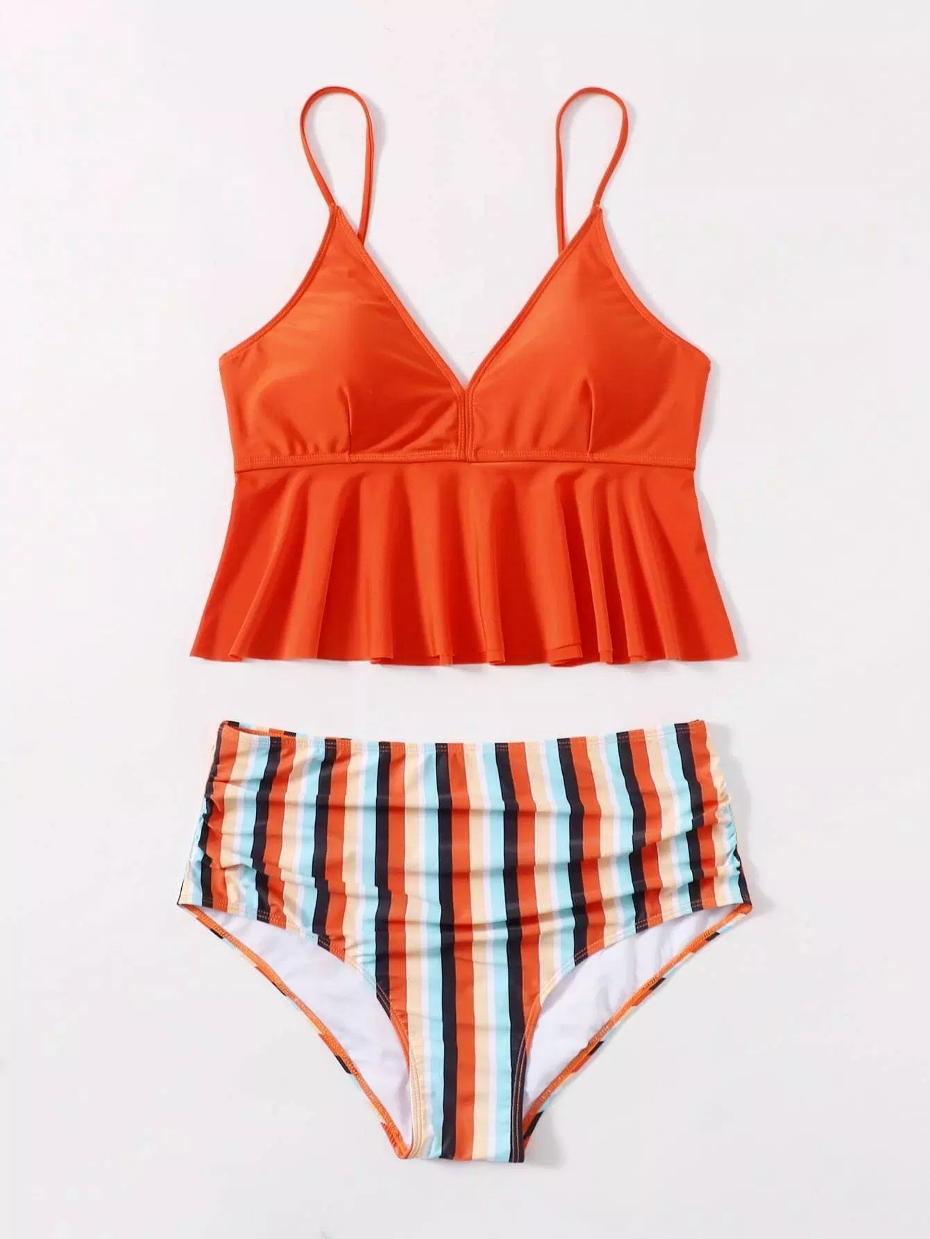 بدلة سباحة بيكيني بحافة مكشكشة مخططة زائد