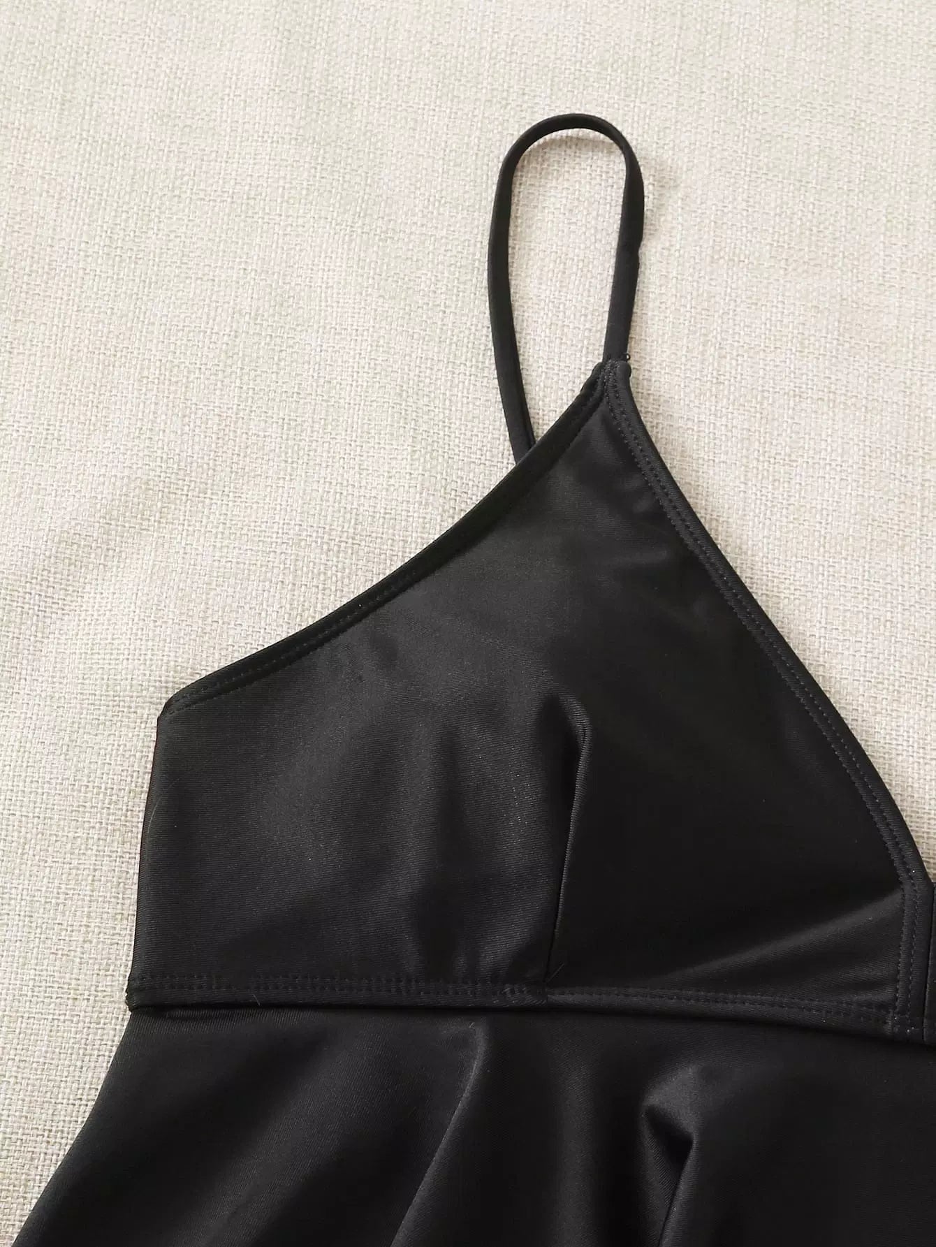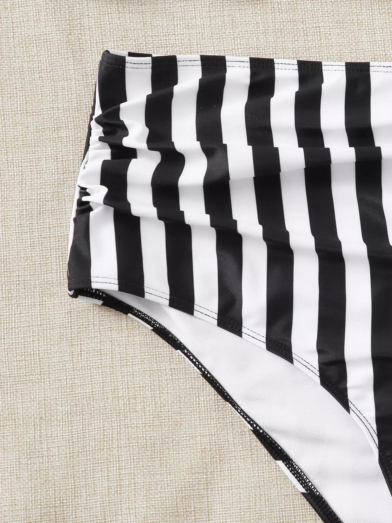 نحيف - مقاس كبير بدلة سباحة بكيني بحاشية مكشكشة مخططة بخصر عالٍ