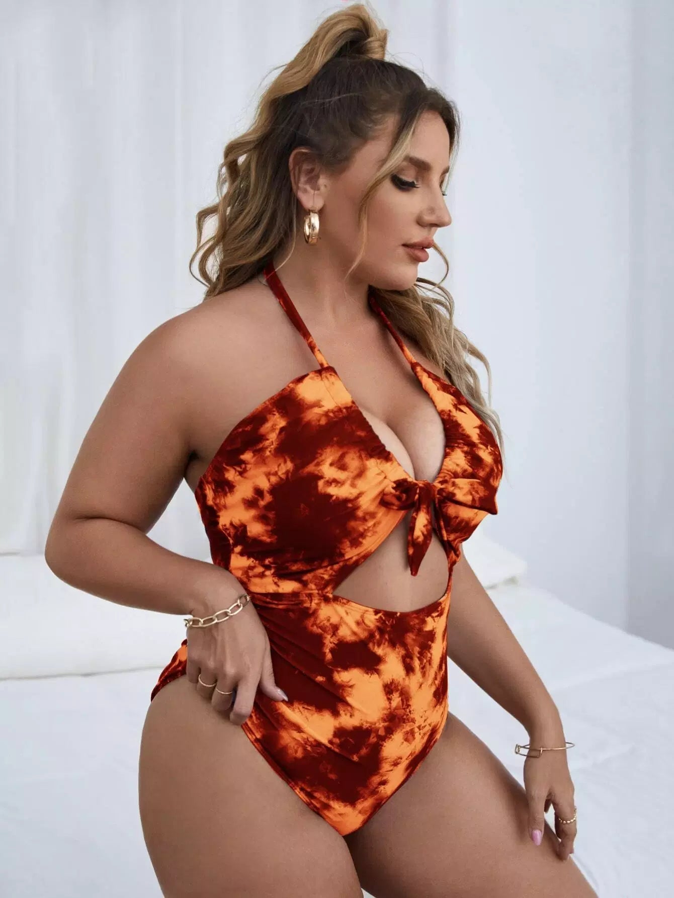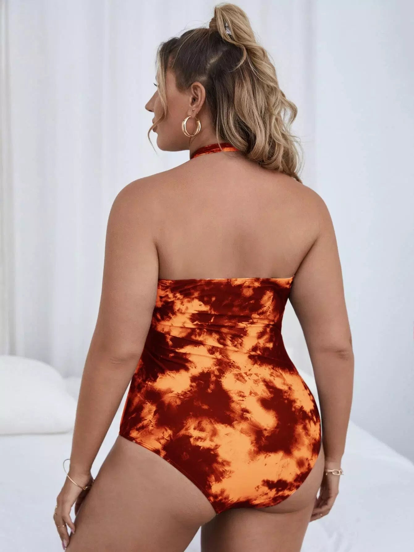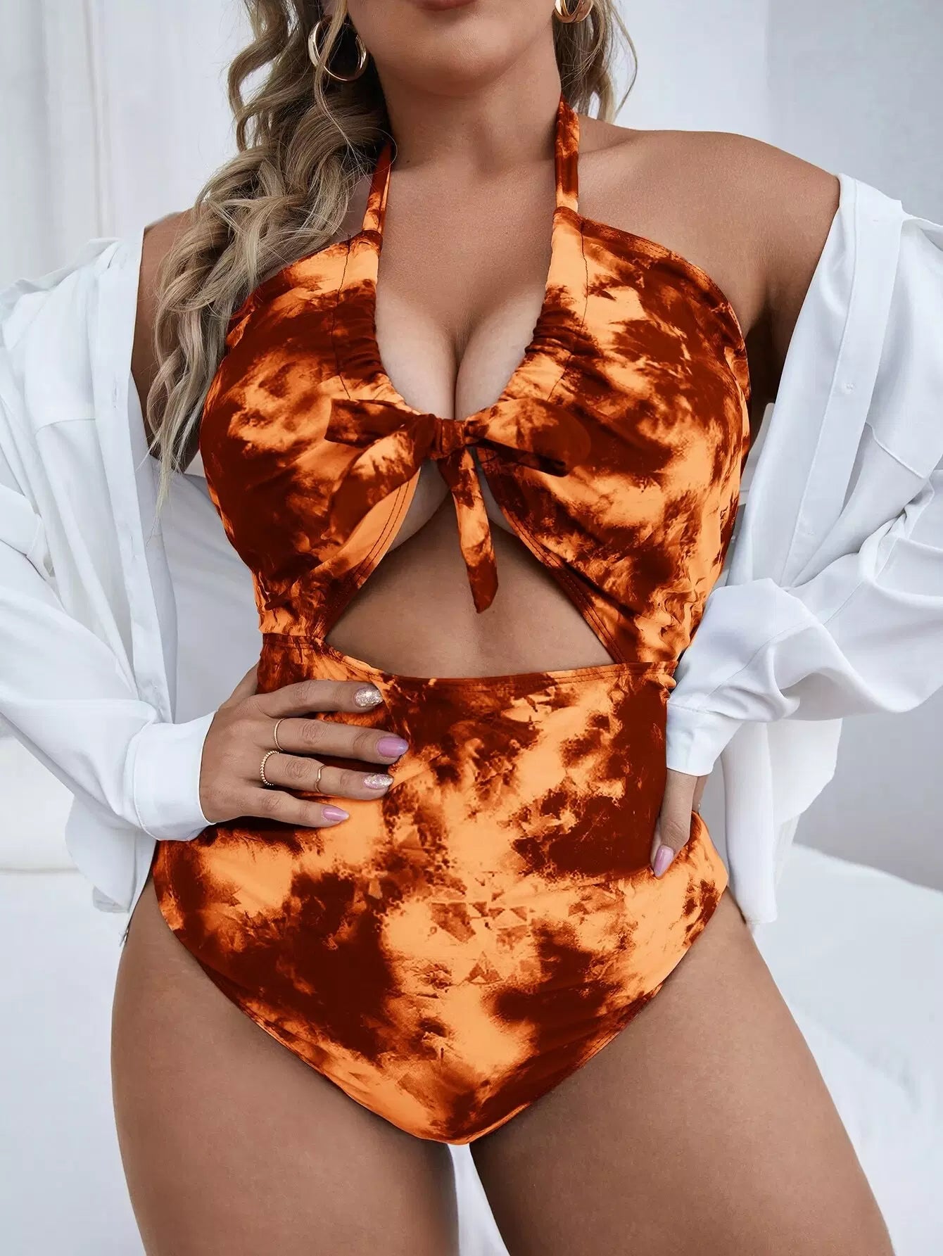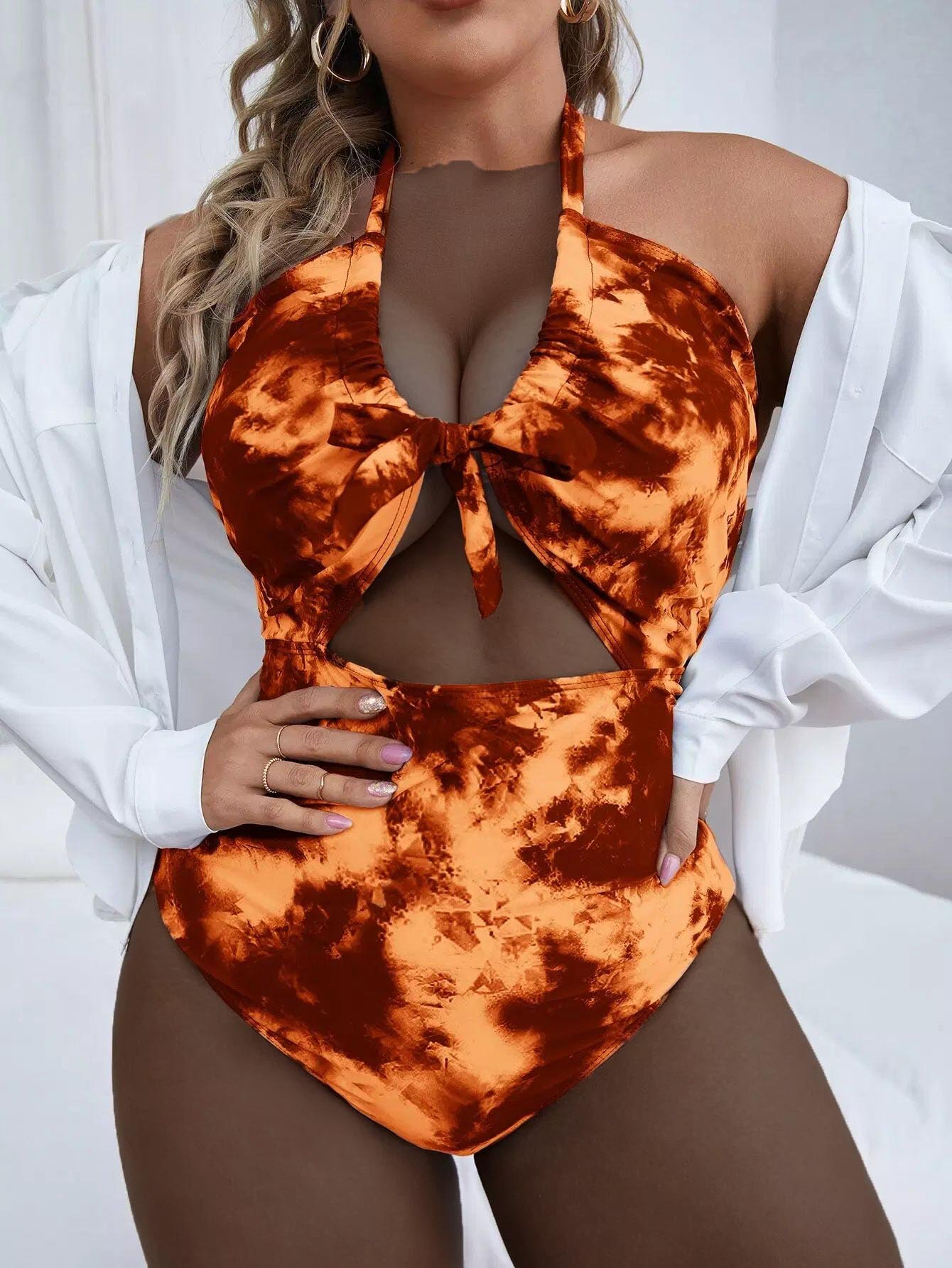 بدلة سباحة بقطعة واحدة من قطعة واحدة ذات عقدة أمامية مصبوغة بالصبغة الزائد
