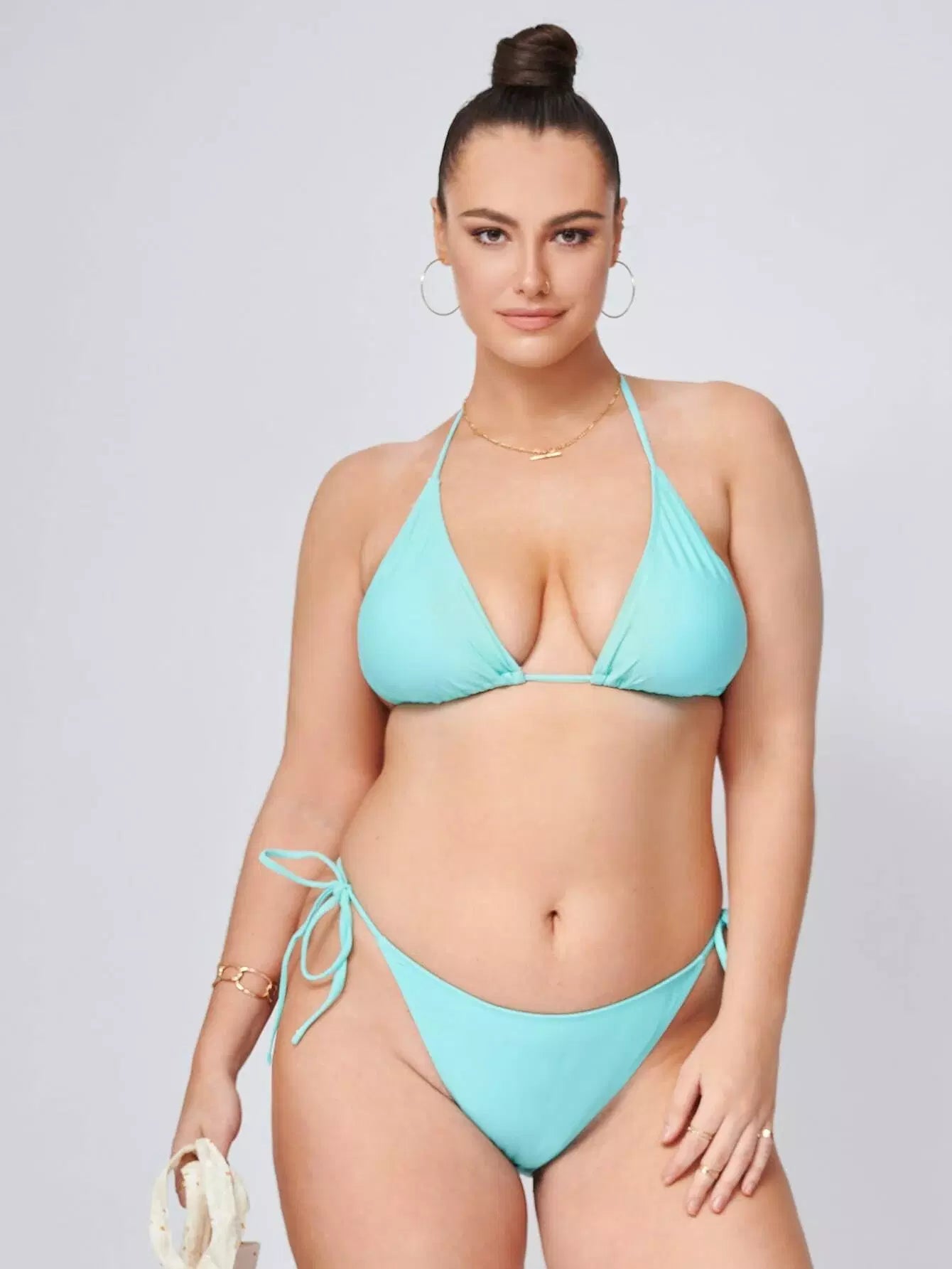 نحيف - مقاس كبير مثلث التعادل الجانب بيكيني ملابس السباحة