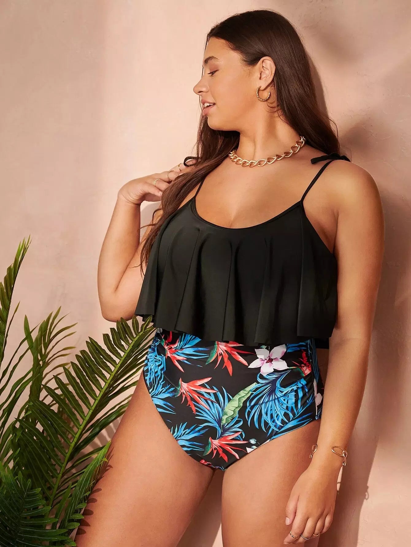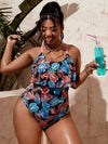 بدلة سباحة بقطعة واحدة مكشكشة استوائية زائد