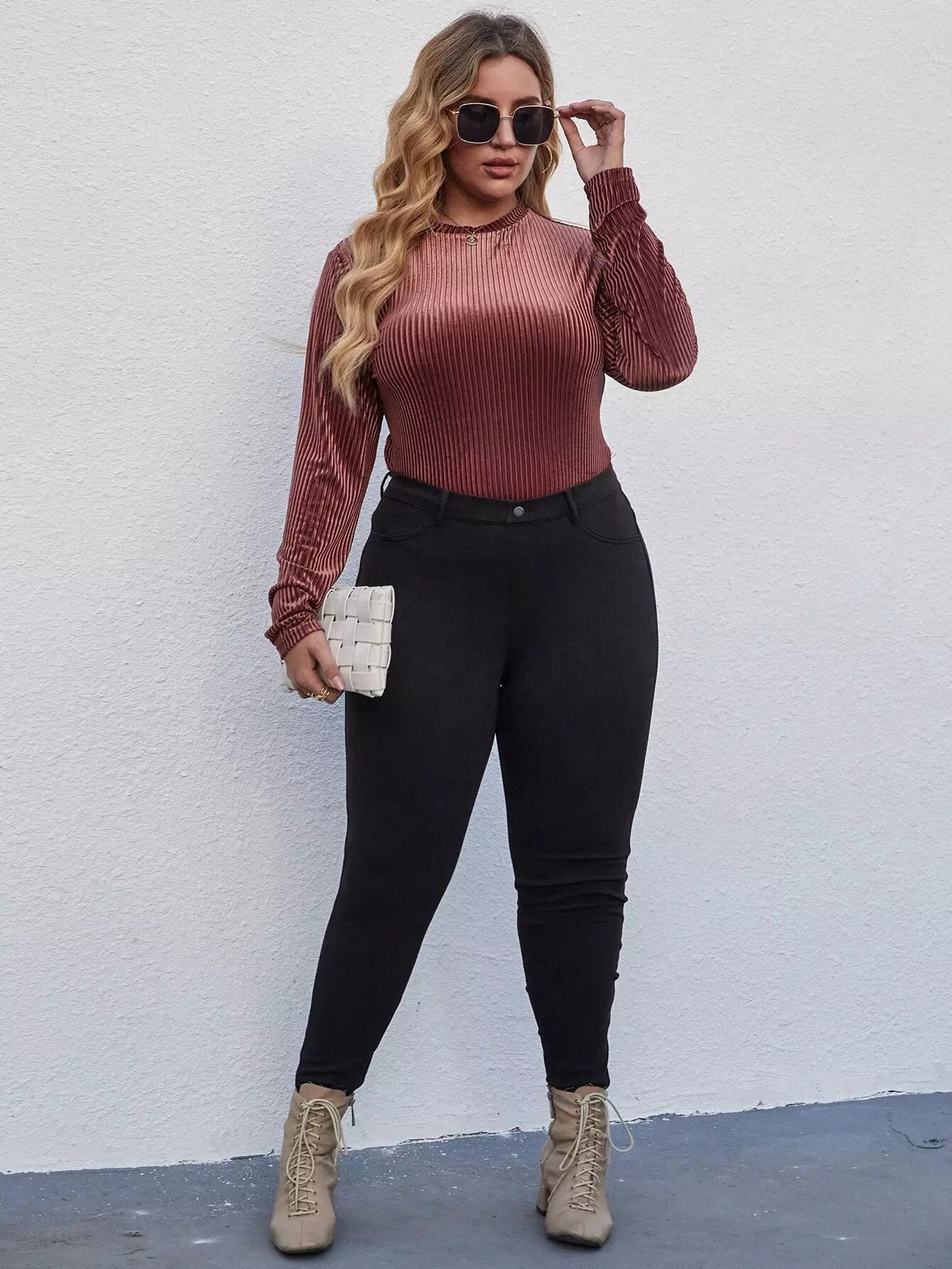نحيف - مقاس كبير بدلة مخملية متماسكة مضلعة