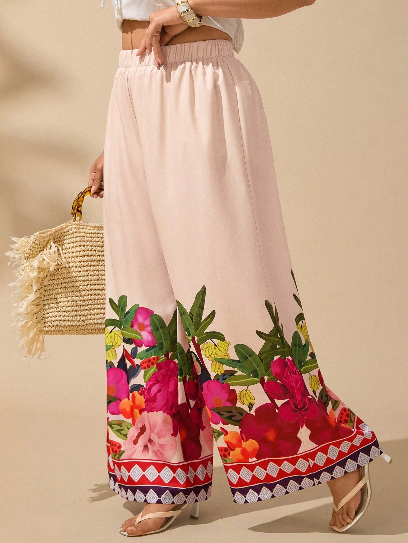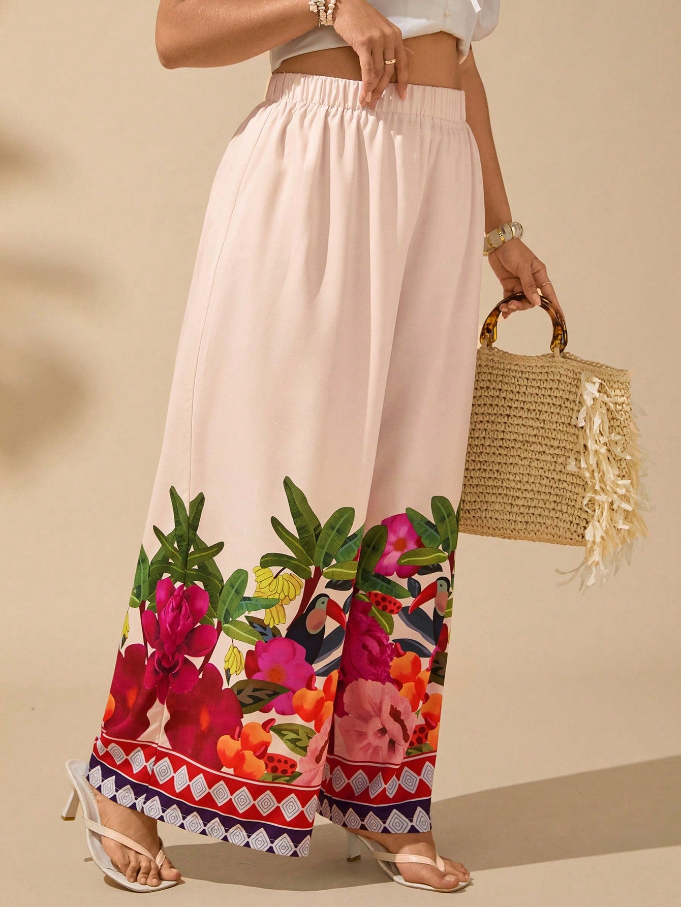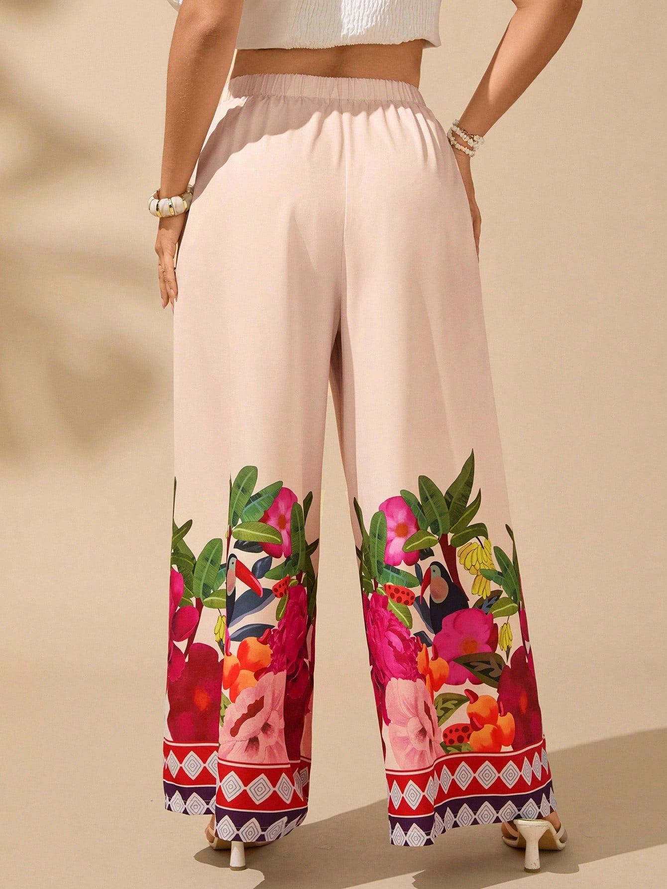 women Breezaya Flowers Birds Plus Size Wide Leg Pants