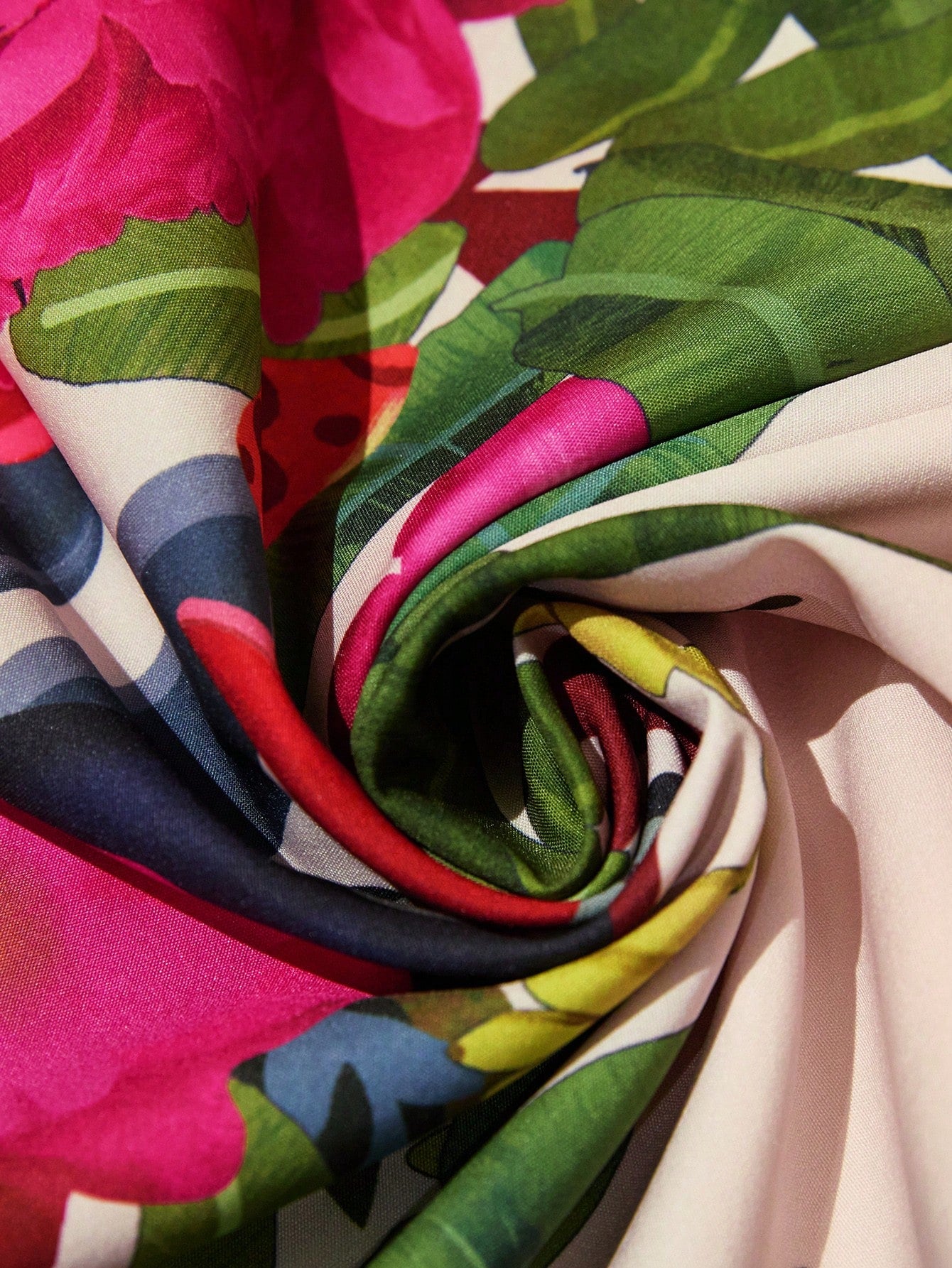 بنطلون واسع الساق بطبعة زهور وطيور من Breezaya مقاس كبير