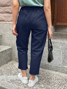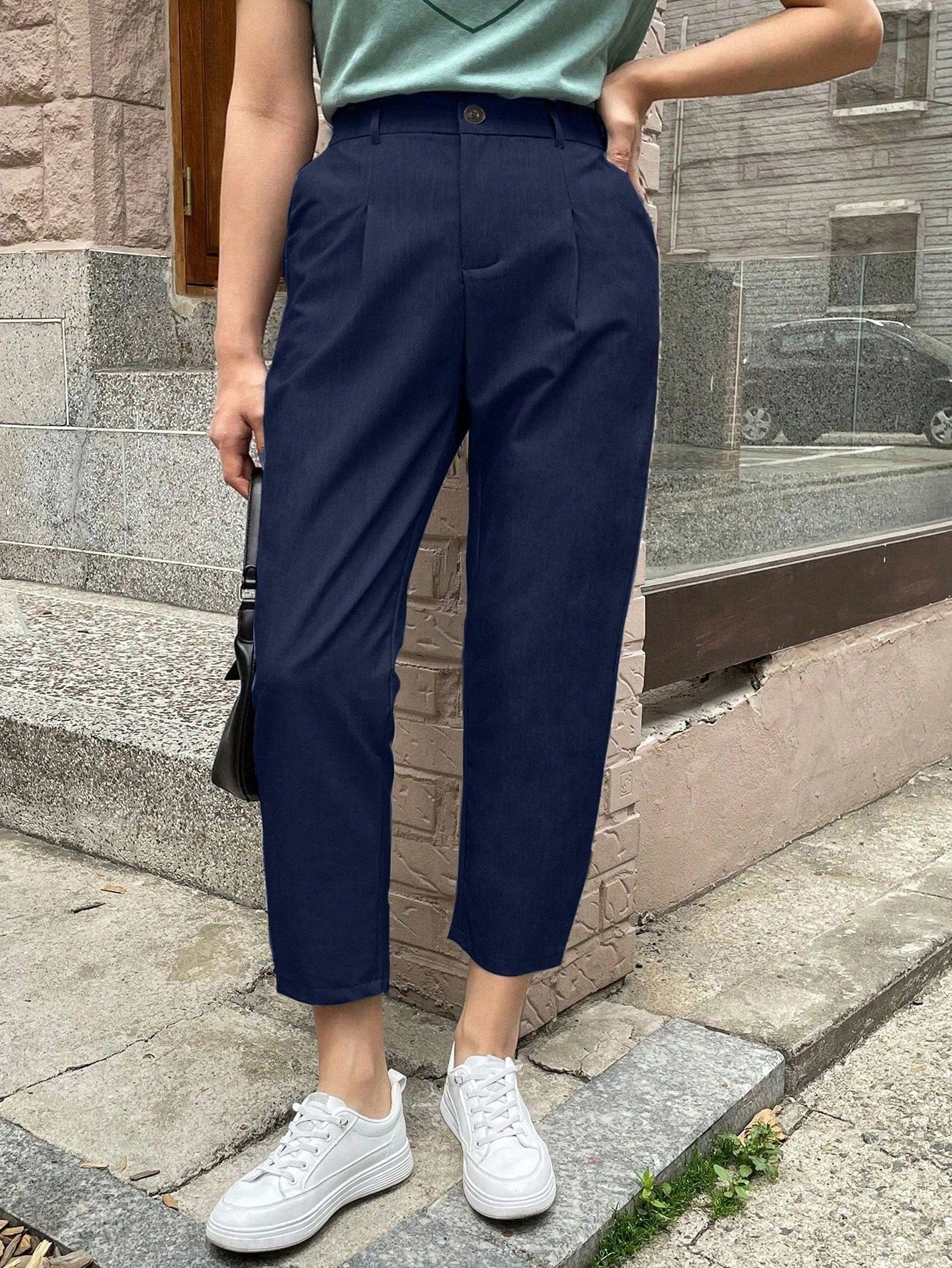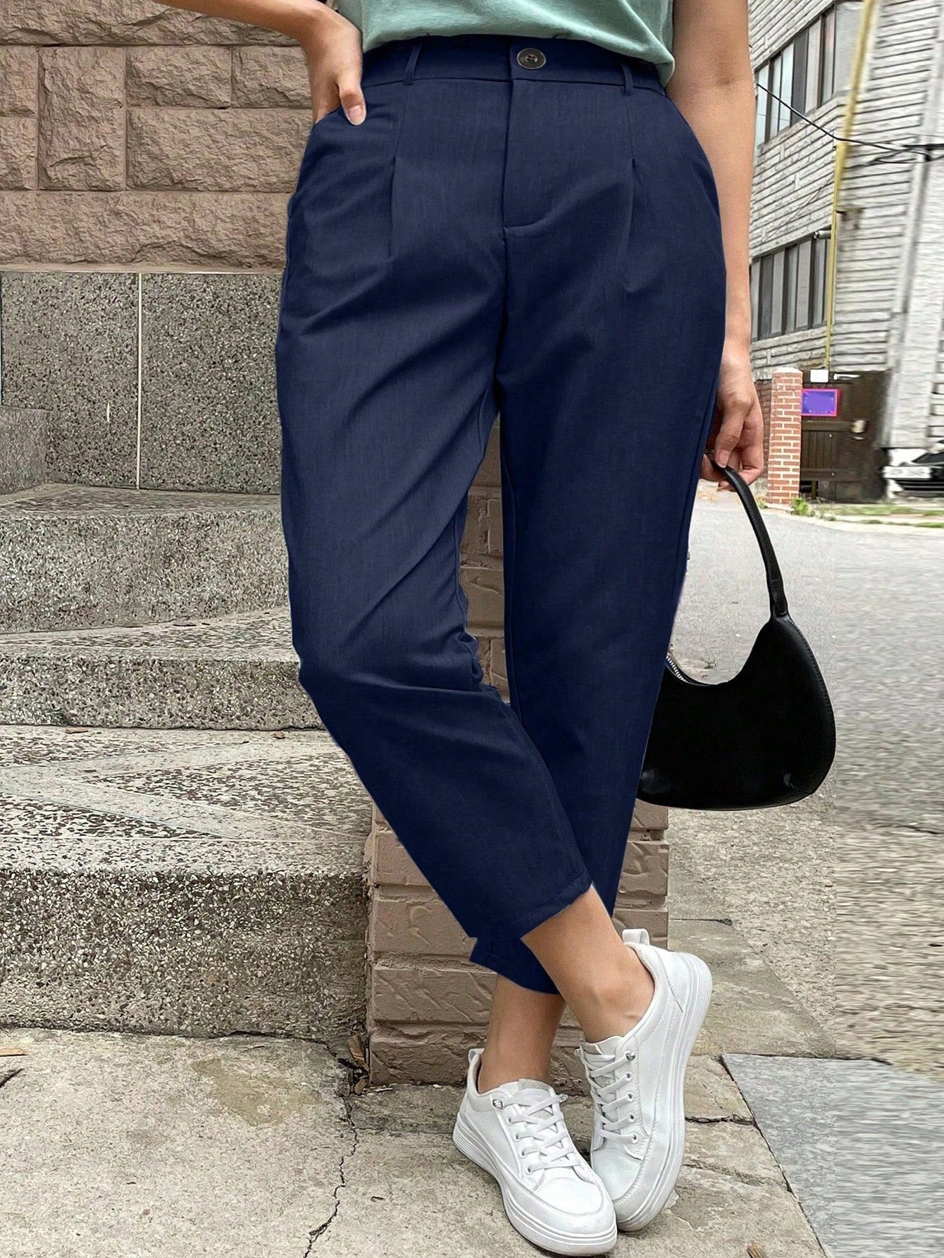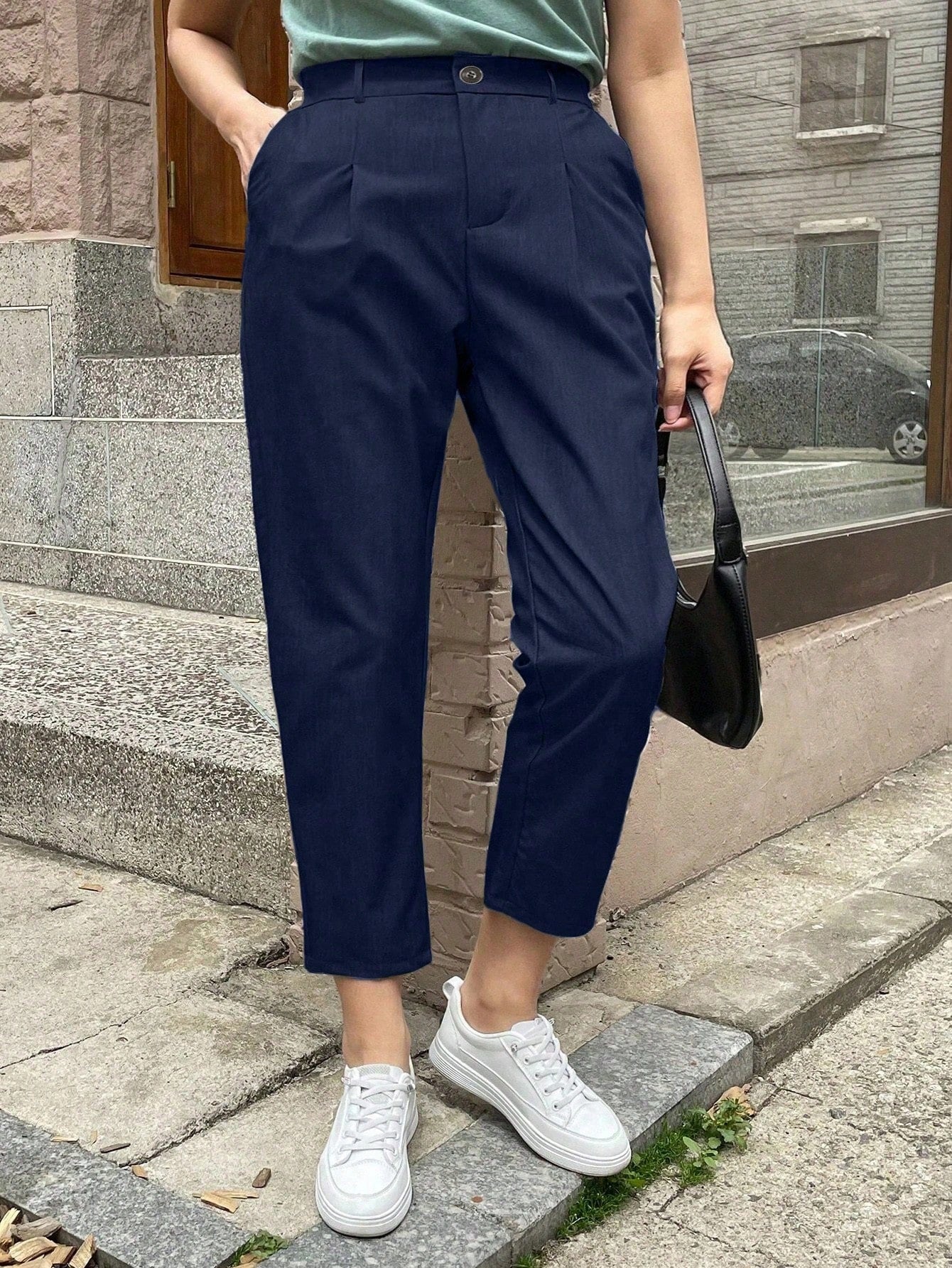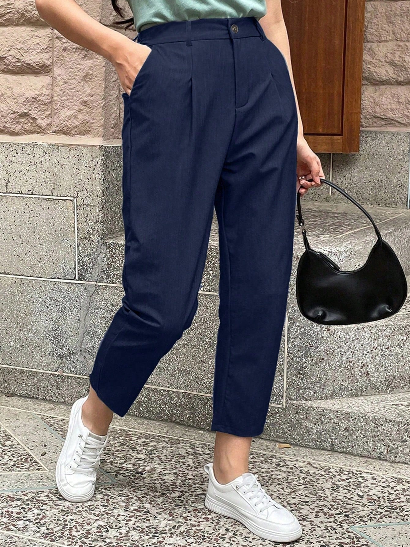 بنطلون كالفايا بلس قصير بجيوب مائلة، لون كحلي، بنطلون نسائي بخصر عالٍ
