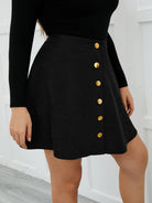 Celure Plus Size Front Button Flared Hem Casual Skirt