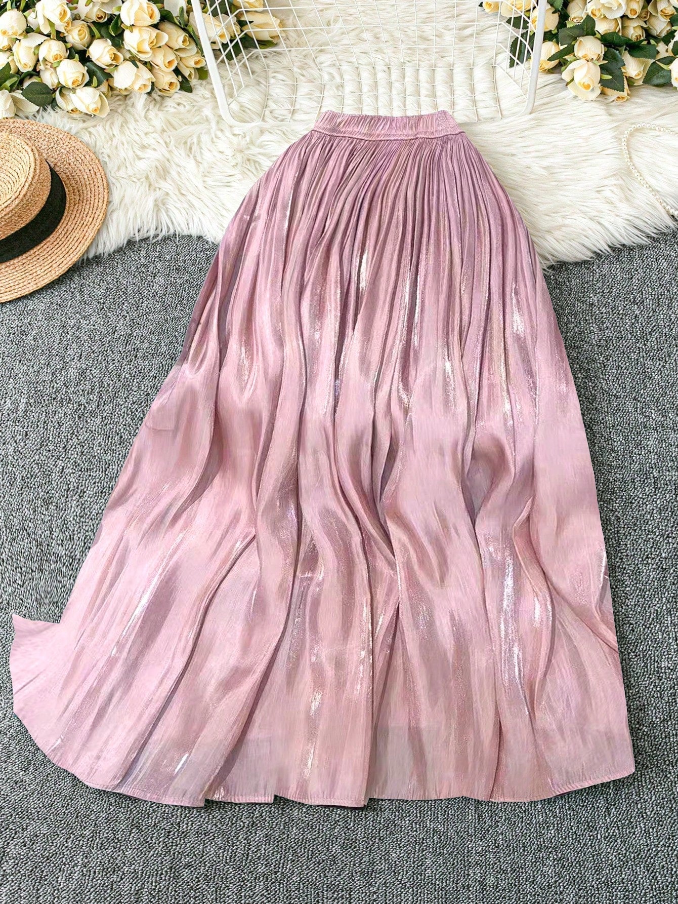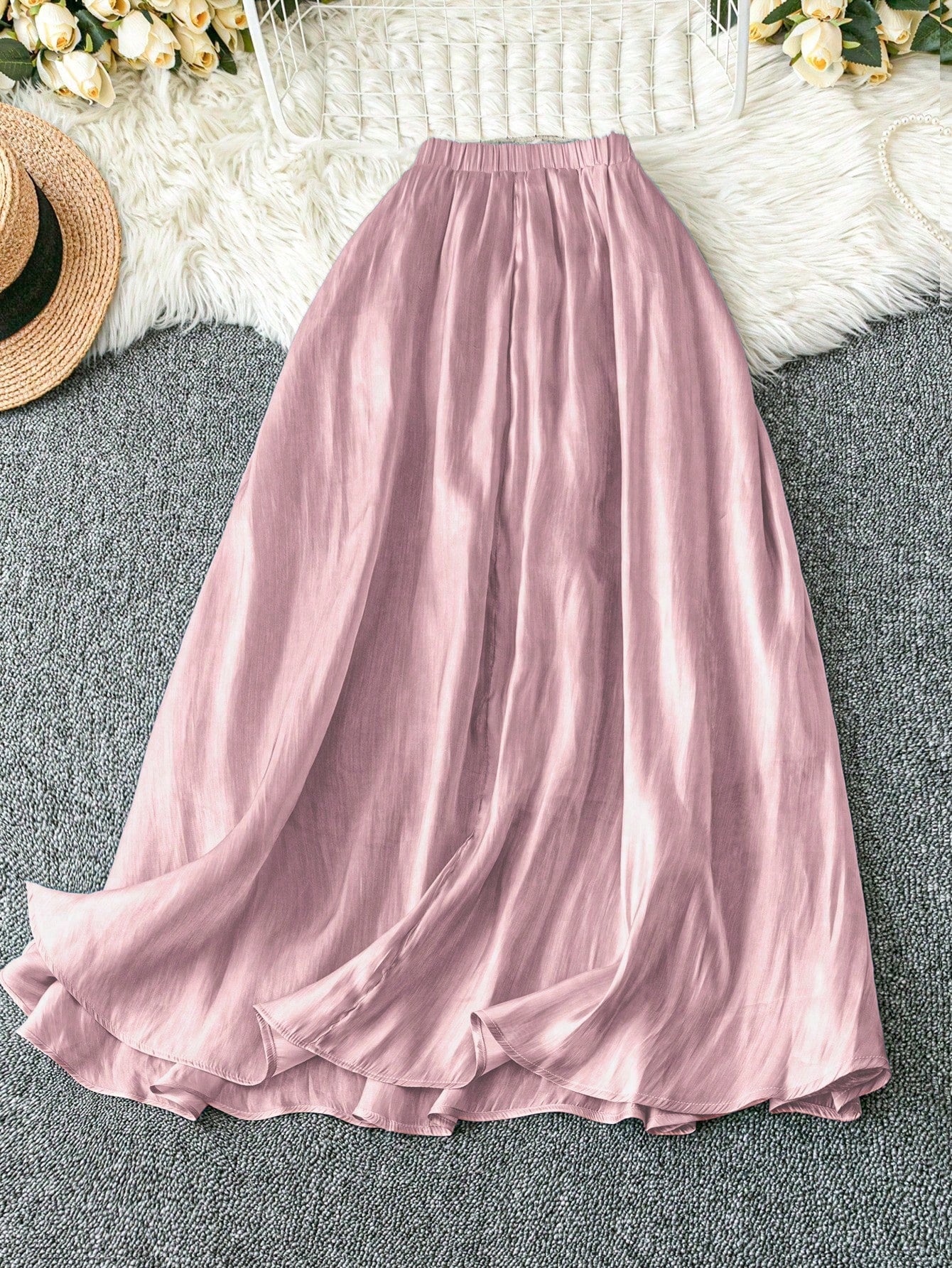 women DreamSkyne Romantic Date Plus Size Women Elegant Romantic Satin Waist A-Line Skirt