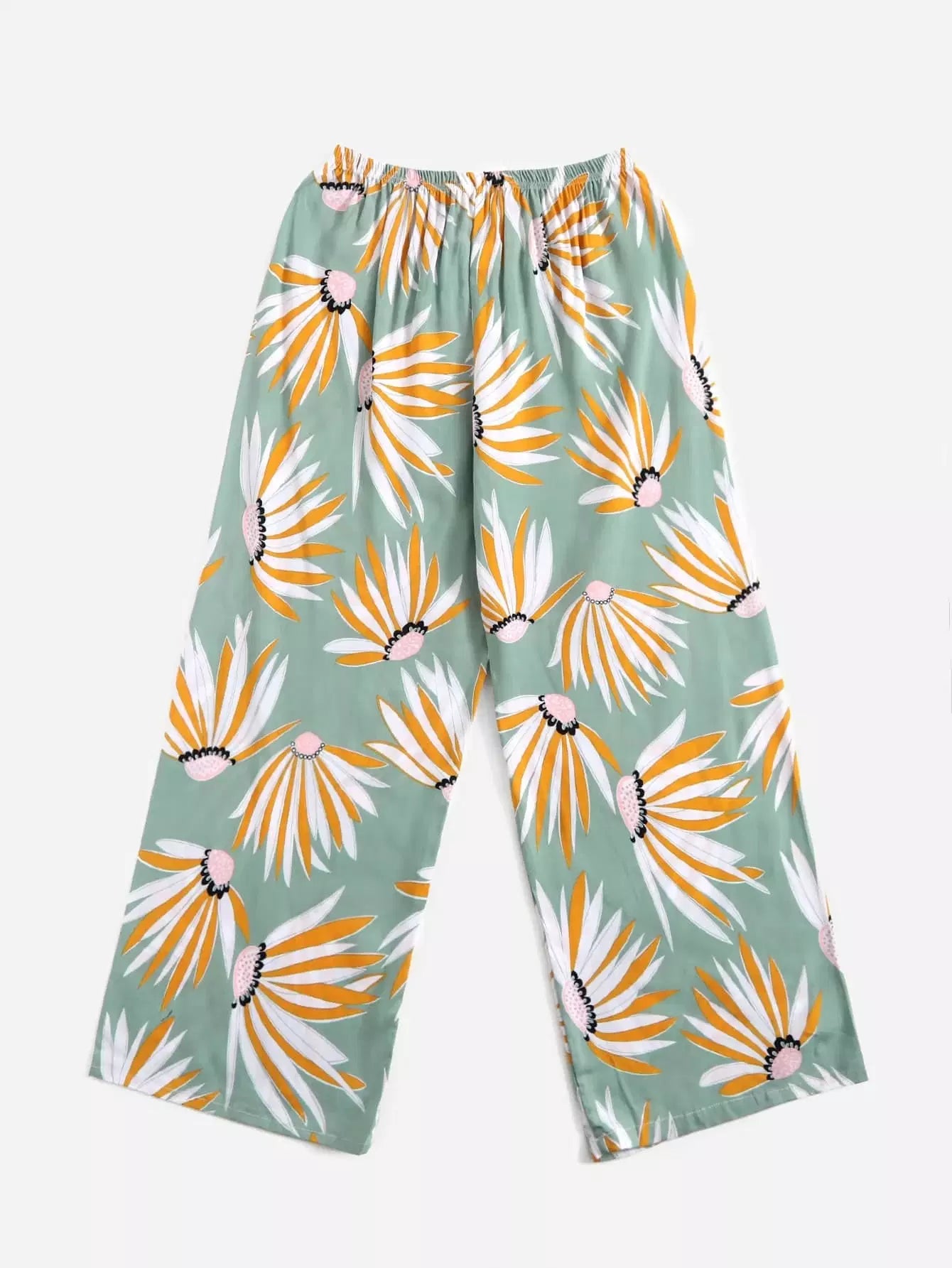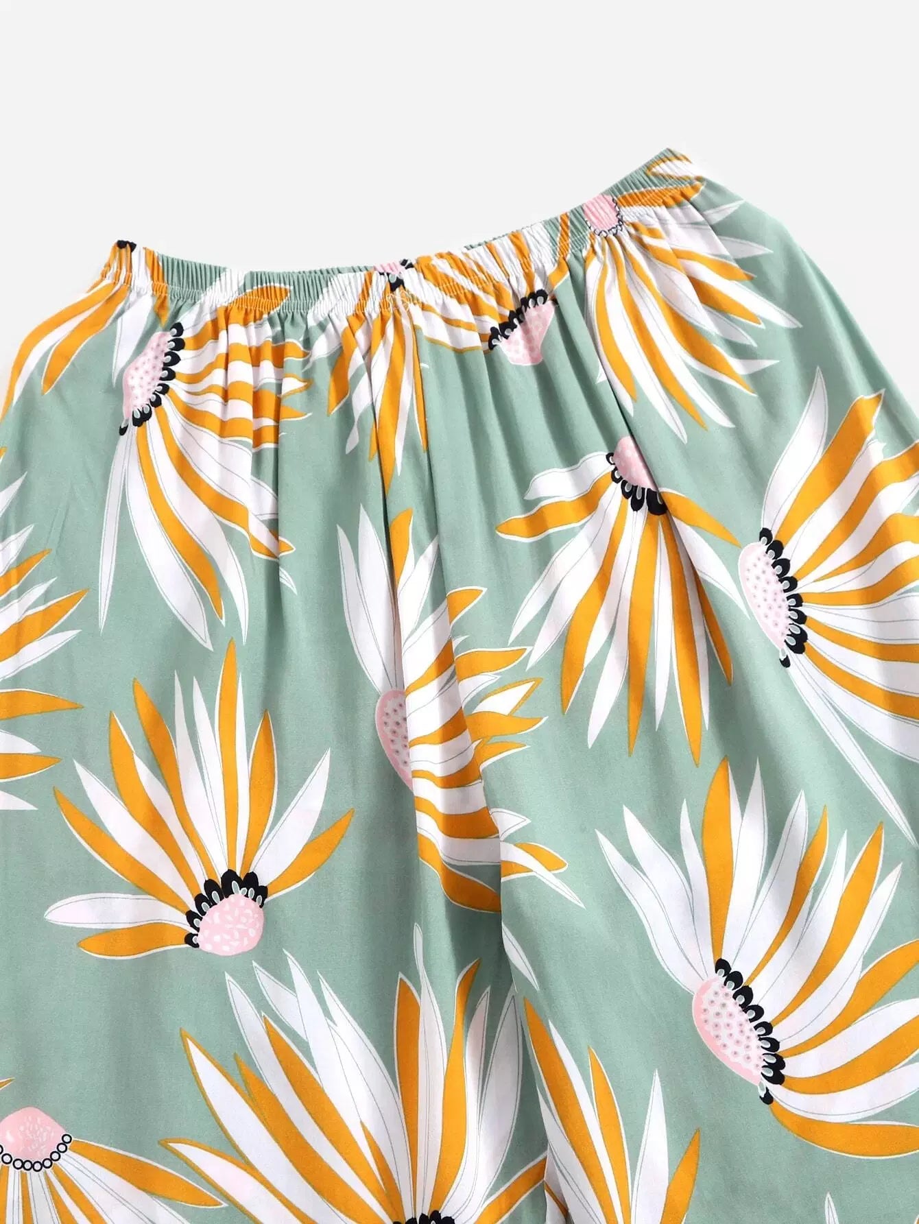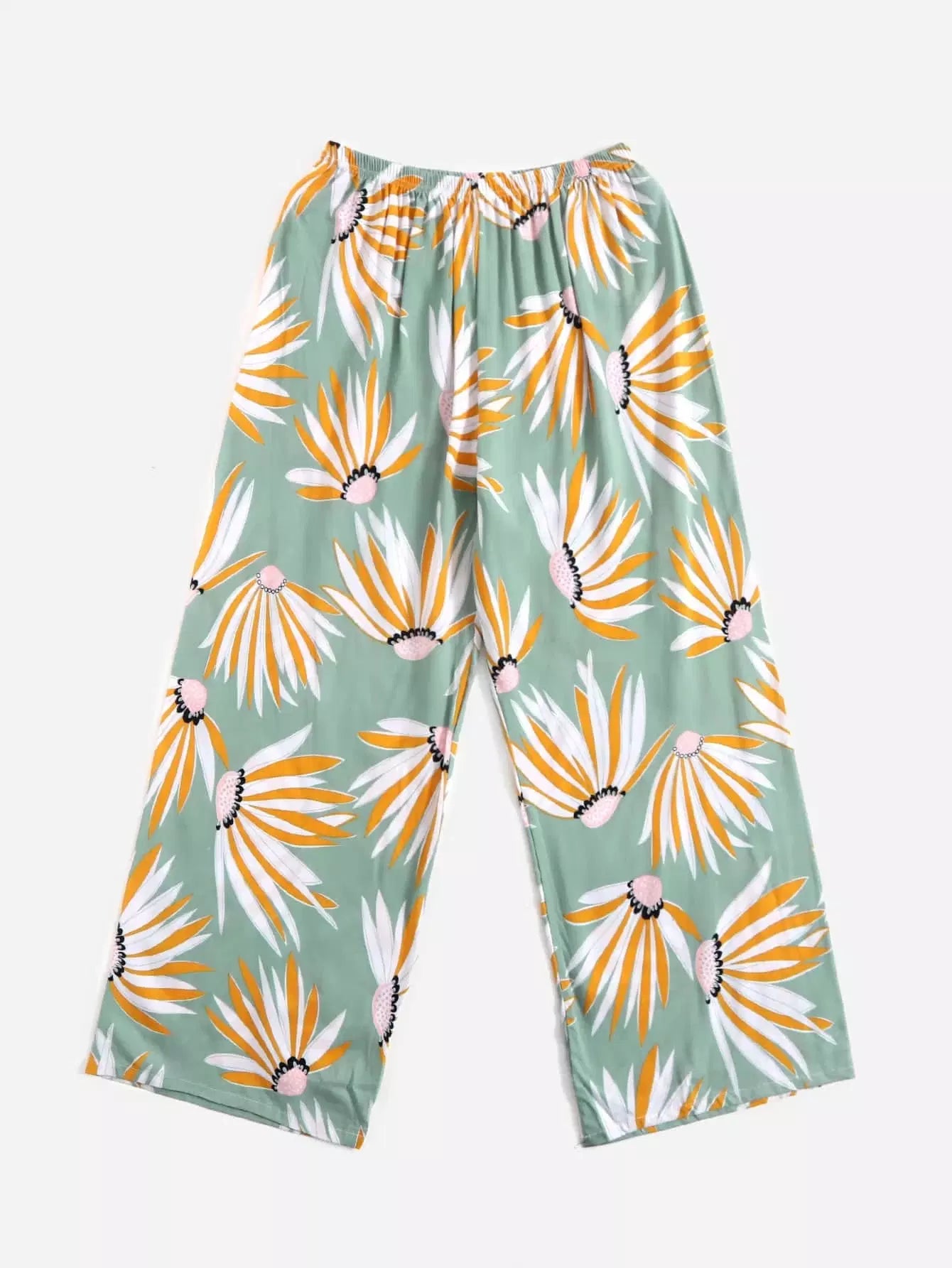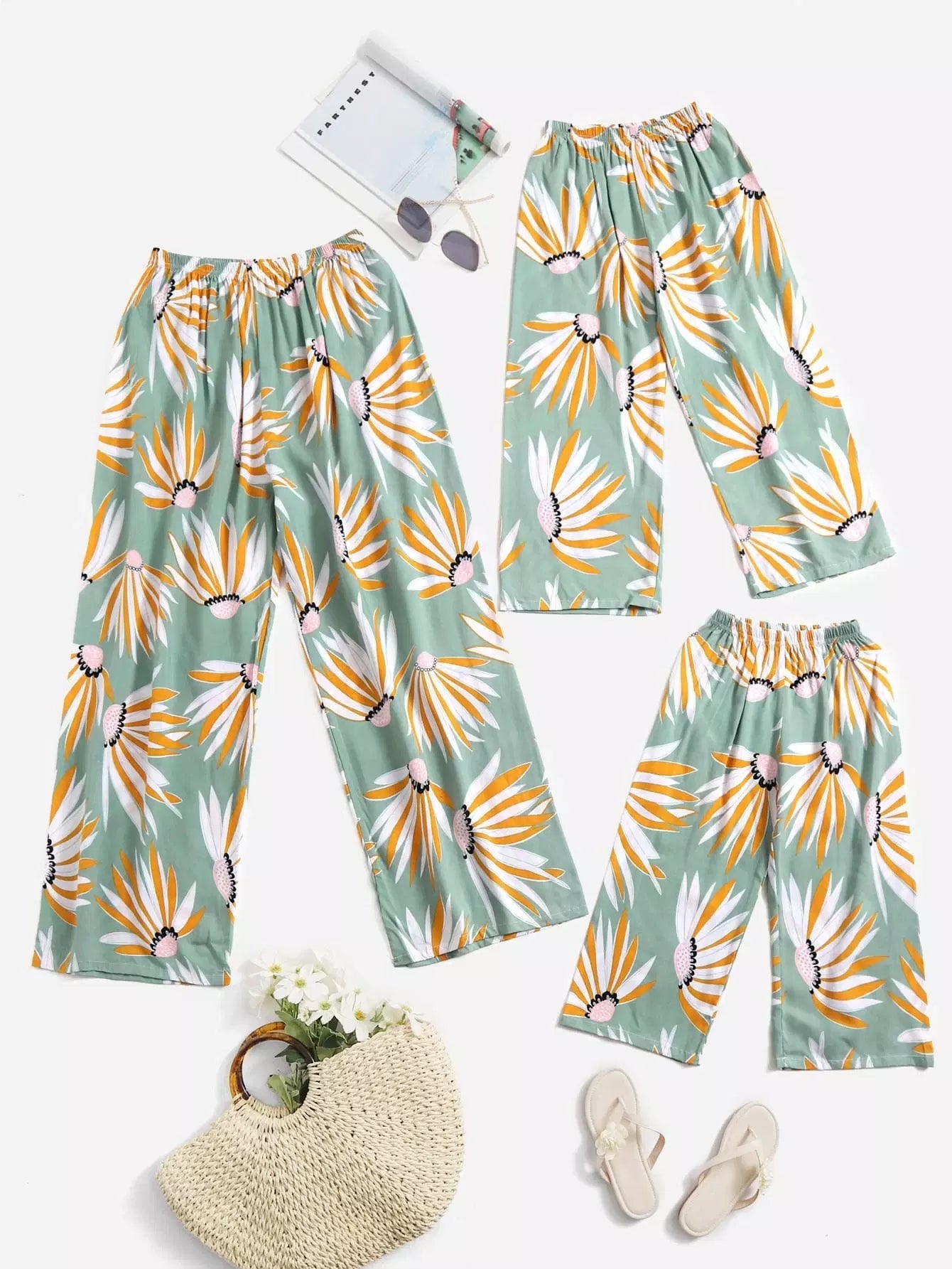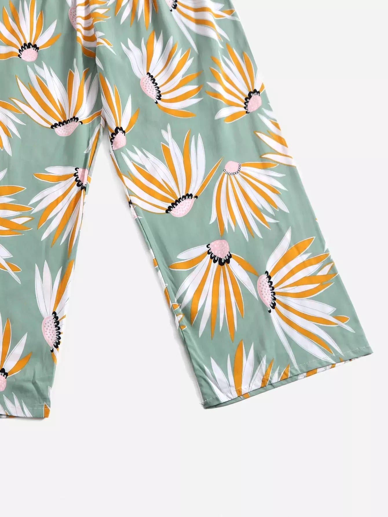 بنطلون واسع الساقين بطبعة زهور زائد 1 قطعة