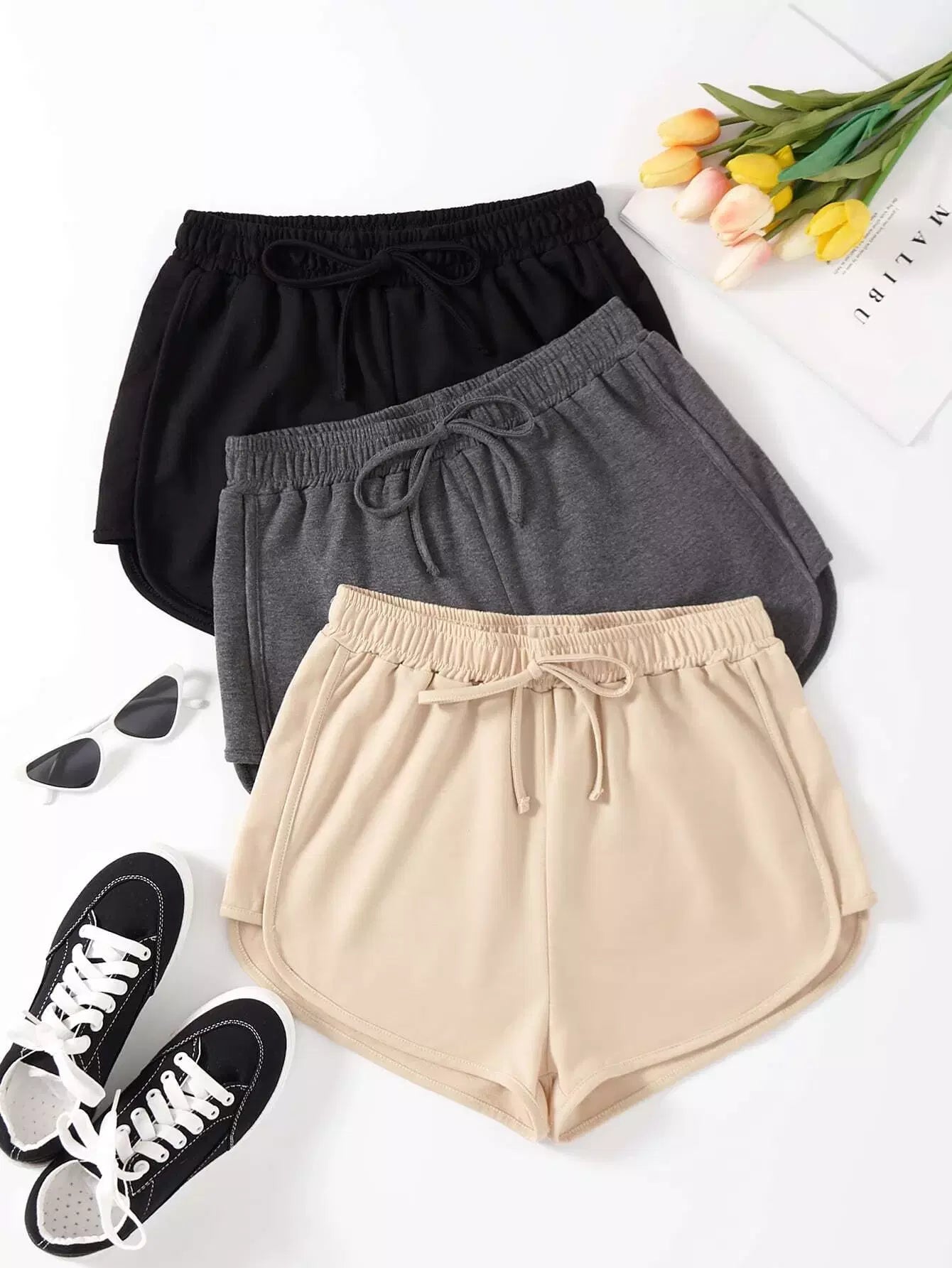 شورت قصير ب 3 قطع معقود من الأمام
