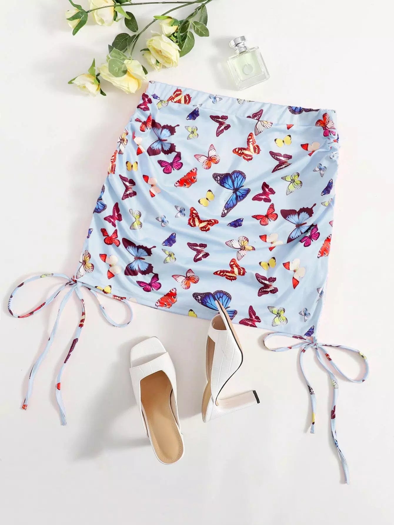 تنورة قصيرة بعقدة فراشة جانبية على شكل فراشة زائد