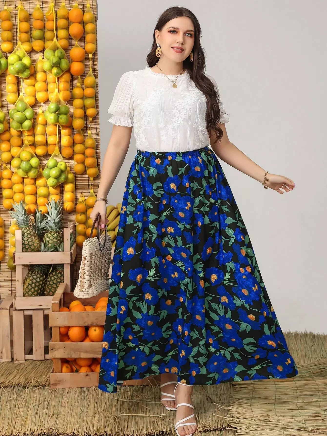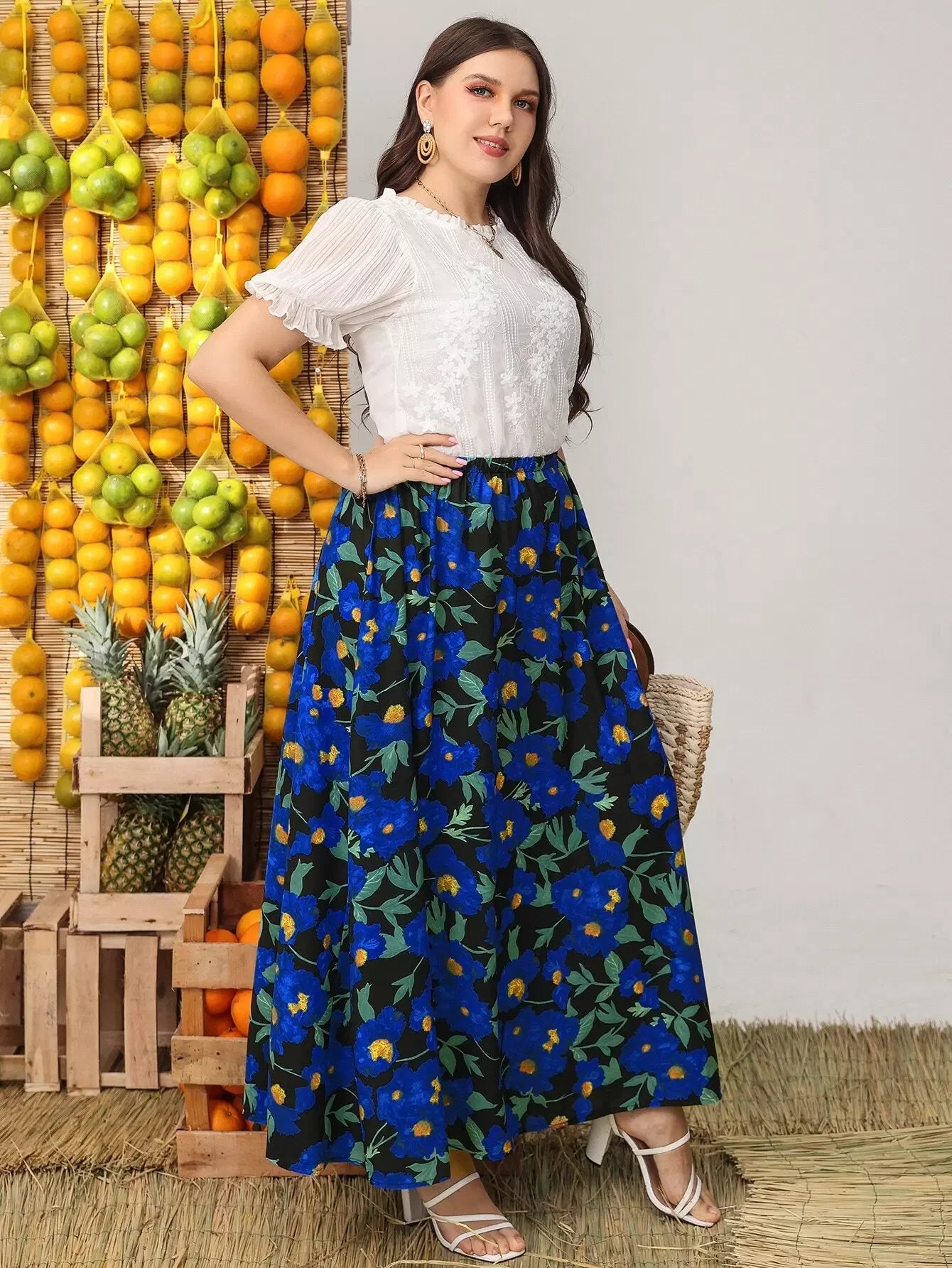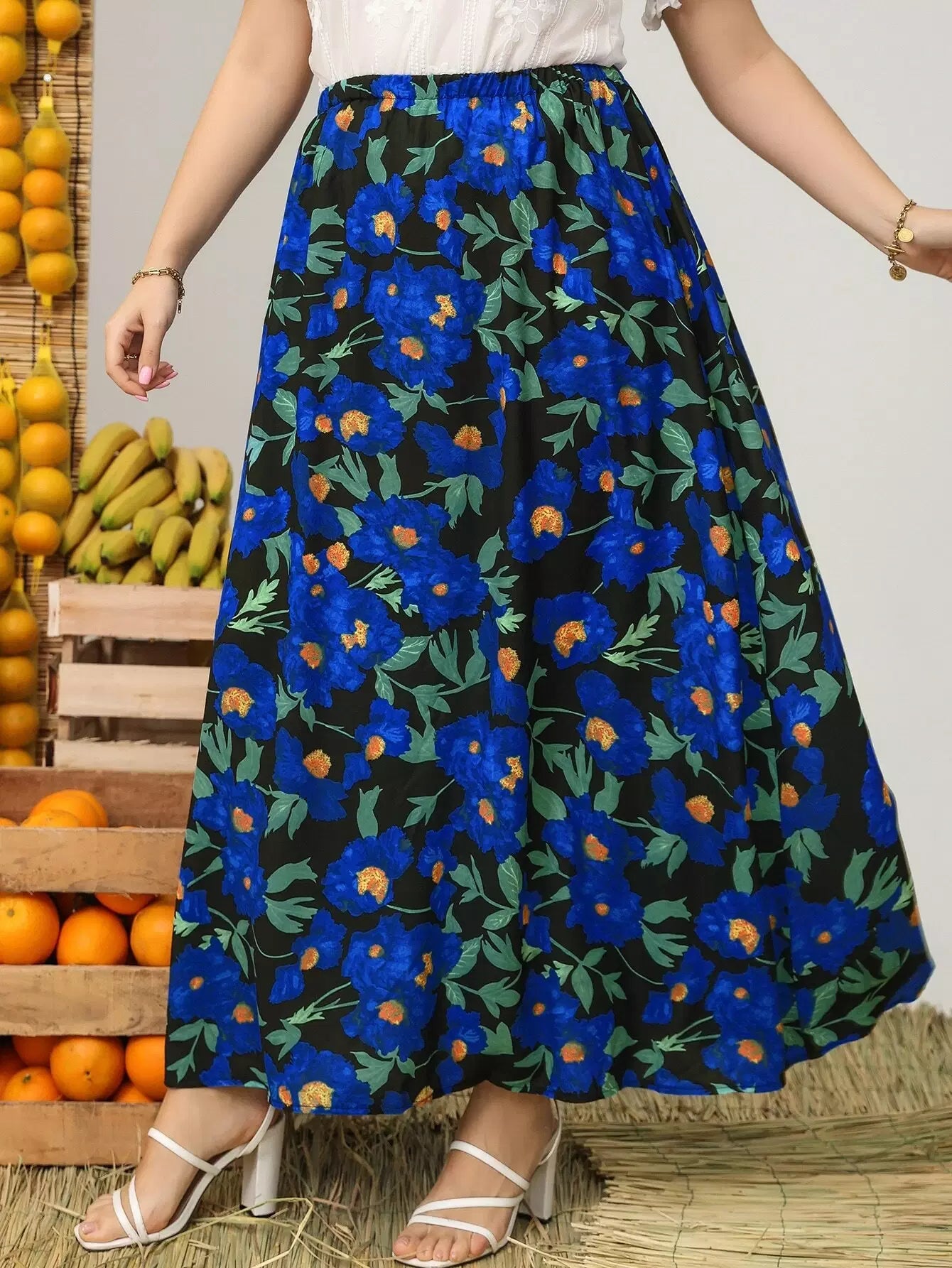 تنورة بطبعة زهور بلس أوفر
