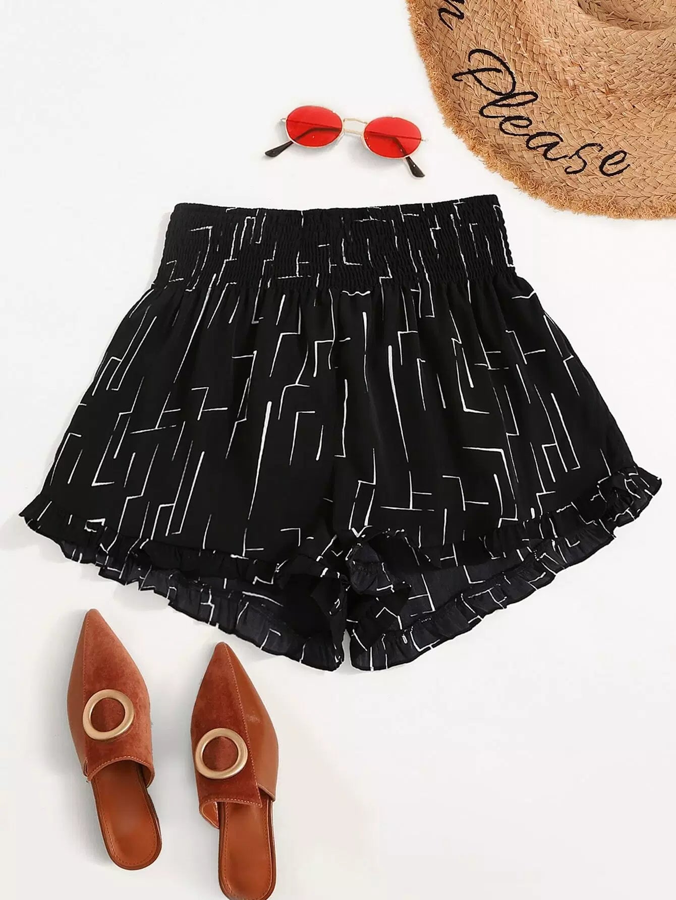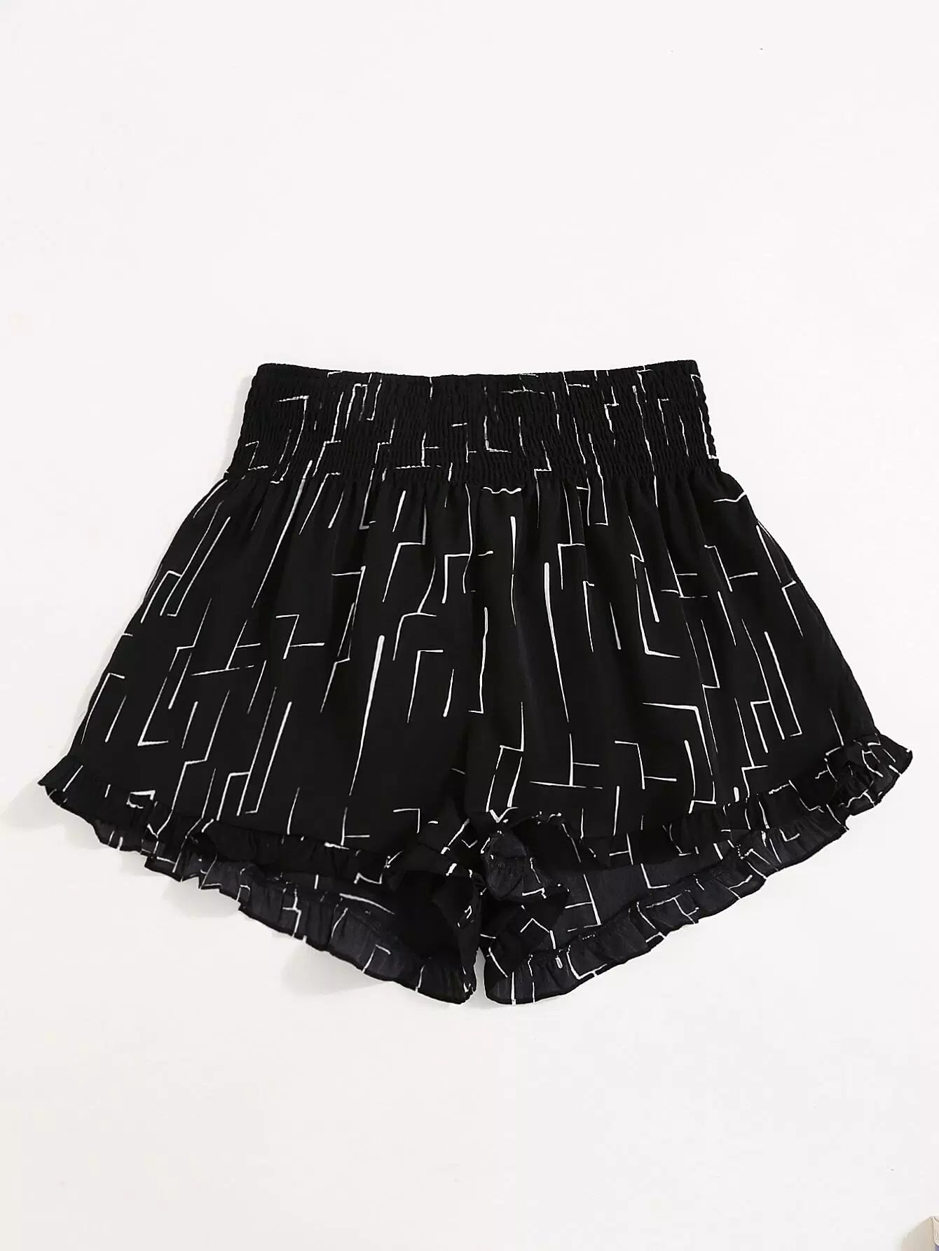 شورت قصير عريض الساقين عريض الساقين مطبوع عليه طبعات بلس