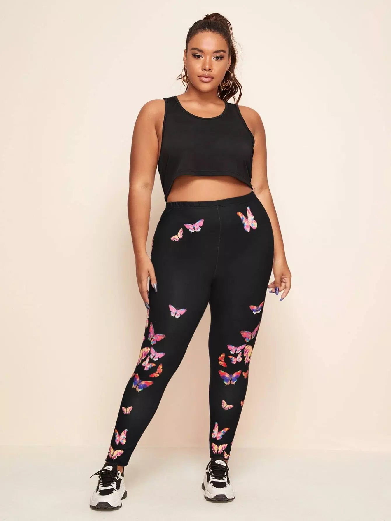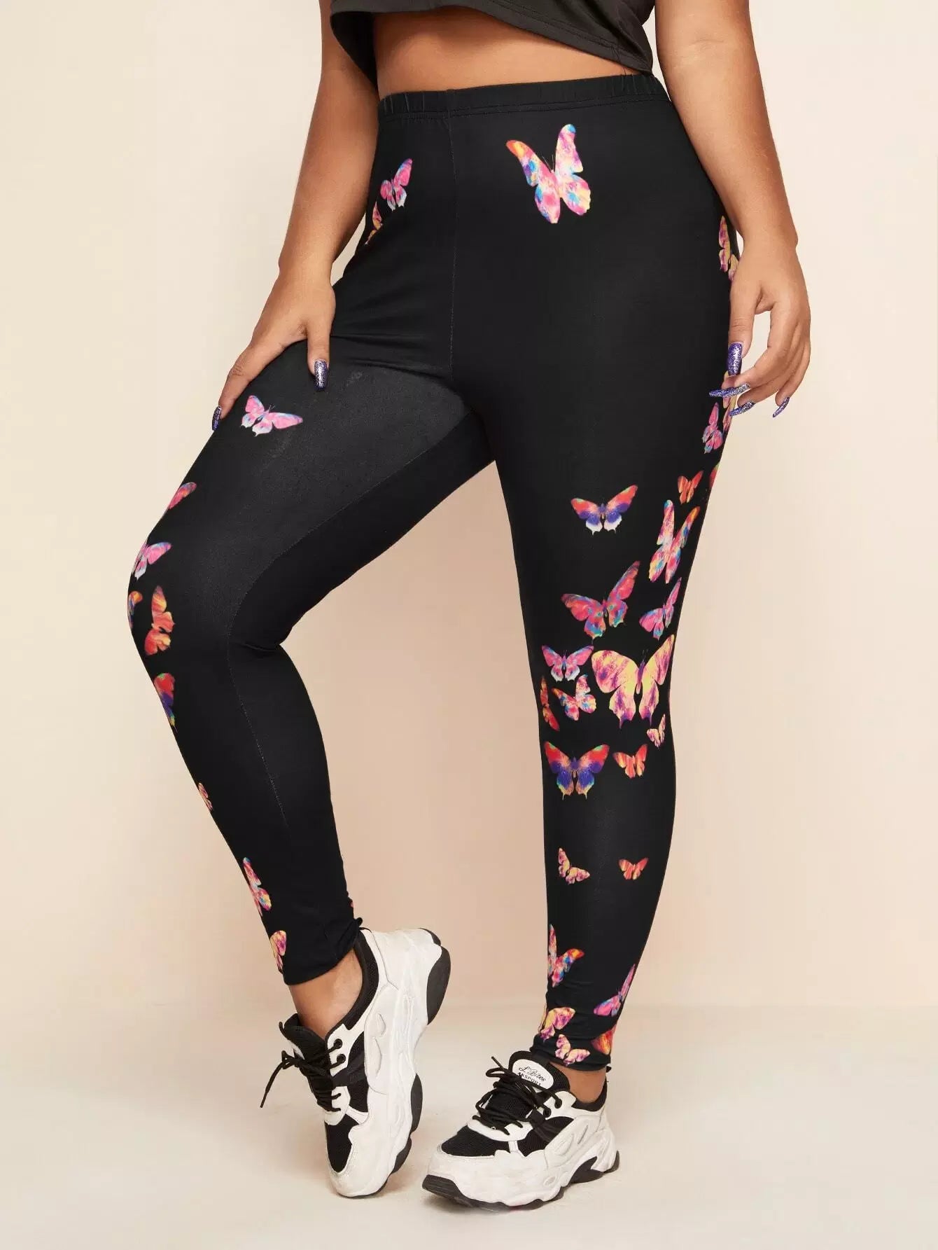 بنطلون ضيق ضيق ضيق بطبعة فراشات زائد