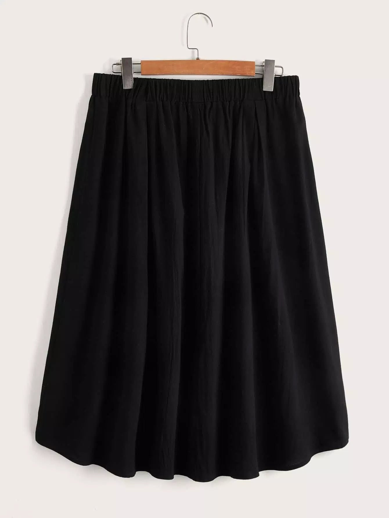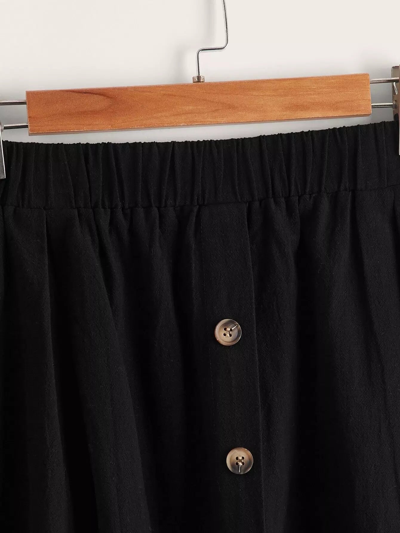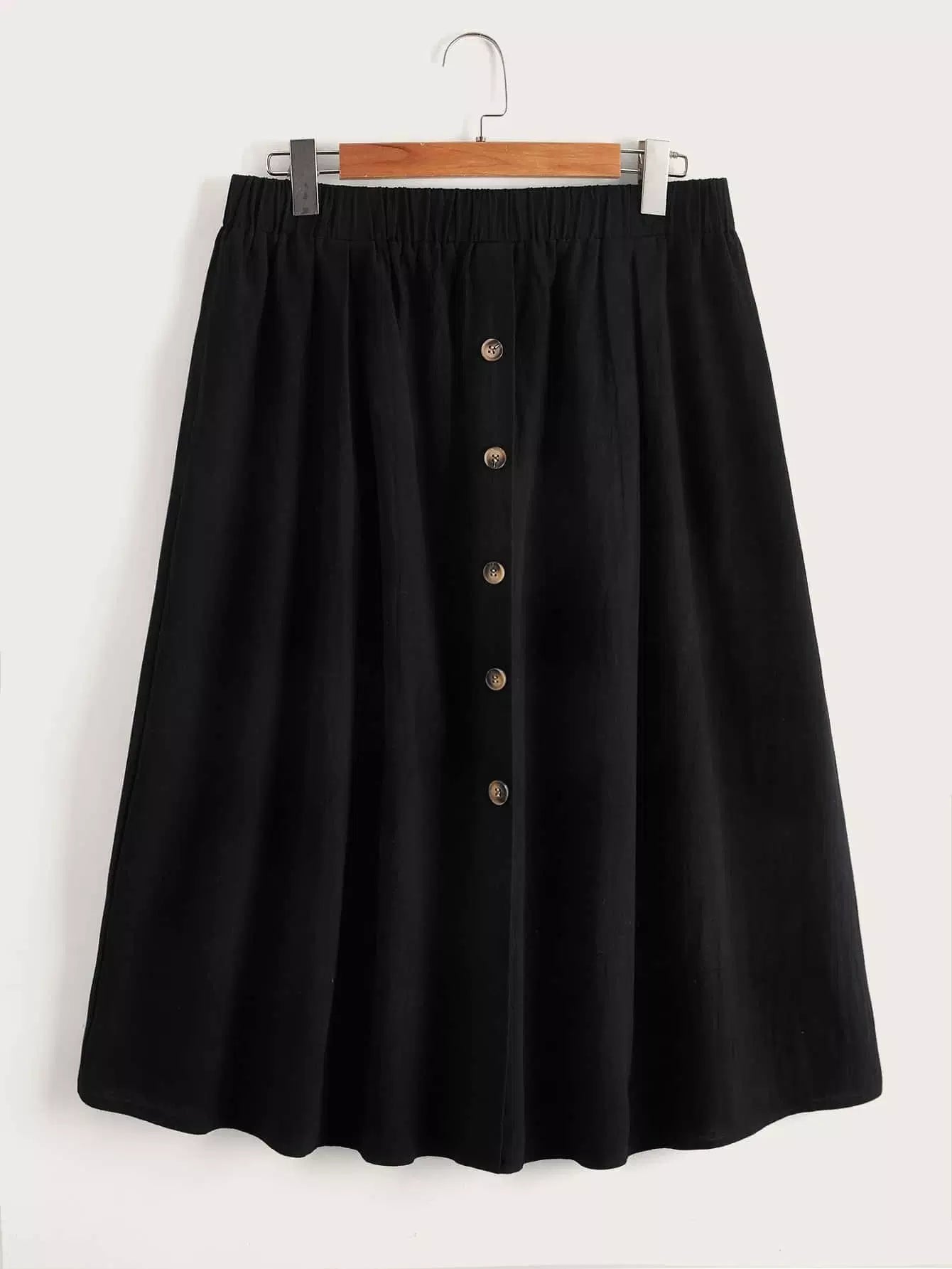 تنورة بخصر مطاطي أمامي بأزرار زائد