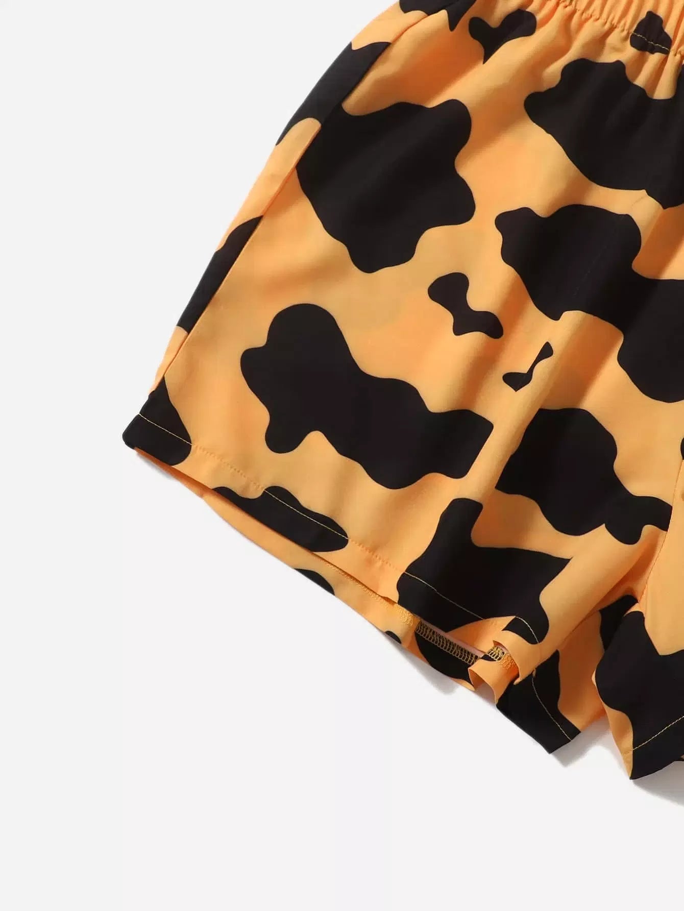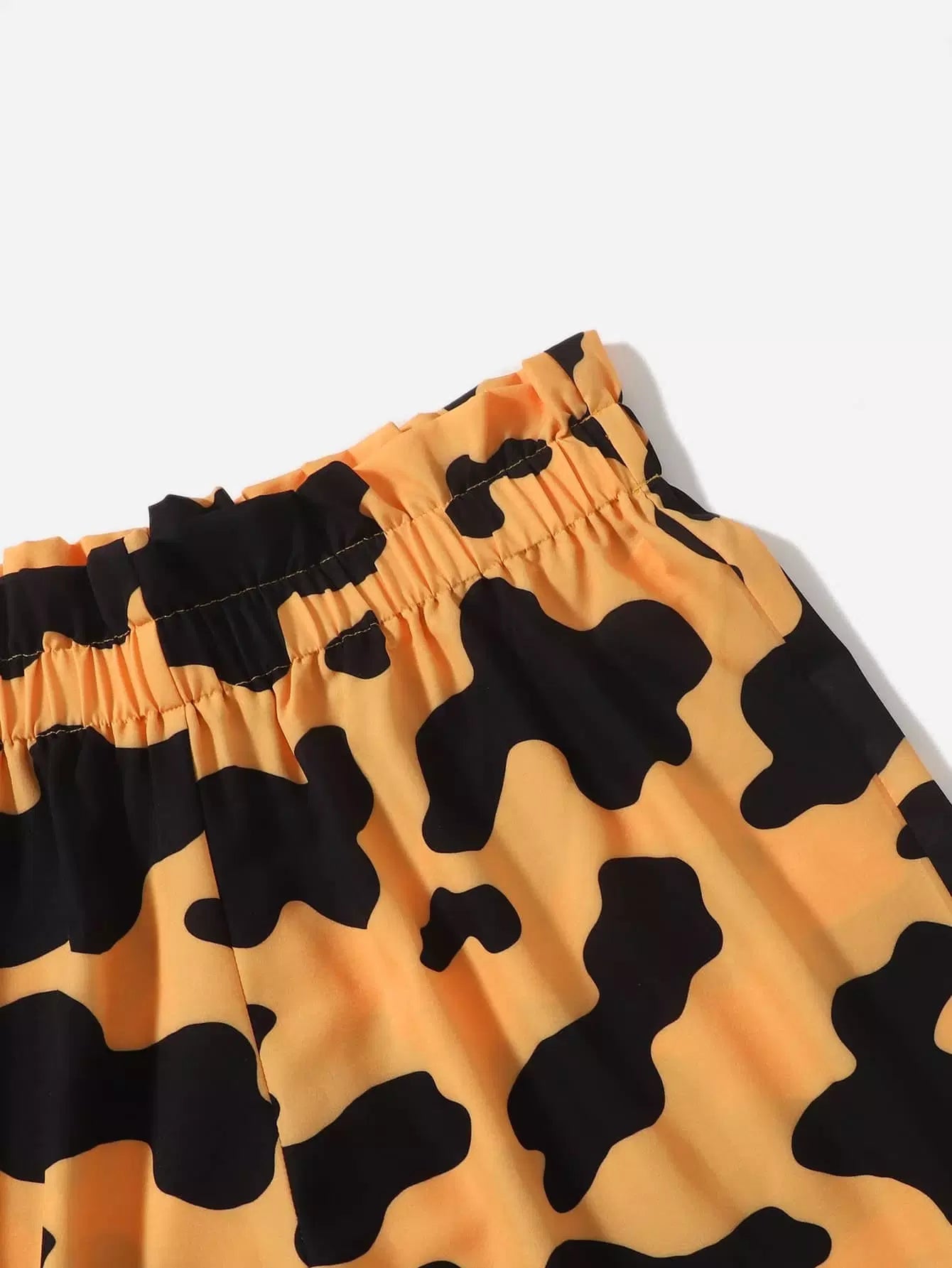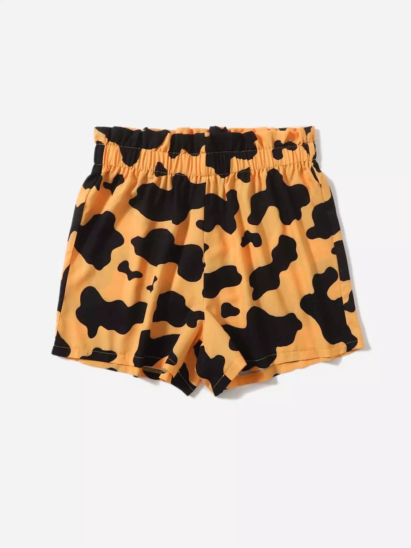 شورت بخصر كيس ورقي مطبوع عليه طبعة بقرة زائد