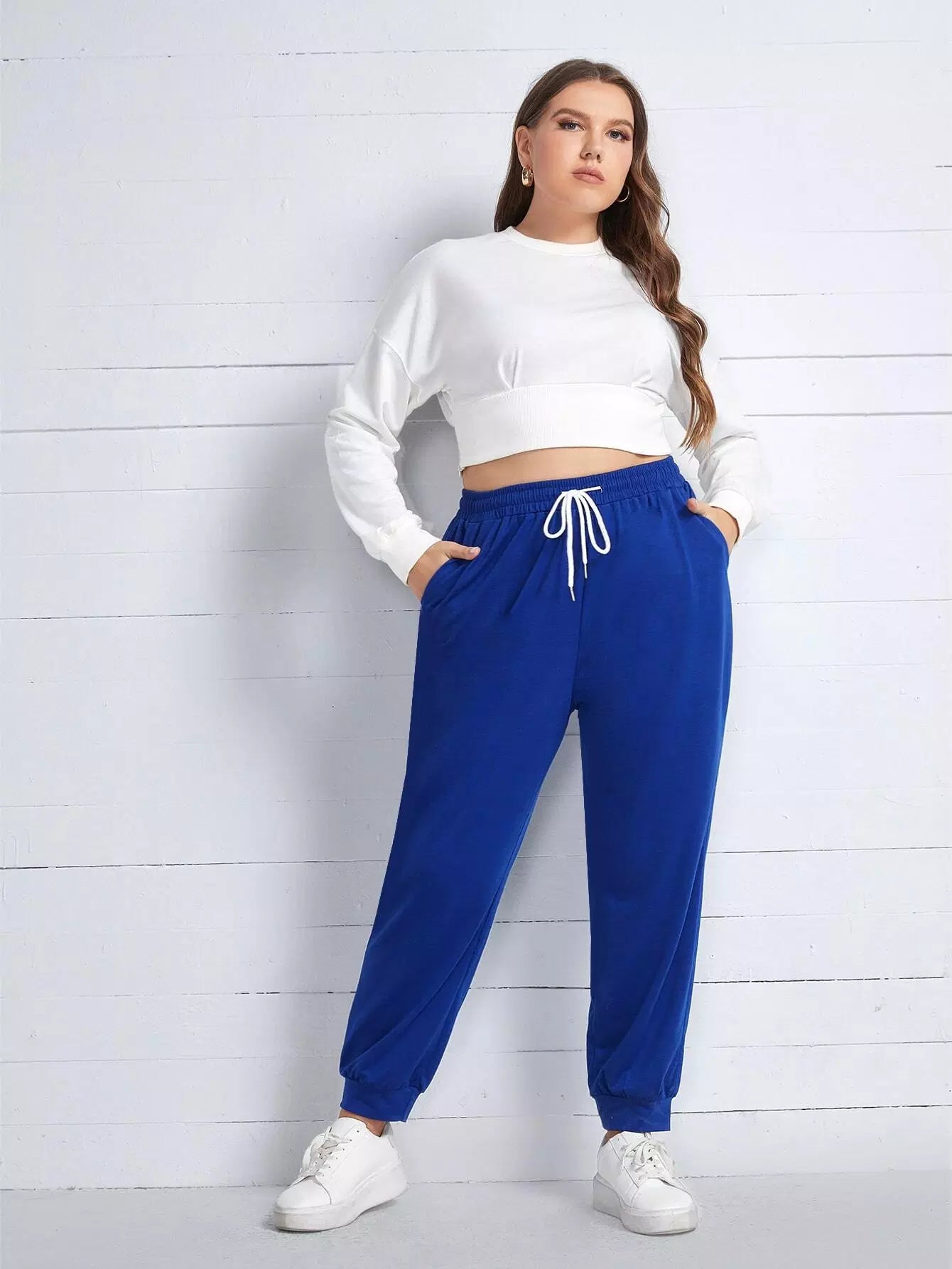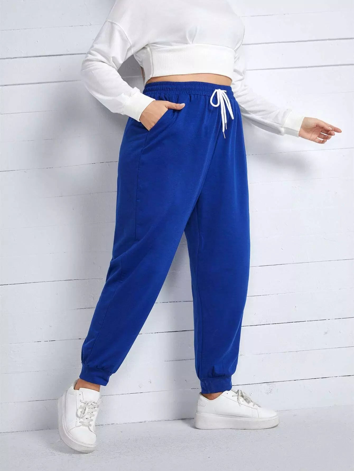 نحيف - مقاس كبير الرباط الخصر Sweatpants جيب مائل