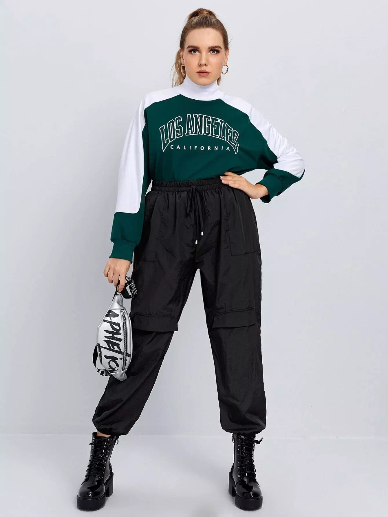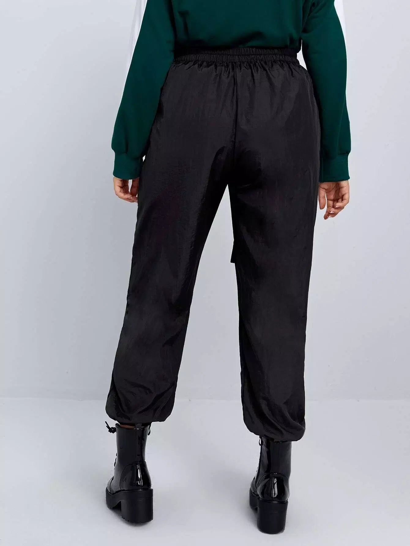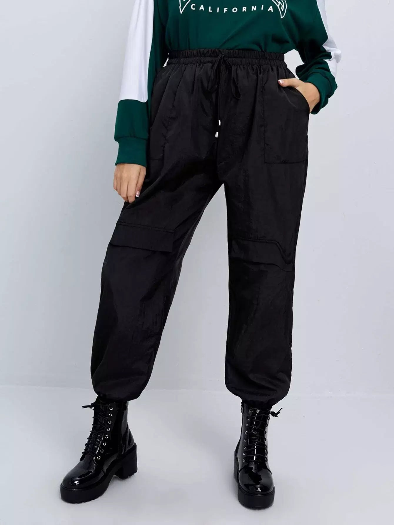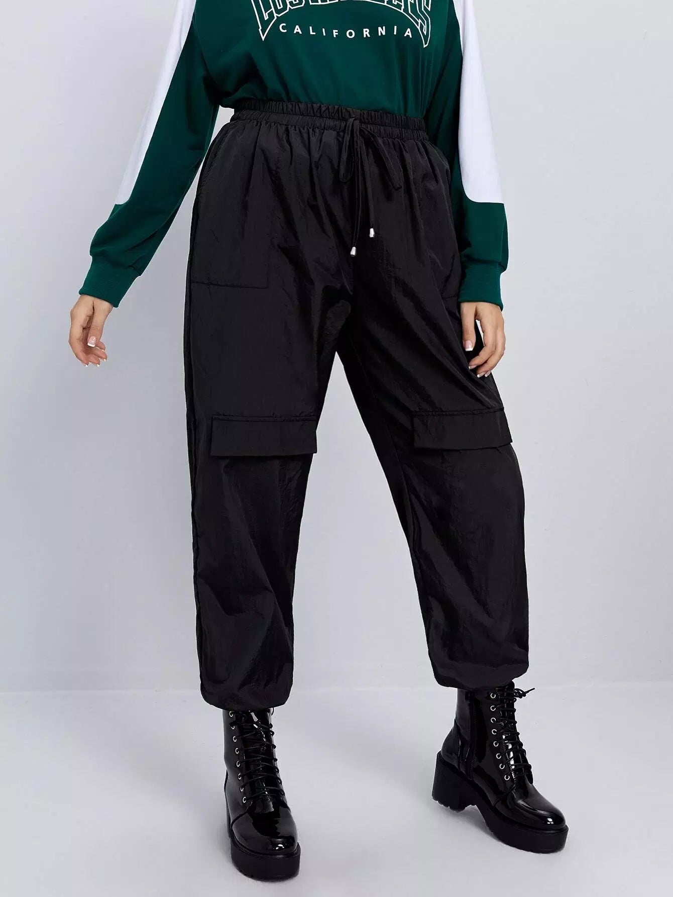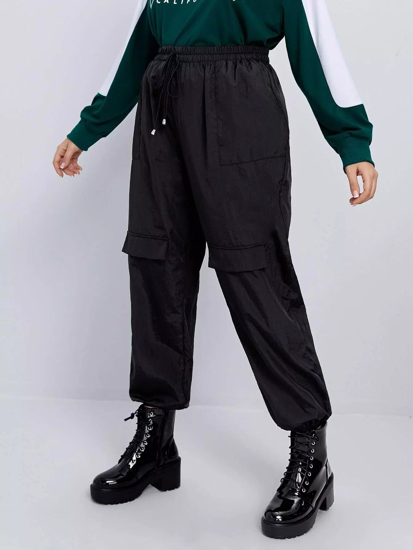 بنطلون كارغو بفتحة أمامية بفتحة أمامية بغطاء بلاس